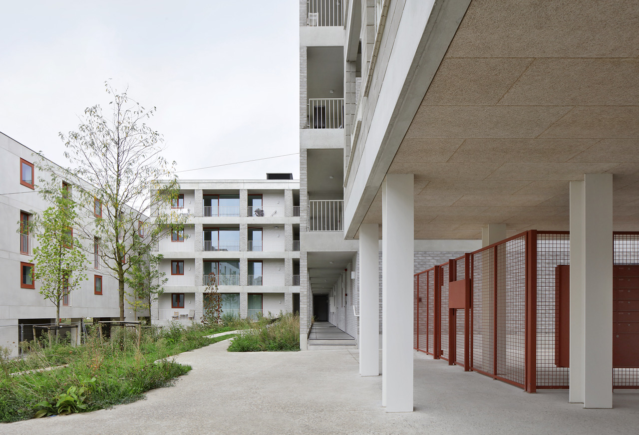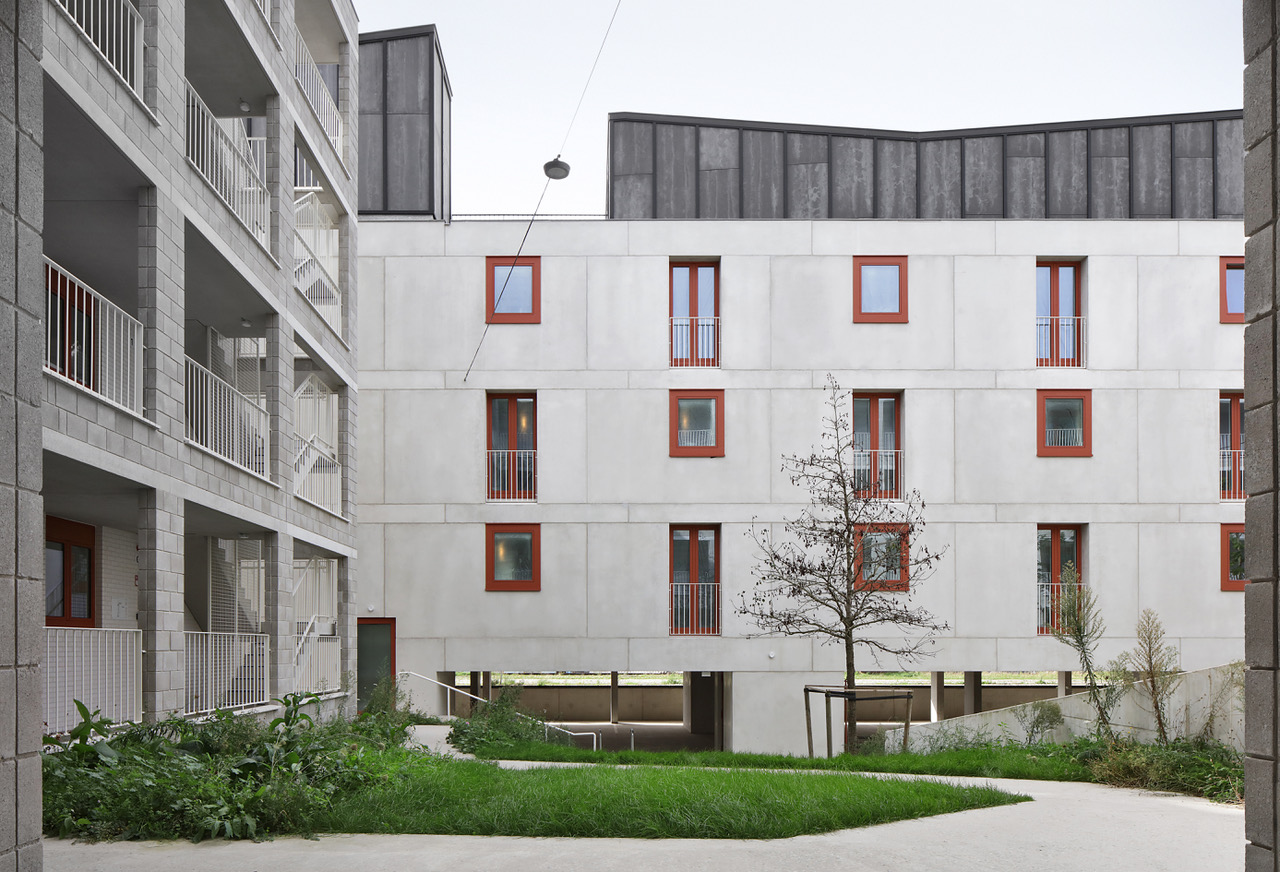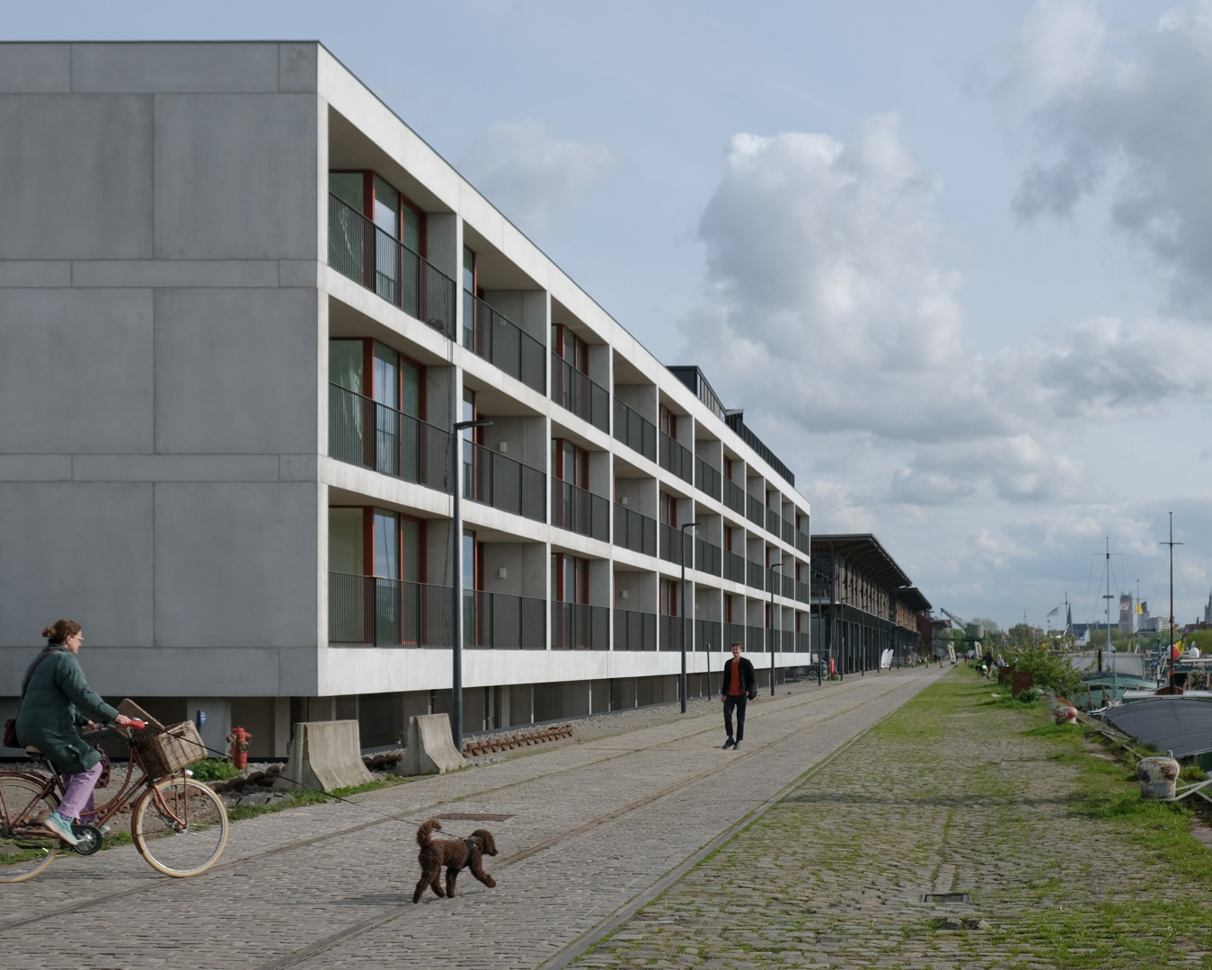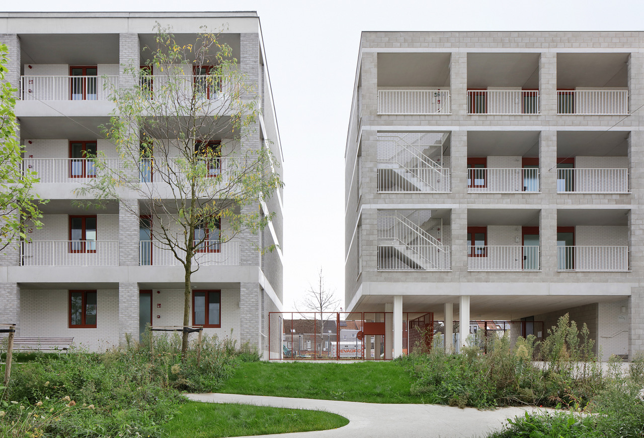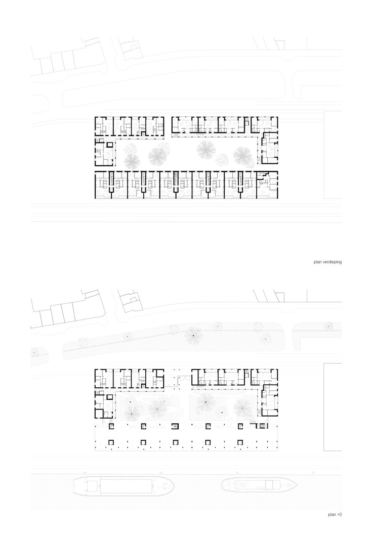 Doordat de site een rijtje historische loodsen vervolledigt, stelde zich een unieke kans tot de realisatie van een gemengd woonproject met een zekere schaal en monolithisch karakter. Enerzijds moet het wonen haar plek opeisen in een monofunctioneel gebied; anderzijds diende de architectuur aan de contextuele harmonie bij te dragen. Dus loopt Kaai 24 de contour van het perceel af. Het bebouwingslint wordt echter gedifferentieerd in drie volumes (elk heeft een eigen typologie: sociale, bescheiden en marktconforme woningen) die tegelijkertijd – vanop afstand – één geheel blijven vormen. Tussenin ontstaat een groen binnengebied: een aangename ontmoetingsruimte, rechtstreeks met de publieke kade verbonden. Op het dak van één van de volumes landt tenslotte een collectief paviljoen.