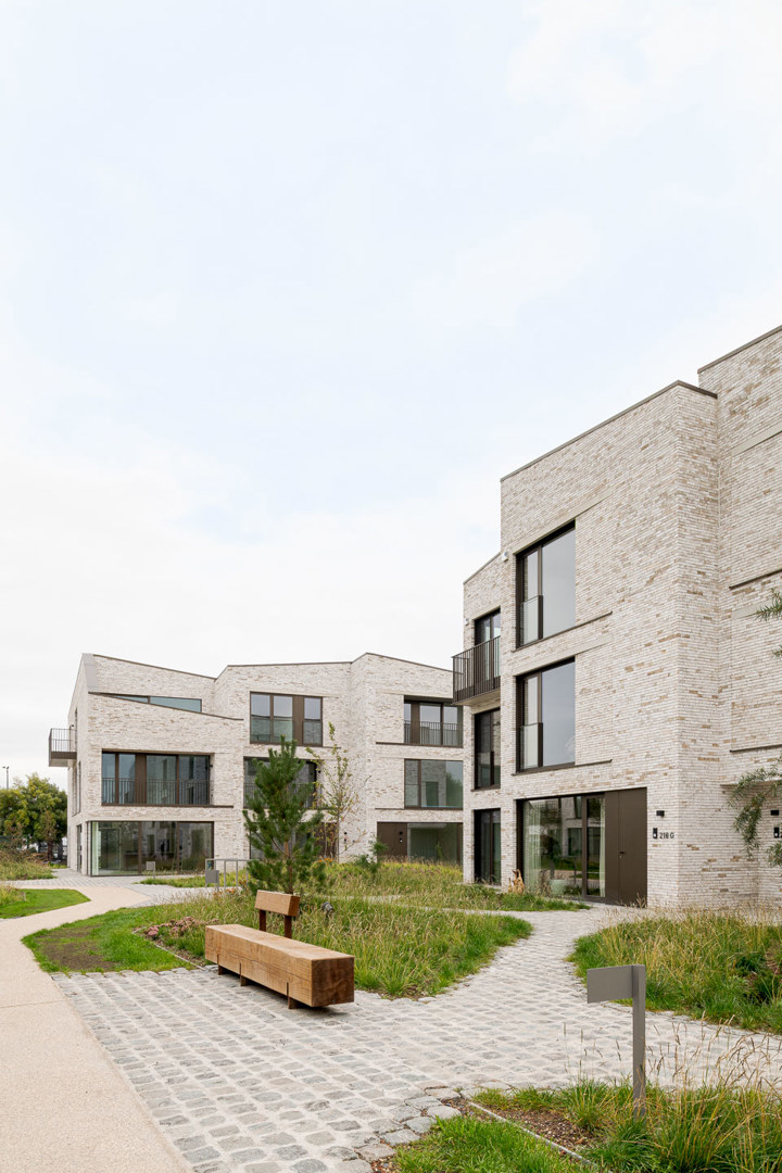 Vooruitstrevend collectief project met hoge densiteit. Sterktes zijn de schaal, materialisatie en omgevingsaanleg. Het denkwerk rond d eschakeling van beperkte privatieve buitenruimtes met maximale privacy in een collectieve tuin is hier supergeslaagd. er zijn een aantal nieuwe boeiende alternatieve woontypologieën met telkens een andere doorsnede. Er wordt afwisselend op het gelijkvloers en op de verdieping gewoond in combinatie met een hoofdbuitenruimte aan ofwel het binnenhof of de buitenrand.