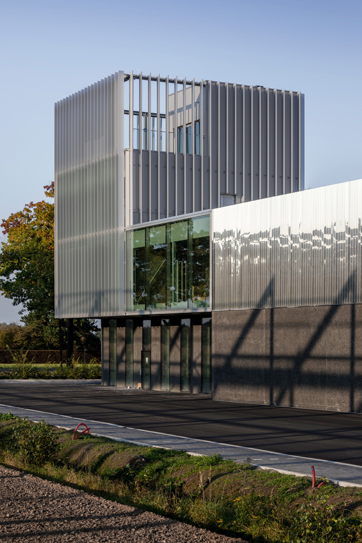 Duurzaamheid wordt benaderd via robuuste, onderhoudsarme materialen zoals inox en beton, die levensduur en circulariteit bevorderen. De compacte integratie van functies vermindert ruimtebeslag en maximaliseert energetische efficiëntie. Grote glasvlakken zorgen voor natuurlijke lichtinval in kantoor- en woonruimtes. De reflecterende gevel minimaliseert opwarming en speelt in op de context door het landschap en de hemel subtiel weer te geven. Het resultaat is een toekomstbestendig, energiezuinig en performanter gebouw.