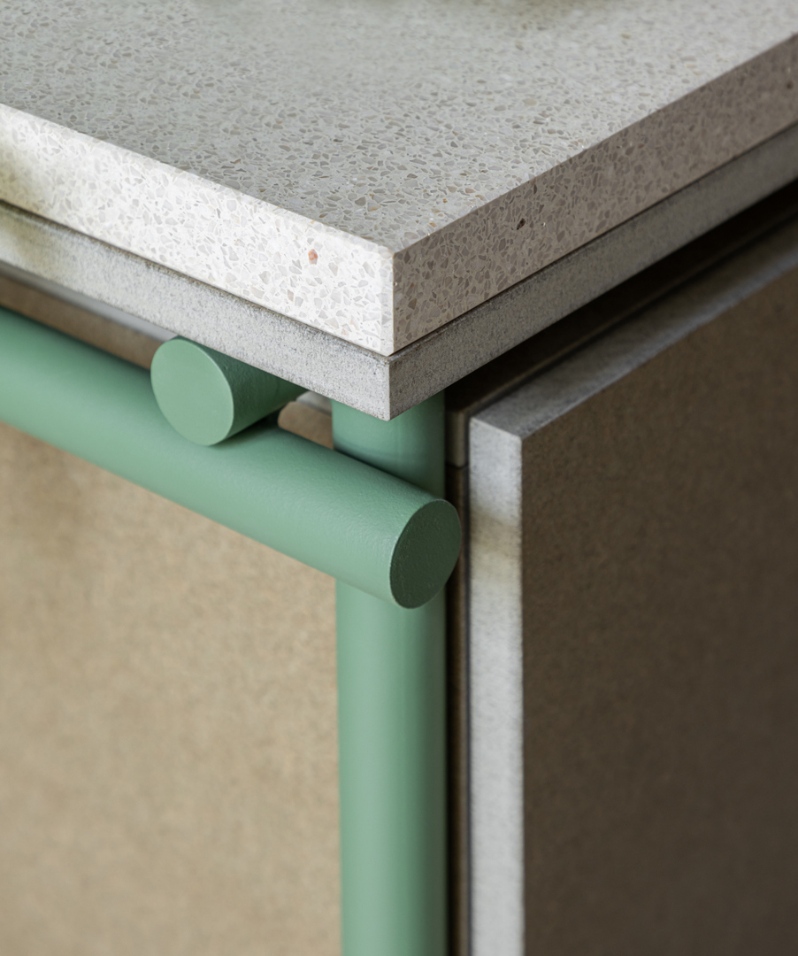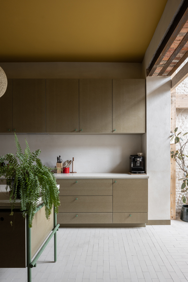Zowel bij het concept, de manier van bouwen als het materiaalgebruik is er steeds oog voor duurzaam en circulair bouwen. Naast de ontwerpstrategie om zo compact mogelijk te bouwen en ruimte te laten voor flexibiliteit, zijn er heel wat regeneratieve materialen gebruikt. Van structuur tot isolatie en afwerking. De houten structuur is opbouwd op een eenvoudige en leesbare manier die er voor zorgt dat deze demontabel is en doorheen de tijd opnieuw zou kunnen worden gebruikt. Voor de isolatie is enkel gebruik gemaakt van ecologische materialen; geocell, kalkhennep,houtvezel, kurk & cellullose. Voor de afwerking werden vooral geogebaseerde materialen toegepast: leemverf – en pleister. Bestaande waardevolle elementen zoals deuren en trappen, worden zoveel mogelijk hergebruikt.
