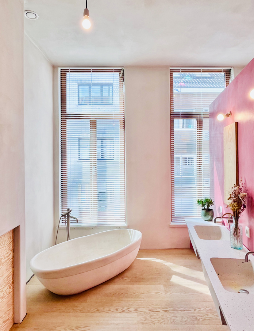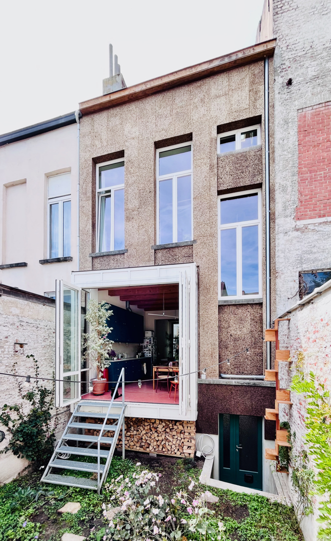 De opdracht bestond erin een charmante rijwoning uit 1839 in centrum Gent volledig te renoveren met een maximaal behoud van de bestaande structuur en een radicaal biobased aanpak. Nieuwe elementen zijn in houtbouw uitgevoerd en de afwerking bestaat uit circulaire, ecologische materialen zoals leempleister, kalkmortel, houtwolisolatie, kurkisolatie en kalkglanspleister. Ook de technische installaties werden vernieuwd met respect voor het historische karakter. Het resultaat is een hedendaagse, warme en gezonde eengezinswoning met een sterke relatie met de compacte stadstuin vol inheemse planten en een kleine zwemvijver.