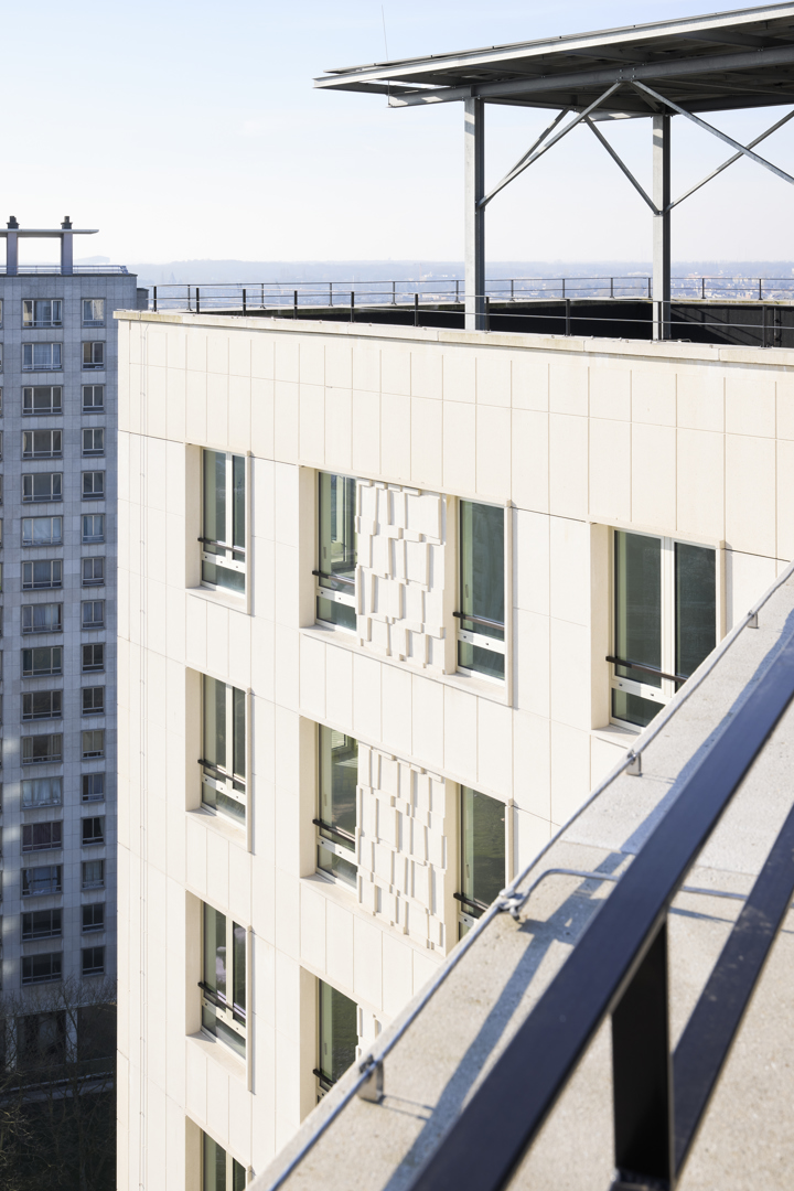 De Kielparktorens behoren tot de meest geslaagde voorbeelden van sociale hoogbouw in België. Hun verfijnde volumetrie, zorgvuldige detaillering en materiaalgebruik vertalen het modernisme naar een humane, bewonersgerichte architectuur en leveren een ingetogen bijdrage aan de Antwerpse skyline. Dat deze torens kamp¬ten met onoplosbare structurele gebreken was een enorme tegenvaller. Compromissen in planindeling veroorzaakten spanningen, terwijl brandveiligheid, toegankelijkheid en energieprestaties niet langer voldeden. De reconstructie bood ons de kans én verantwoordelijkheid om het oorspronkelijke ontwerp te overstijgen. Waardevolle architecturale elementen kregen hedendaagse interpretaties, zoals bijvoorbeeld de claustra’s van de droogterrassen die herleven in verfijnde reliëfpanelen.