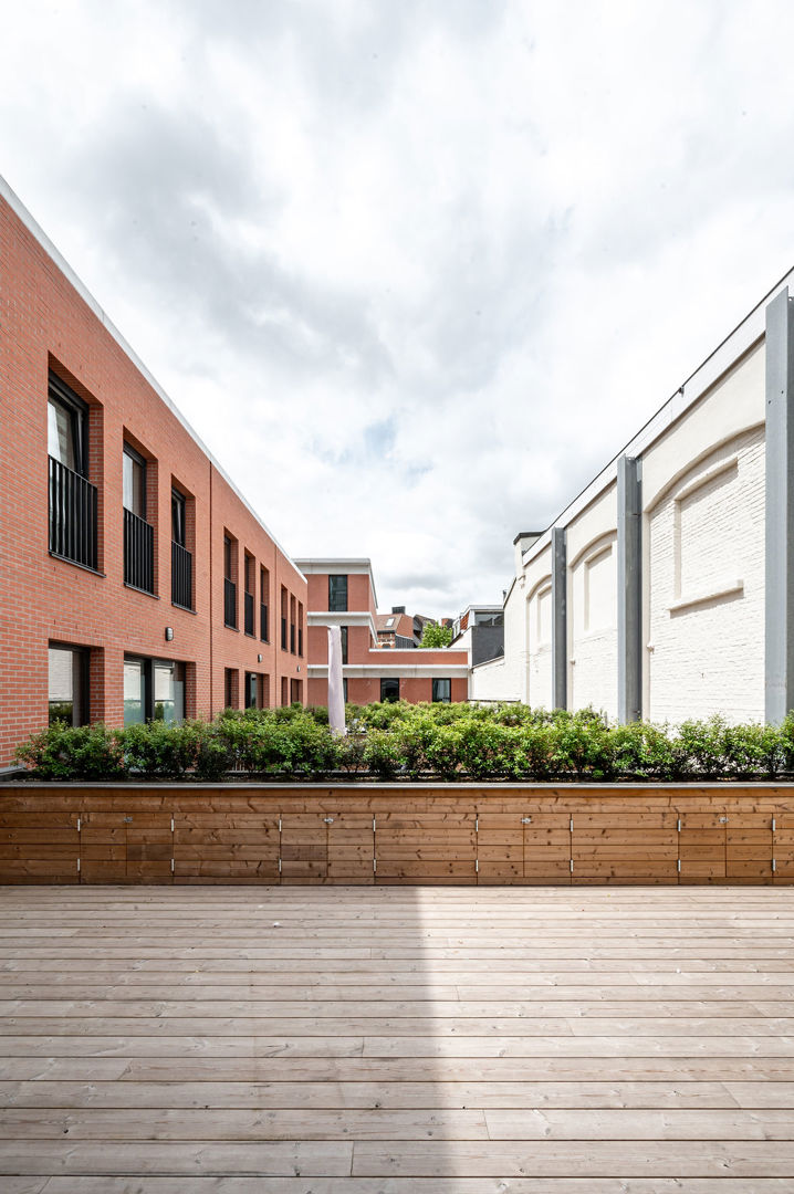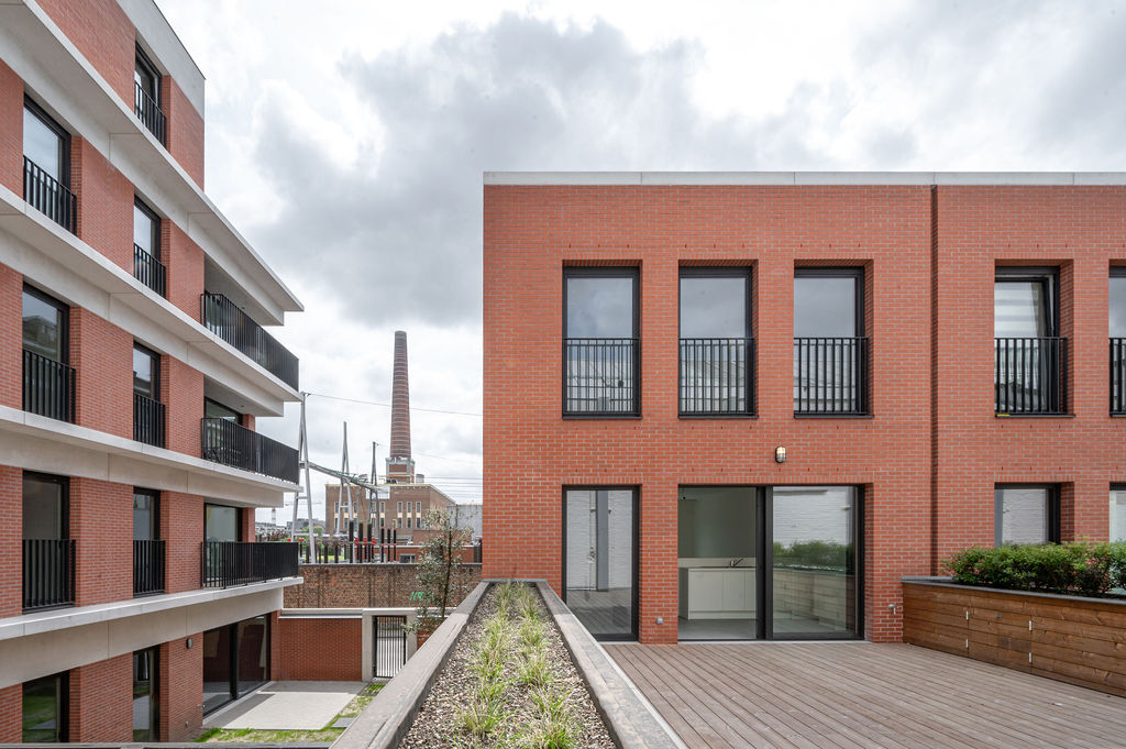Bij het opknippen in 3 volumes werd de compactheid gemonitord. Woonkwaliteit en energetische efficiëntie gaan hand in hand. Ondanks een grote densiteit (204wo/ha) ademt het project: iedereen heeft buitenruimte, privacy, dubbele oriëntatie en zichten. Groendaken, afsluitingen of tuinkasten als bloembakken, en zelfs stoeptuintjes verspreiden groen over het terrein en de straat. Hier wordt een biodiversiteitscorridor gevormd doorheen de stad. Het project is aangesloten op het stadswarmtenet dat start aan de overzijde van de straat. De hoofdinstallatie werd zichtbaar opgesteld en fungeert zo als educatief element. Verwarming en sanitair warm water worden ultra-efficiënt geproduceerd. Energetische, biologische en (betaalbare) sociale duurzaamheid zijn verweven.