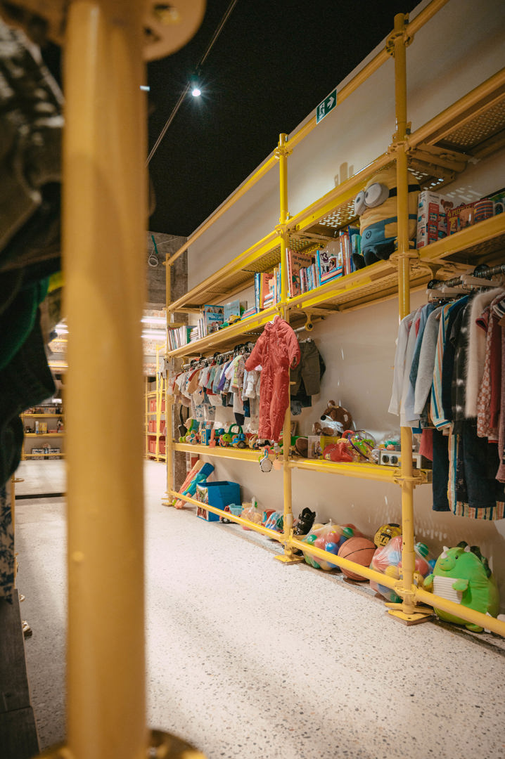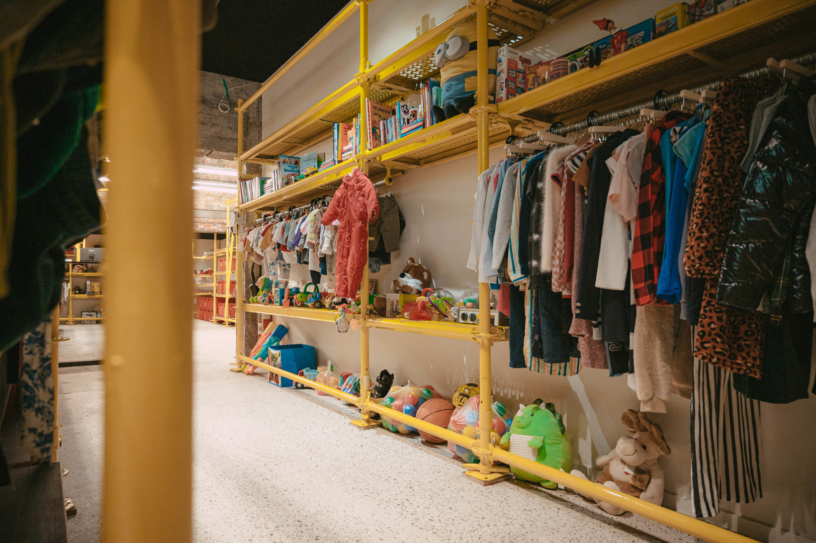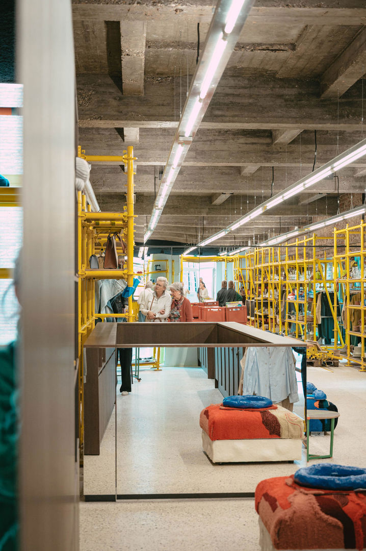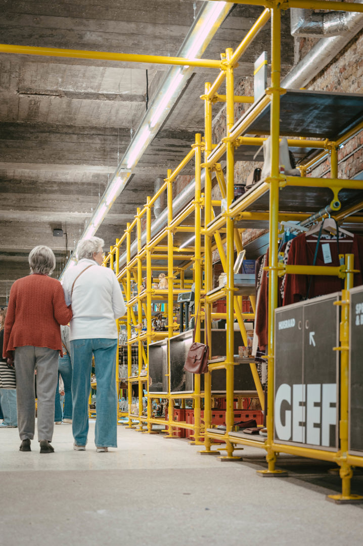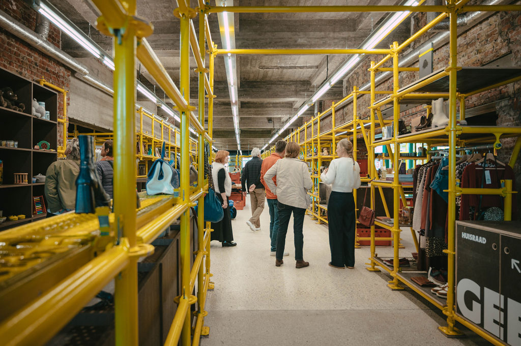 De nieuwe Kringwinkel Brugge is meer dan een winkel: het is een levend laboratorium voor circulaire verbeelding. Elk element draagt sporen van een vorig leven. De stellingen die nu kleren dragen, droegen ooit bakstenen, balken en dromen — onze stad. Vandaag dragen ze verhalen en hernieuwd geluk. De steigerconstructie eert dat verleden en vormt tegelijk een springplank naar de toekomst. Alles is demonteerbaar, aanpasbaar en herbruikbaar. Wat gisteren een dansvloer was, is vandaag een kast, morgen iets anders. De plek zelf kende vele levens: garage, fuifzaal, snookercenter. Altijd beweging, vaak duisternis — tot we ze openbraken en licht binnenbrachten. Deze kringwinkel is geen eindpunt maar een doorgeefplek: een uitnodiging om anders te kijken naar waarde, tijd, spullen en onszelf.