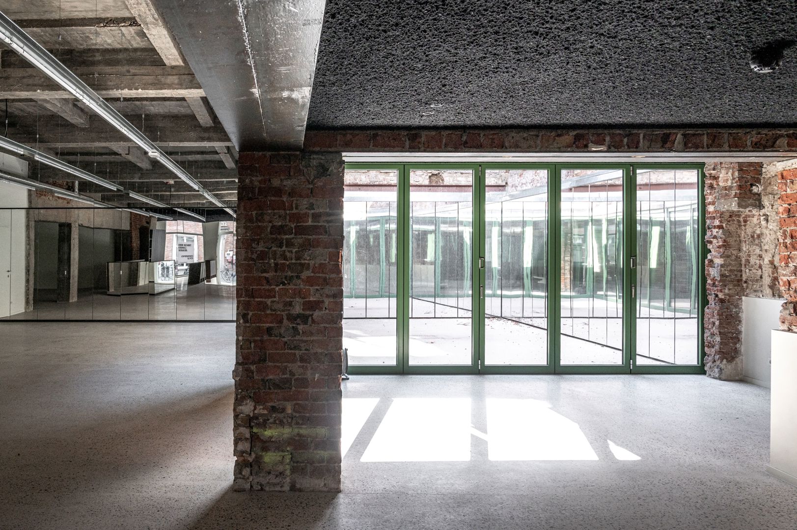 De uitdaging bestond in het binnen brengen van natuurlijk daglicht in deze donkere plek in de stad. Achterop het perceel, verschanst tussen verschillende tuinmuren en aanbouwen zagen we onze verticale kans om daglicht tot in het hart van dit pand te brengen. Via spiegels wordt het licht gecapteerd en verder de ruimte ingekaatst. Ook de inrichting was een huzarenstukje waar we één iets voorop stelden: àlle materialen zijn herbruikte bouwmaterialen van de stad Brugge, die we eerst documenteerden, en vervolgens puzzelden en installeerden. Geen enkele vijs of lijm werd gebruikt. Alles kan nadien terug 100% opnieuw herbruikt worden. Alsof we hier nooit geweest zijn. Deze eenvoudige stelling was onze uitdaging. Eenvoud is niet altijd eenvoudig…