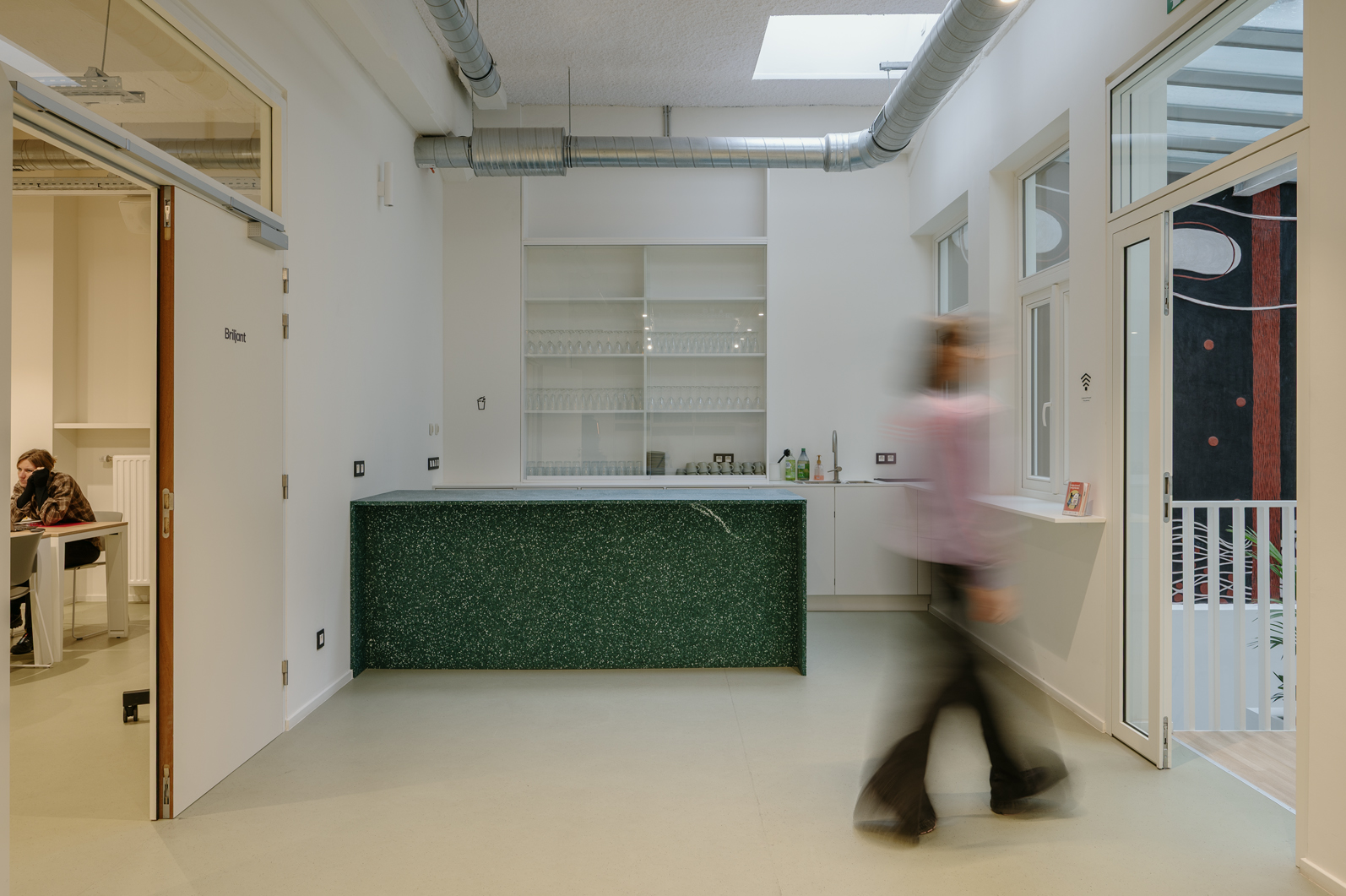 De ontwerpopdracht omvat de duurzame renovatie van kantoorruimtes voor vzw’s in de welzijns- en zorgsector, met als doel een toekomstgericht en klimaatbestendig gebouw te realiseren. Vertrekkend vanuit de passiefstandaard wordt ingezet op een performante gebouwschil en efficiënte technieken. Circulair bouwen staat centraal, met demonteerbare, herbruikbare materialen en reversibele bouwsystemen. De interne organisatie is flexibel en aanpasbaar, met diverse werkvormen zoals open werkplekken, focusruimtes, vergaderzones en hybride werkplekken die samenwerking stimuleren. Het project is laureaat van Renolab B (Leefmilieu Brussel) omwille van zijn innovatieve en doorgedreven circulaire aanpak.