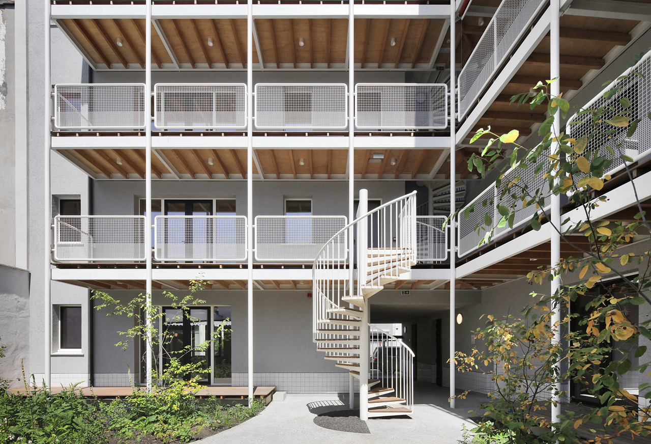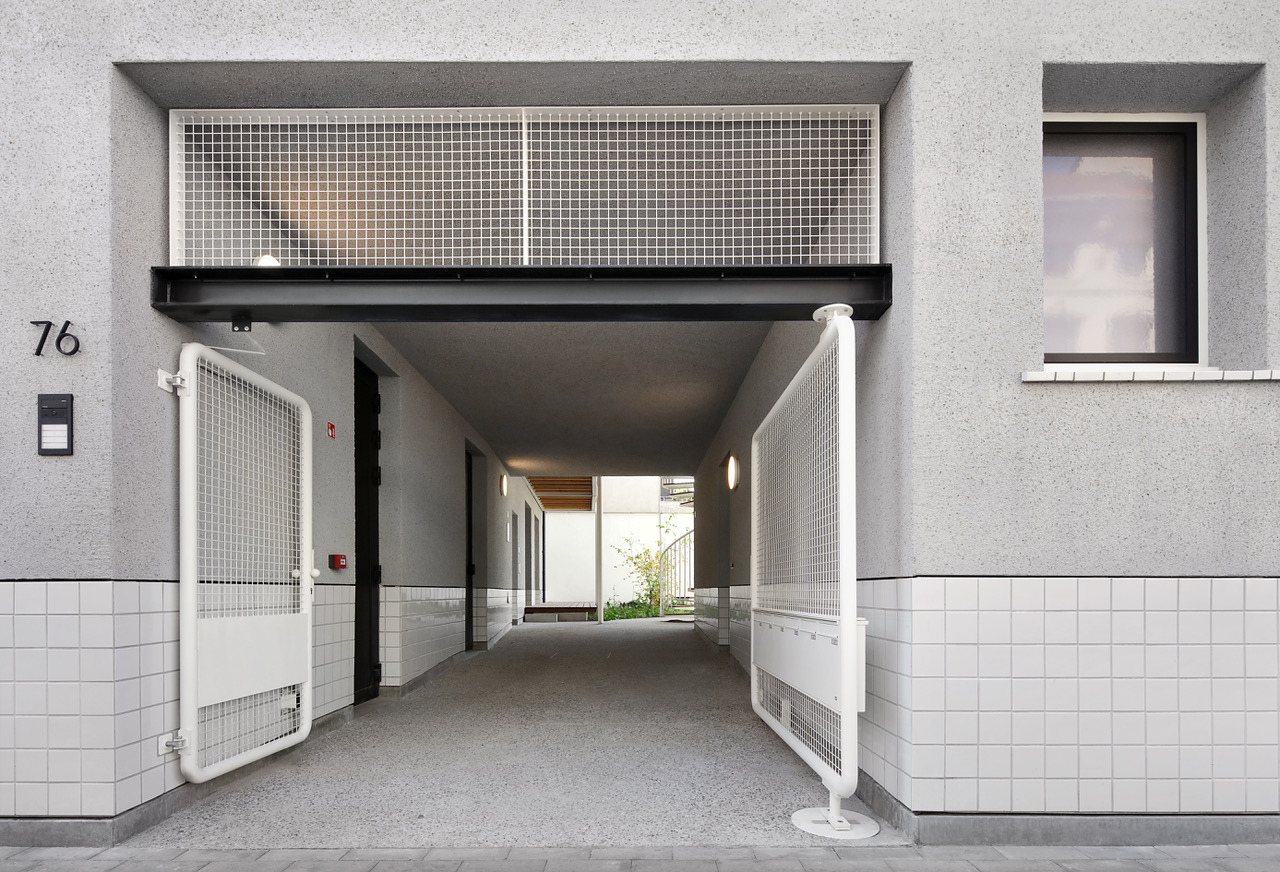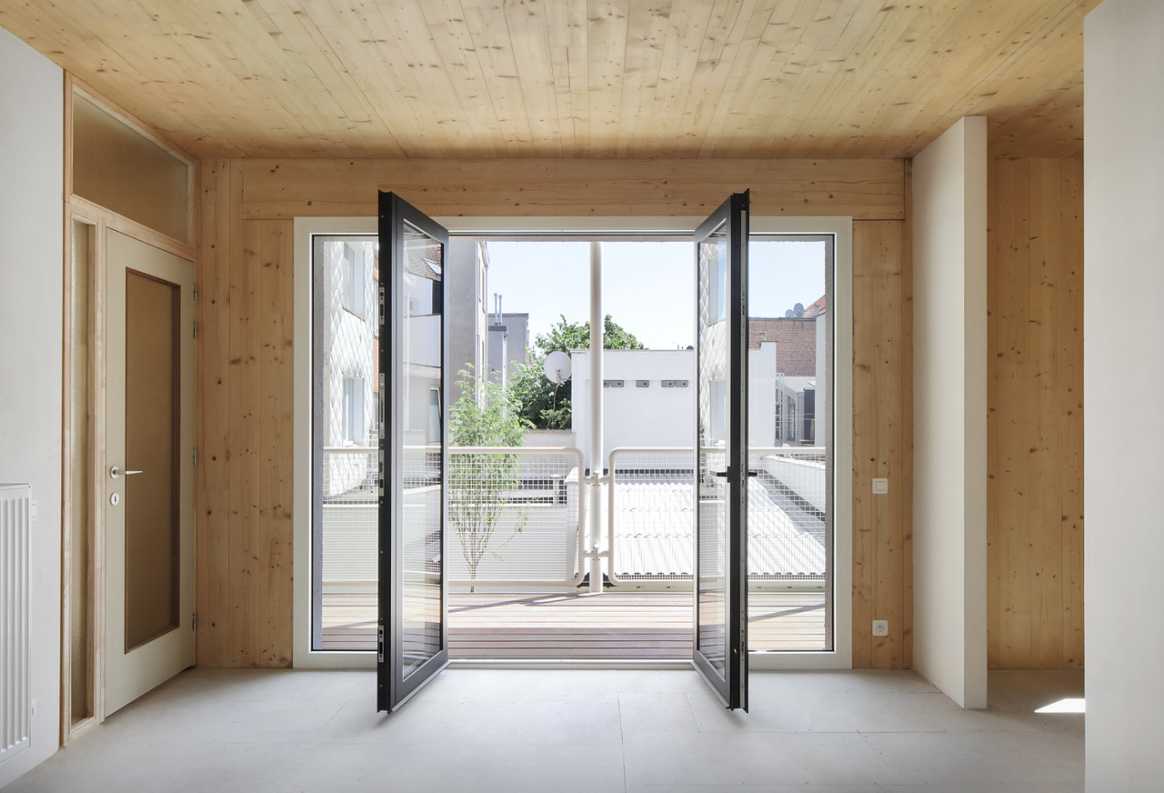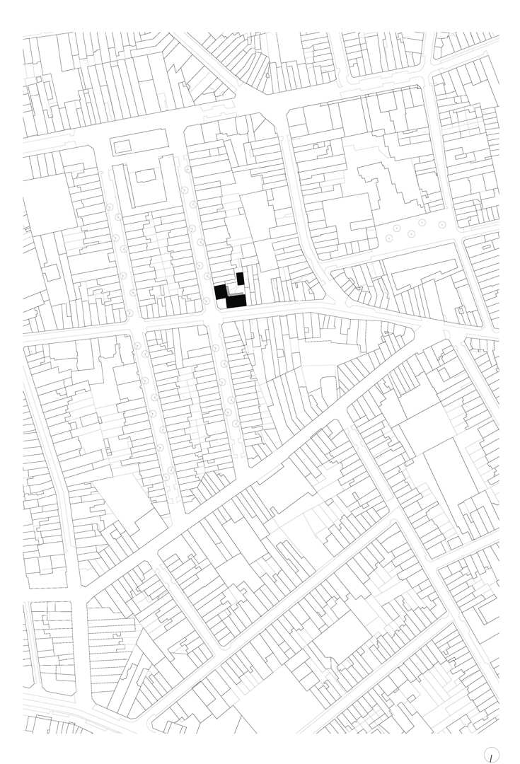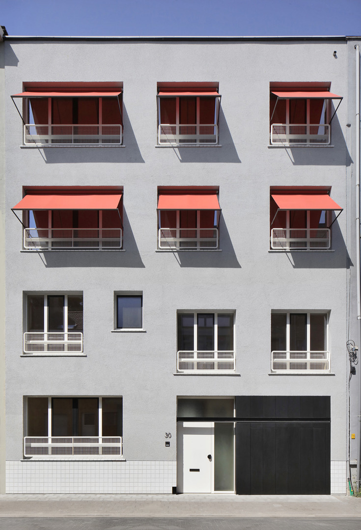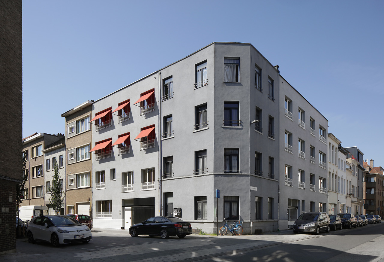 De opdracht kadert binnen het grond- en pandenbeleid van stad Antwerpen, dat ambieert verwaarloosde panden in achtergestelde buurten te vervangen door kwalitatieve woningen. Omdat de initiële vraag – twee panden zouden tot vijf rijwoningen worden verbouwd – zou verderzetten wat ons inziens niet altijd goed werkt, maakten we kritische keuzes. We namen allesbehalve de gemakkelijkste weg. Vooreerst overtuigden we de bouwheer om meergezinswoning i.p.v. rijwoningen te realiseren, waardoor nieuwe doelgroepen en meer gezinnen konden worden gehuisvest. Deze wonen dan niet ‘naast’, maar ‘samen met’ elkaar. De parkeernorm voor deze meergezinswoning voorzag 9 parkeerplaatsen: met verschillende scenario’s dienden we de stad van de onzin van dergelijke regel op deze geringe oppervlakte te overtuigen.