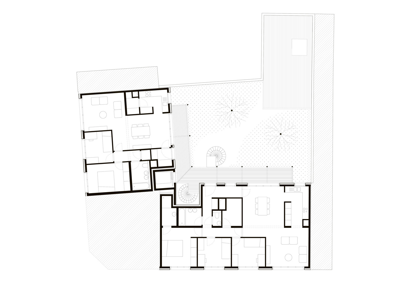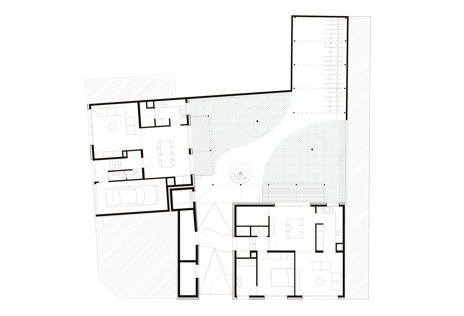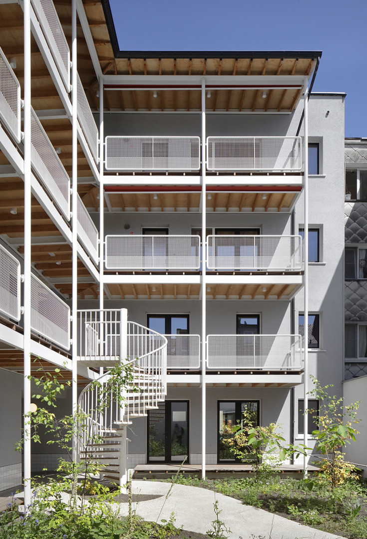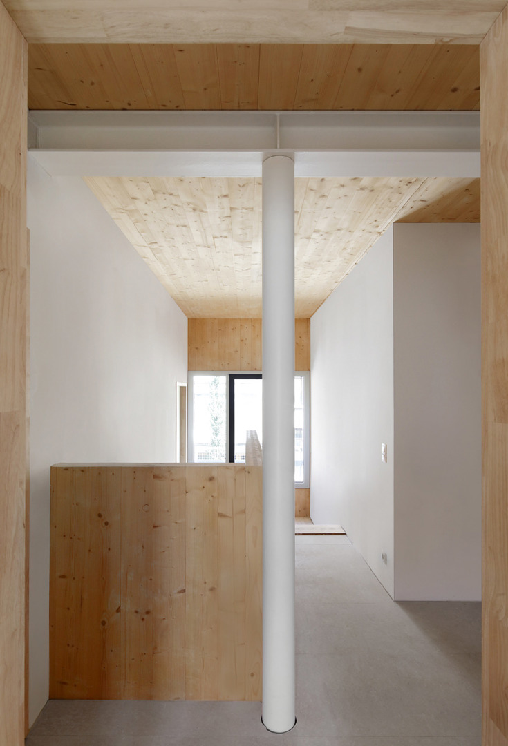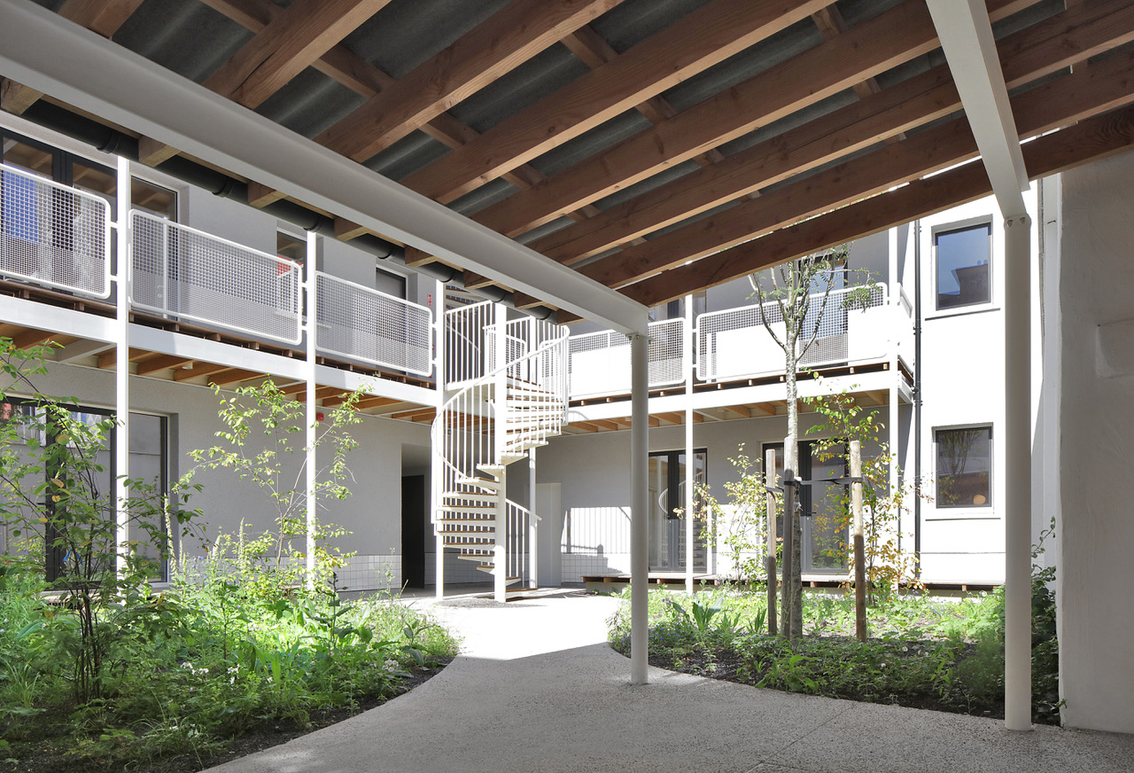 De opdracht kadert binnen het grond- en pandenbeleid van stad Antwerpen, dat ambieert verwaarloosde panden in achtergestelde buurten te vervangen door kwalitatieve woningen. Omdat de initiële vraag – twee panden zouden tot vijf rijwoningen worden verbouwd – zou verderzetten wat ons inziens niet altijd goed werkt, maakten we kritische keuzes. We namen allesbehalve de gemakkelijkste weg. Vooreerst overtuigden we de bouwheer om meergezinswoning i.p.v. rijwoningen te realiseren, waardoor nieuwe doelgroepen en meer gezinnen konden worden gehuisvest. Deze wonen dan niet ‘naast’, maar ‘samen met’ elkaar. De parkeernorm voor deze meergezinswoning voorzag 9 parkeerplaatsen: met verschillende scenario’s dienden we de stad van de onzin van dergelijke regel op deze geringe oppervlakte te overtuigen.