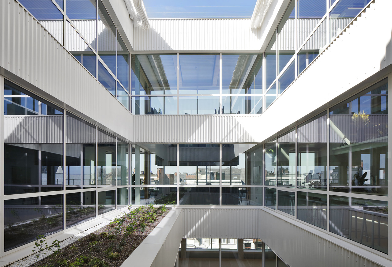 Het verzoenen van de uitgebreide technische en programma-eisen met de erfgoedwaarden bleek een complexe uitdaging. Enkele bepalende ingrepen zijn het inbrengen van natuurlijk daglicht via vides tot diep in het gebouw, het voorzien van groenruimte en terrassen, het slim schakelen van circulatiekernen zodat verschillende (kantoor)indelingen in de toekomst mogelijk zijn en het zorgvuldig integreren van twee extra bouwlagen binnen een bestaande brutalistische structuur. Daarnaast vormde de stabiliteit een randvoorwaarde voor de uitbreiding. Het ontwerp formuleert hierop een coherent antwoord door te vertrekken vanuit een grondige analyse van het bestaande. De toevoeging van twee extra bouwlagen wordt opgevat als een hedendaagse interpretatie van het bestaande architecturale raster.