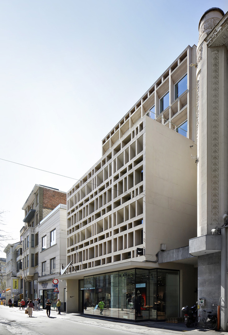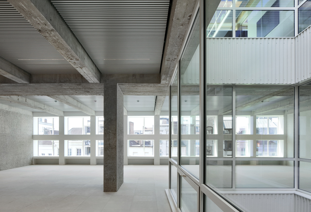 Door een exemplarische omgang met erfgoed binnen een complexe stedelijke context. De interventie vertrekt vanuit een doordachte herinterpretatie van de oorspronkelijke architectuur waar de brutalistische logica gerespecteerd wordt en actief vertaald naar een hedendaagse architectuurtaal. Daarnaast getuigt het ontwerp van een sterke integratie van programmatische, technische en erfgoedmatige uitdagingen. De toevoeging van twee bouwlagen, de optimalisatie van daglicht en circulatie, en de herwaardering van de plint worden coherent samengebracht in één leesbaar geheel. Het project combineert ruimtelijke kwaliteit, duurzaamheid en economische haalbaarheid, en toont hoe bestaande gebouwen via gerichte ingrepen opnieuw betekenisvol kunnen worden in het stedelijk weefsel.
