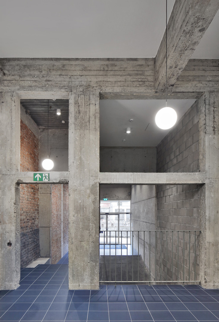 Het project is duurzaam in brede zin door maximaal in te zetten op hergebruik van het bestaande gebouw en het valoriseren van erfgoedwaarden. Door de bestaande structuur te behouden en te versterken, wordt de materiaalimpact aanzienlijk beperkt. De herbestemming naar een gemengd programma verhoogt bovendien de gebruiksintensiteit en levensduur van het gebouw. Ingrepen zoals het verbeteren van daglichttoetreding en circulatie dragen bij aan het comfort en de toekomstbestendigheid. De toevoeging van lichte, efficiënte constructies met aandacht voor duurzame materialen voor de extra bouwlagen beperkt de structurele belasting. Tegelijk zorgt de integratie van oud en nieuw voor een architecturaal duurzame oplossing die het gebouw opnieuw verankert in de stedelijke context.