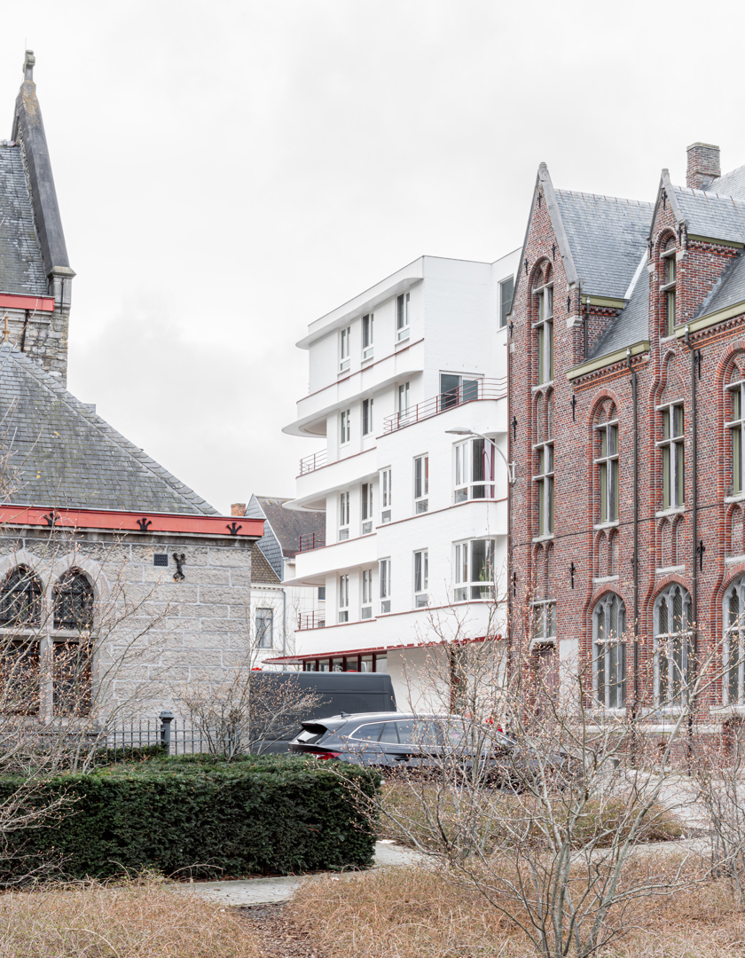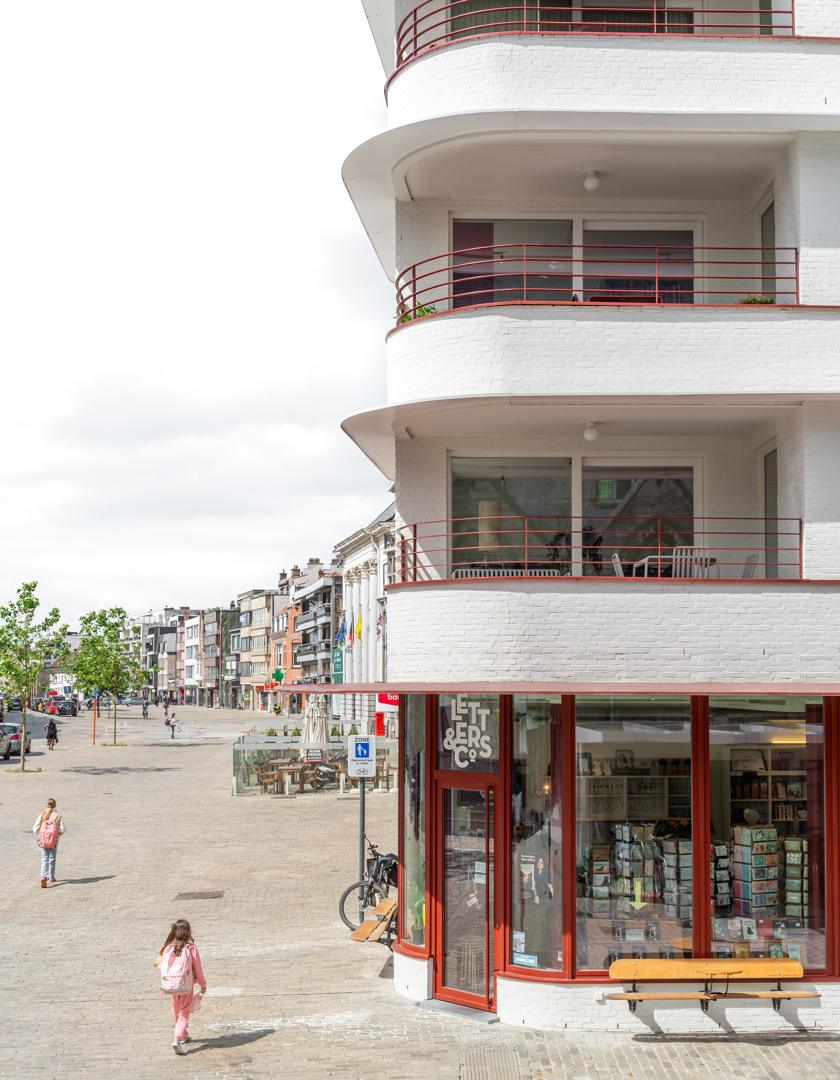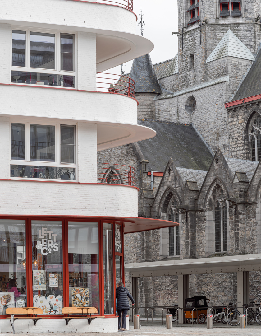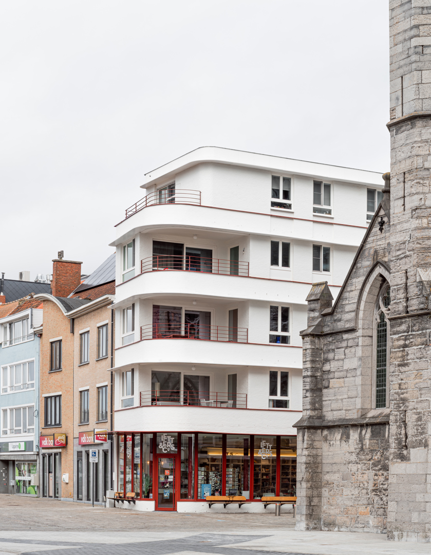 Letters&Co bewijst dat architecturale kwaliteit niet afhangt van schaal, maar van precisie, visie en impact. In één compact project komen stedelijke meerwaarde, programmatische intelligentie, duurzaamheid en uitgesproken architectuur samen. Het gebouw geeft een strategische plek in Deinze opnieuw betekenis, maakt de boekenwinkel zichtbaarder en toegankelijker en koppelt dat aan kwalitatief wonen in het hart van de stad. De afgeronde hoek, de gelaagde gevel en de subtiele verwijzing naar art deco geven het project een sterke identiteit, terwijl ritmiek, geleding en materiaalgebruik zorgen voor een vanzelfsprekende inpassing in het bestaande stedelijke weefsel. Daardoor is Letters&Co tegelijk eigenzinnig én evident aanwezig.