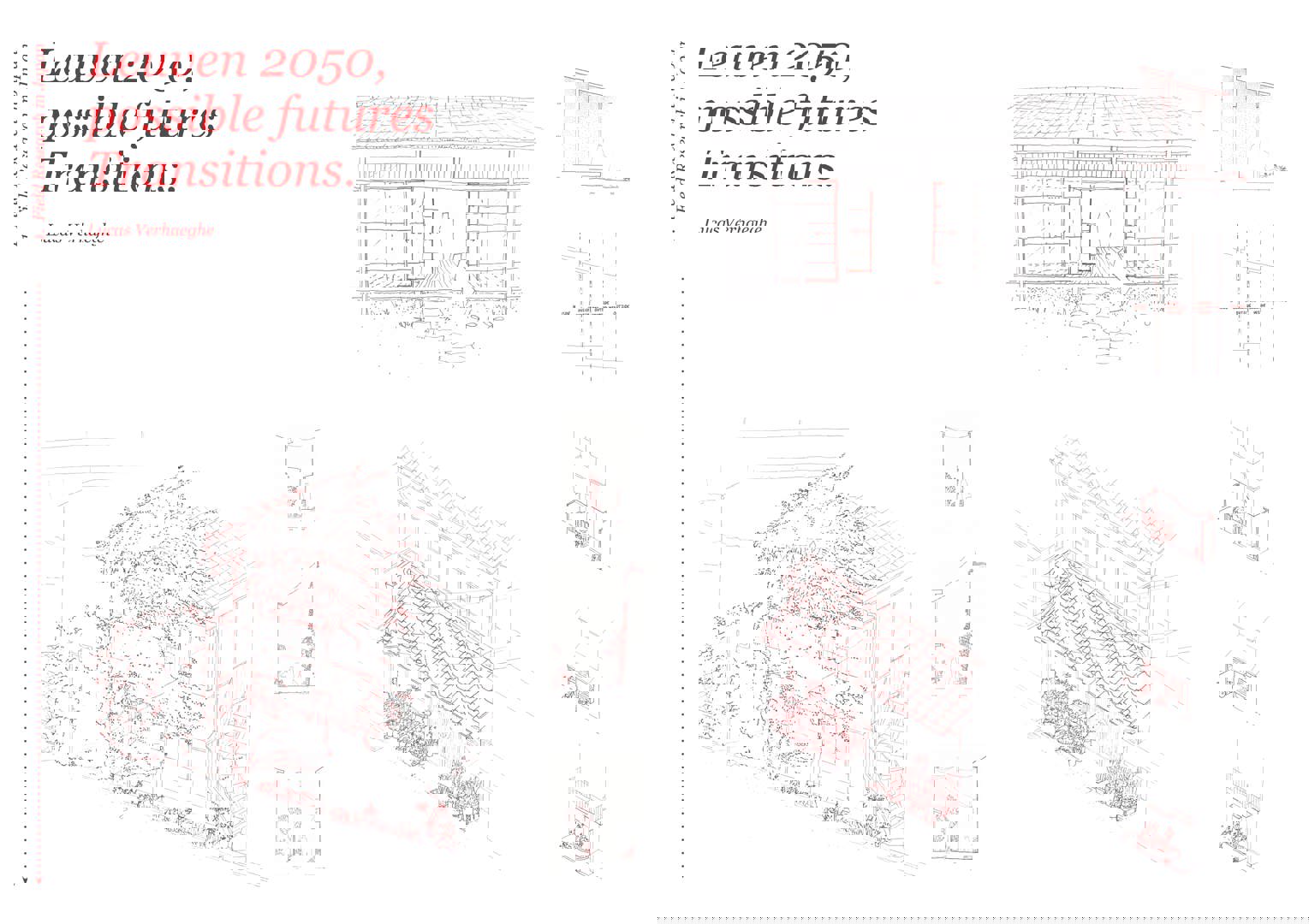 ‘Transitions’ onderzoekt hoe een verouderde woonwijk uit de jaren '70 aan de rand van Leuven toekomstbestendig kan worden gemaakt. Het project is geïnspireerd door Japanse ontwerpprincipes, waarbij kleine, gerichte ingrepen als kracht worden gezien. Het biedt oplossingen voor de ecologische, ruimtelijke en sociale uitdagingen van de wijk. Daarbij wordt natuur, architectuur en infrastructuur subtiel met elkaar verbonden. Dit alles zorgt ervoor dat de wijk zich voorbereidt op de toekomst, met een sterke focus op vergroening, klimaatadaptatie en het vervagen van de grens tussen publieke en private ruimte.