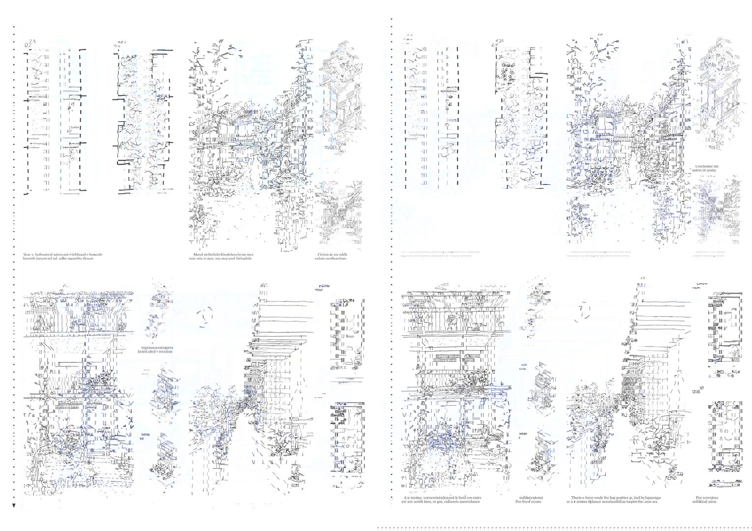 De wijk kampt met een tekort aan kwalitatief groen, een overheersende auto-infrastructuur en geluidsoverlast van de aangrenzende ringweg. Ze wordt verder gekenmerkt door gesloten woningtypologieën, een gebrek aan sociale cohesie en een beperkte veerkracht tegen droogte en wateroverlast. Transitions ontwikkelt een geïntegreerd ontwerp dat voortbouwt op de bestaande structuren en deze versterkt. Een lineaire structuur reorganiseert de mobiliteit, dempt geluid en hertekent de groenstructuur van de wijk. Het nieuwe ateliergebouw fungeert als katalysator voor verdere ingrepen, zoals vergroende voortuinen, modulaire woninguitbreidingen in de vorm van een terrasstructuur met passerelles naar nieuwe optoppingen, en een cascadesysteem van groendaken, wadi’s en regenwaterrecuperatie.