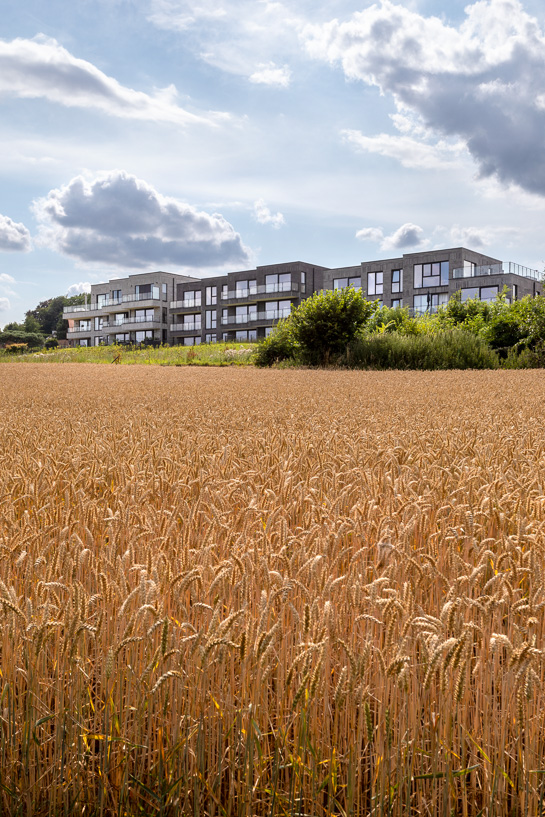 Dit project verdient een Architectura Award vanwege de voorbeeldige manier waarop het zachte verdichting tot een goed einde brengt. Door het programma op te splitsen in drie volumes met een getrapte vorm, vergroot het het woningaanbod en blijven tegelijkertijd de essentiële zichtlijnen naar het Bois du Prince behouden. De innovatie zit ook in het concept van het “geleende landschap”, waarbij biodiversiteit en waterbeheer via groene greppels niet langer decor zijn, maar structurele pijlers. Het is een treffend architecturaal antwoord dat bewijst dat stedelijke intensiteit de landschappelijke identiteit van een plek kan versterken in plaats van deze op brute wijze te vervangen.
