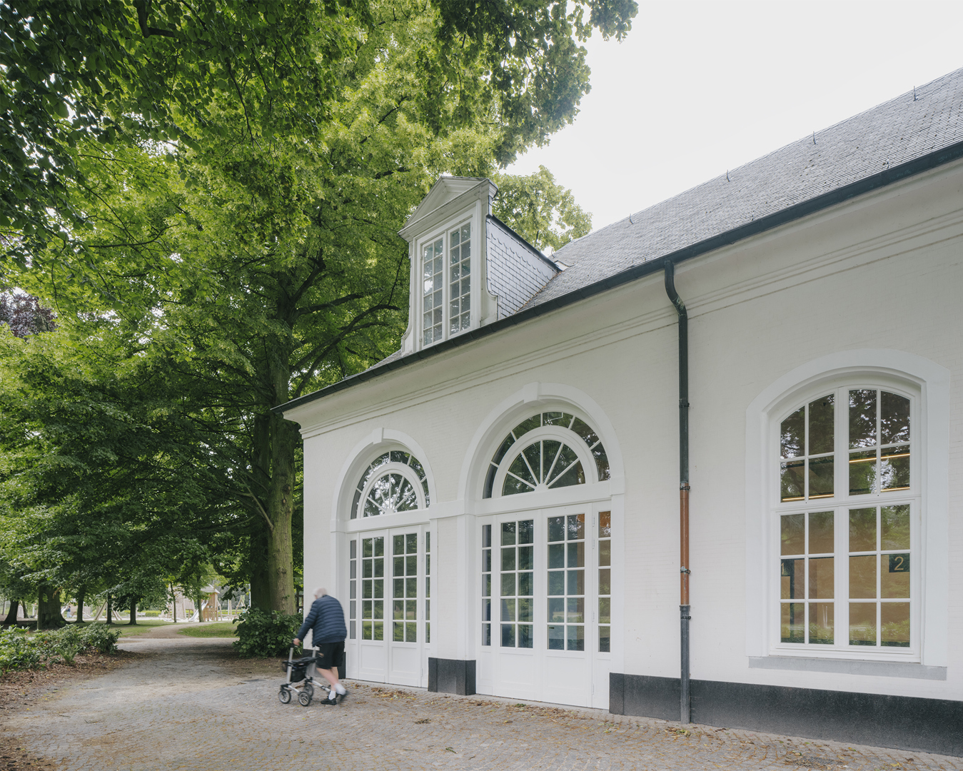 Duurzaamheid manifesteert zich hier als hergebruik en toekomstgericht denken. Door bestaande gebouwen een nieuwe invulling te geven, wordt hun levensduur verlengd en hun waarde geactiveerd. De ingrepen zijn circulair en omkeerbaar, waardoor het gebouw zich in de toekomst opnieuw kan aanpassen. Tegelijk maakt de herschikking van functies binnen het domein ruimte voor maatschappelijke noden, zoals kinderopvang (de volgende fase in dit project), en versterkt het de publieke rol van de site.