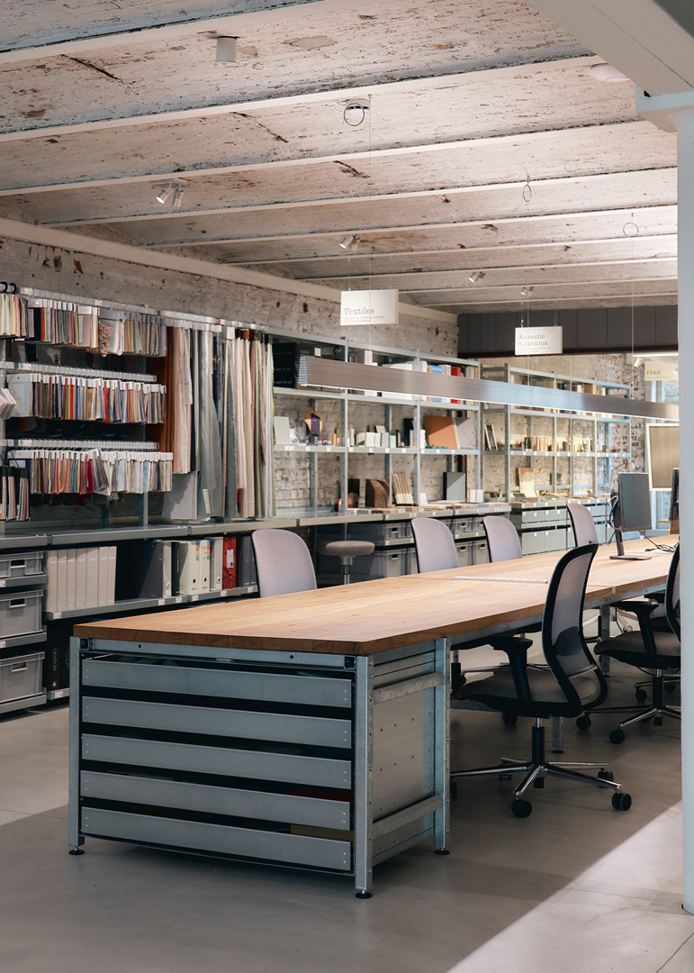 Het doel was om een honderd jaar oude brouwerij te transformeren tot een ecosysteem gewijd aan **sustainable spatial design**. Het programma vereiste de harmonieuze cohabitatie van hybride functies: een materialenbibliotheek met ruim 15.000 stalen en ontwerptools (light labs, moodboarding), een ergonomische coworking met 52 werkplekken en modulaire evenementenruimtes. De architecturale uitdaging lag in de morfologie van het gebouw: een diepe structuur met beperkte lichtinval. De missie bestond erin de kern van het gebouw met natuurlijk licht te bevloeien en tegelijkertijd de industriële identiteit te behouden. De interventie garandeert flexibiliteit op lange termijn en een duurzame bouwlogica, met een hoog niveau van comfort en ergonomie voor een veeleisend professioneel publiek.