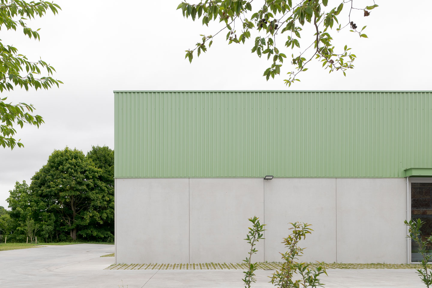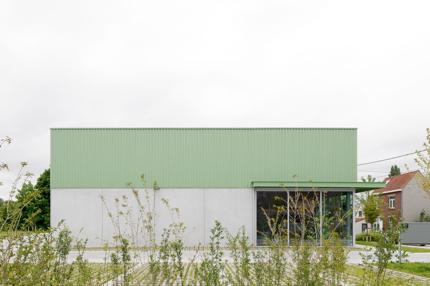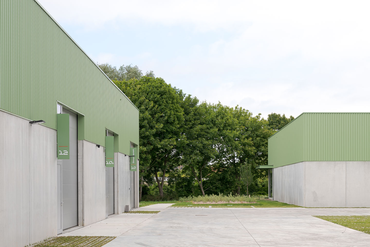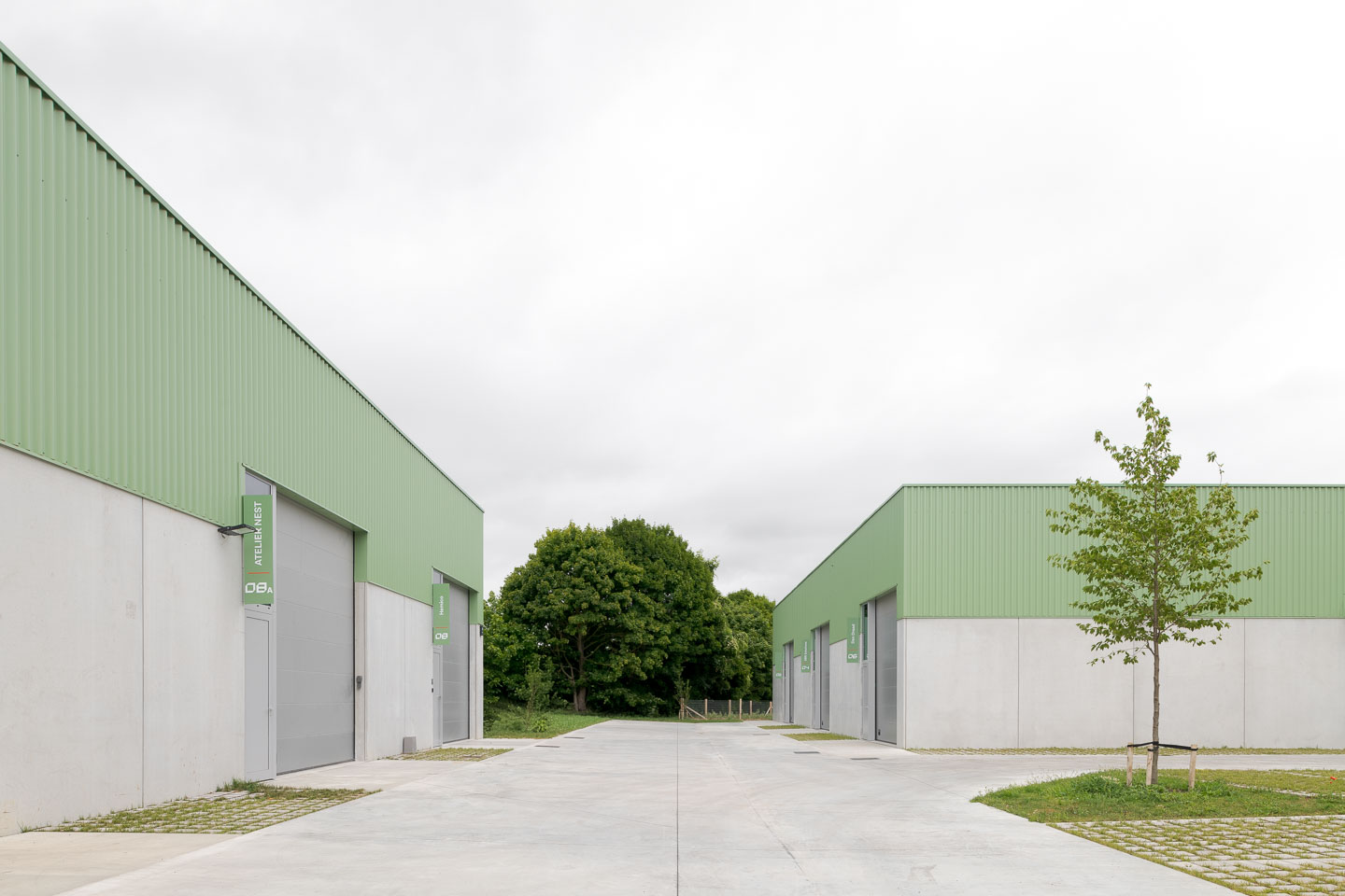Het project wordt georganiseerd als een ensemble van 4 afzonderlijke gebouwen. Door deze opsplitsing blijft de schaal beperkt en wordt een fijnkorrelige structuur gegarandeerd. De volumes worden zo geschakeld dat zichtassen naar de Markebeek behouden blijven en een levendig en open plan ontstaat. Het inplantingsprincipe laat bovendien toe om dit schema in een latere fase verder door te trekken. In totaal worden 13 KMO-units voorzien, waarvan drie gekoppeld zijn aan een atelierwoning. Deze woningen richten zich naar de Markebeek en het Preshoekbos en zorgen voor een dynamisch accent binnen het geheel.