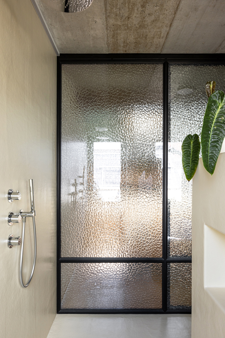 De woning werd opgebouwd uit split-levels. Zo kon het bouwvolume compact gehouden worden ten voordele van de tuin en kan het zonlicht via de zuidgerichte voorgevel tot achteraan doordringen. De trap, omgeven door eiken balken als knipoog naar de stal, verbindt alle split-levels en zorgt voor een fantastische ruimtelijke ervaring. In de leefkeuken werd het werkgedeelte opgehoogd waardoor je gezellig aan de bar zit zoals ooit bij Irene en je kan er koken met zicht op de tuin en de oude stal. Deze stal was heel donker. Door een deel van de vloer te verwijderen en de het dak te bedekken transparante golfplaten valt het licht royaal naar binnen. De ruimte voelt als het verlengde van de tuin. Zowel in het huis als de stal werd een bruine betonvloer geplaatst. Het tuinpad verbindt beide entiteite