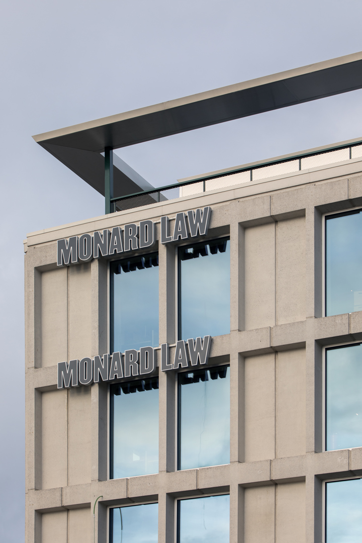 Het project omvat de volledige interieurinrichting van drie niveaus binnen het bestaande RE|CORE -gebouw ( The Office) in Hasselt, voor advocatenkantoor Monard. De opdracht bestond erin een werkomgeving te creëren die de identiteit en werking van het kantoor vertaalt naar een functionele en representatieve ruimte. De verdiepingen +3 en +4 werden ingericht met voornamelijk individuele kantoren die discretie, concentratie en akoestisch comfort ondersteunen. Niveau +5 vormt de gedeelde laag met vergaderruimtes, een congresruimte en informele ontmoetingsplekken. Deze opbouw zorgt voor een duidelijke scheiding tussen geconcentreerd werk en overleg, waardoor elke activiteit een passende plek krijgt binnen het geheel.