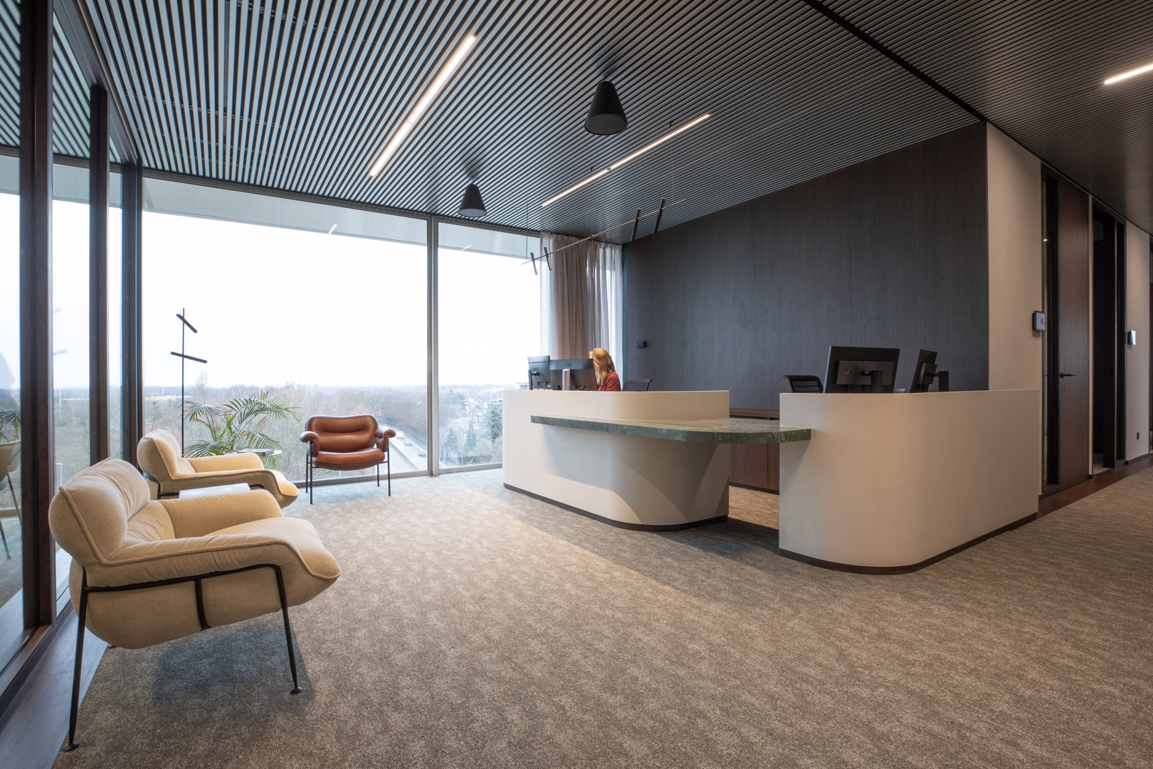 Met de komst van Monard Law wordt The Office opnieuw tot leven gebracht, waarbij een karaktervol gebouw en een organisatie die kwaliteit, menselijk contact en werkplezier centraal stelt naadloos samenkomen. Het project vertaalt de cultuur en werking van de organisatie op een overtuigende ruimtelijke manier, waarbij concentratie, discretie en samenwerking harmonieus samengaan binnen de bestaande architectuur. De ingreep combineert een doordachte organisatie met een warme materialisatie die het karakter van het advocatenkantoor versterkt. Het resultaat is een duurzame, functionele en esthetisch sterke werkplek die zowel de gebruikers inspireert als de site een vernieuwde identiteit geeft. Dit project toont hoe interieur en architectuur samen een betekenisvolle werkomgeving kunnen creëren.
