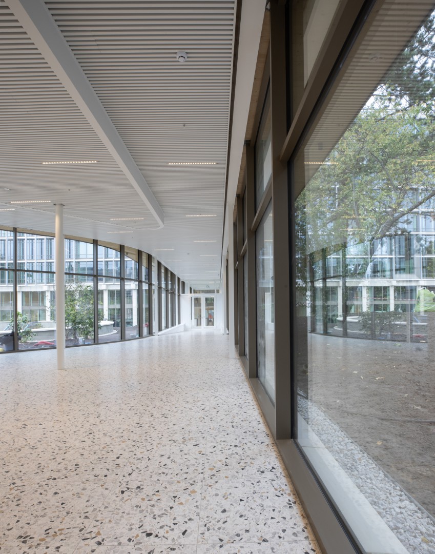 De grootste uitdaging lag in het transformeren van een gesloten, verouderd kantorencomplex tot een open, flexibel en toekomstbestendig geheel, zonder afbreuk te doen aan de bestaande identiteit. Dit werd aangepakt door het behoud en de versterking van de structuur, in combinatie met een circulaire renovatiestrategie. Onderbenutte ruimtes kregen nieuwe functies en de centrale tuin werd opnieuw geïntegreerd als verbindend hart. Tegelijk werden daglichttoetreding, comfort en flexibiliteit sterk verbeterd via een modulaire opbouw en een ontwerp dat inspeelt op toekomstige levenscycli. De transformatie is dermate gedetailleerd uitgevoerd dat het gebouw volledig naar de hedendaagse standaard is gebracht en voldoet aan de huidige normeringen op het gebied van stabiliteit, techniek en EPB.