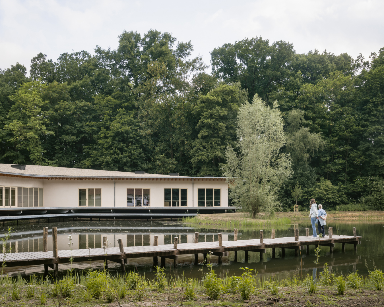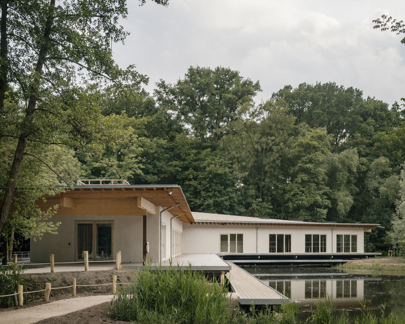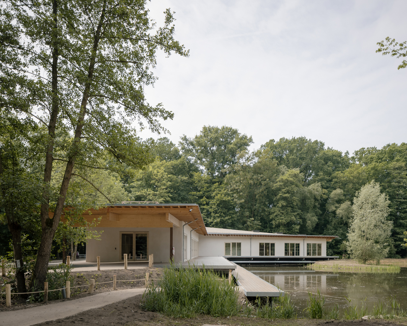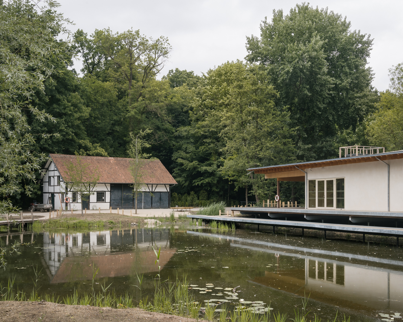 Met het masterplan schrijven we een nieuw verhaal, gedragen door een overkoepelende visie die de natuur versterkt, vandaag en in de toekomst. Alle landschappelijke en architecturale ingrepen zijn erop gericht de natuurkwaliteit te verbeteren en de beleving ervan te verdiepen en te verrijken. Een nieuw onthaalpaviljoen vormt het kloppend hart van het domein en verwelkomt bezoekers op een eigentijdse, duurzame en integraal toegankelijke manier. Dit innovatieve gebouw, opgetrokken uit circulaire en bio-based materialen, gaat naadloos op in het landschap en fungeert zowel als informatiepunt als leer- en ontmoetingsplek. De kantoren bevinden zich in een rustigere vleugel, terwijl de openbare sanitaire voorzieningen met toegankelijkheidslabel A++ geïntegreerd zijn in de ontvangstzone.