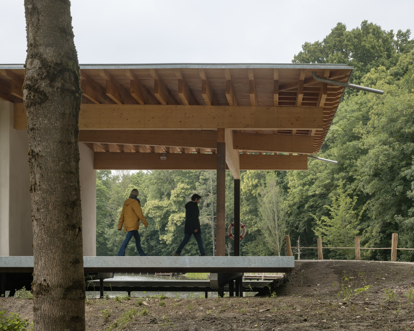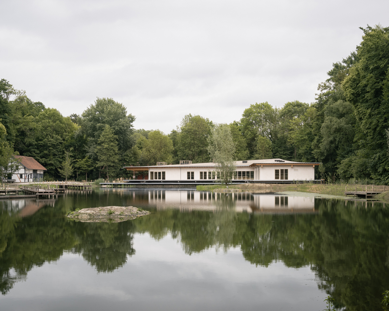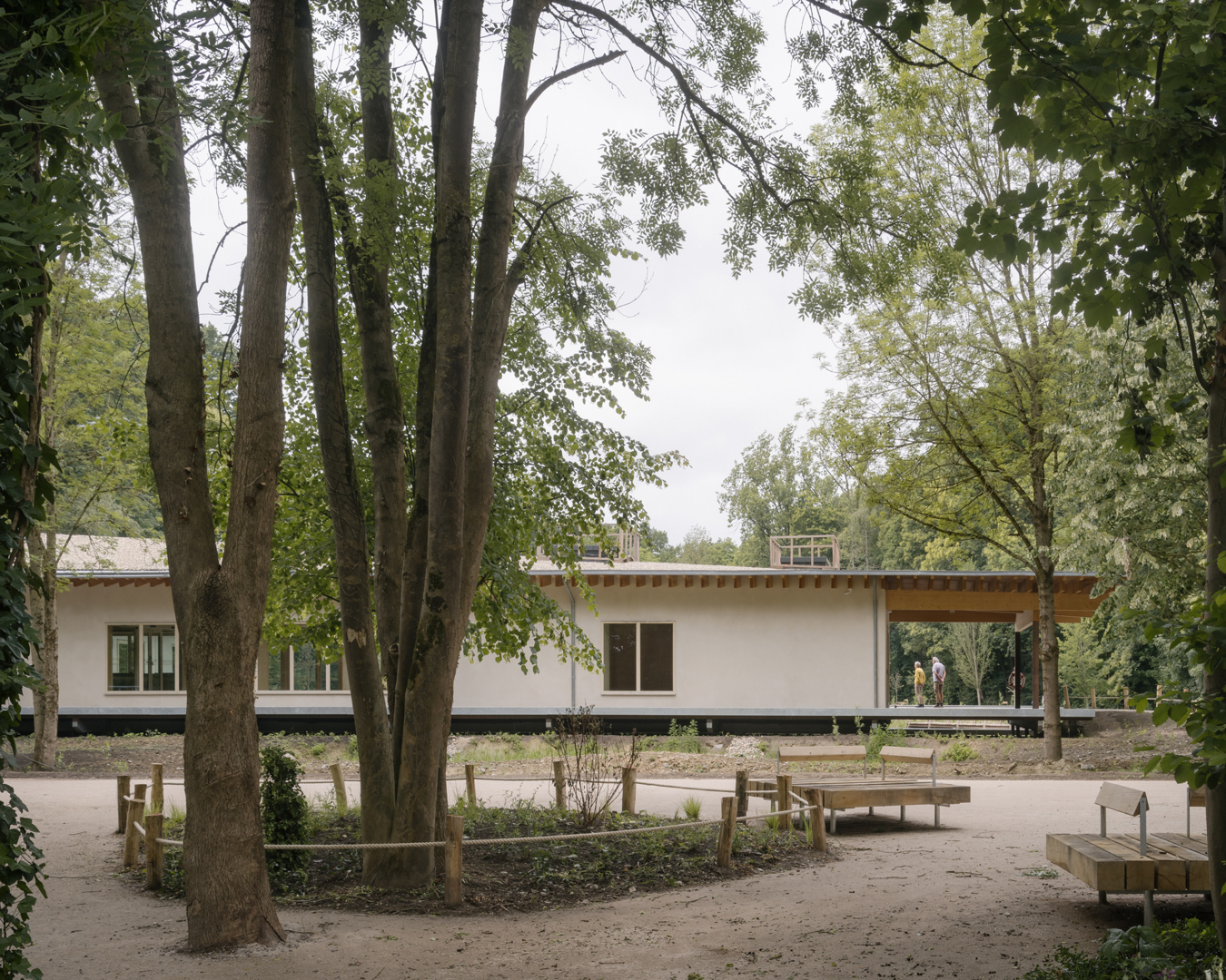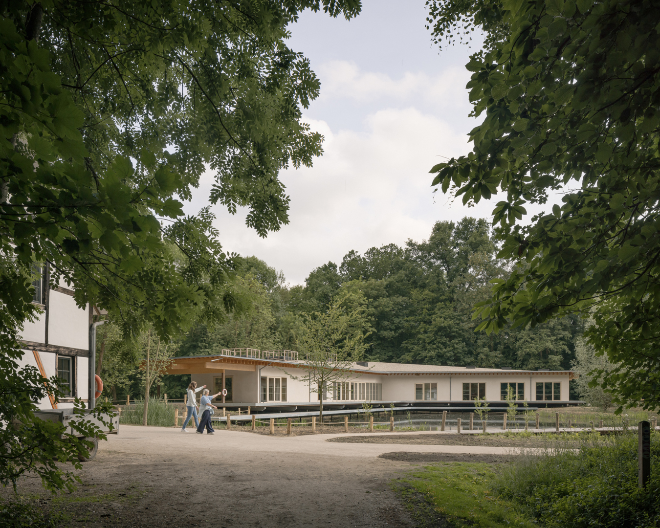 Met het masterplan schrijven we een nieuw verhaal, gedragen door een overkoepelende visie die de natuur versterkt, vandaag en in de toekomst. Alle landschappelijke en architecturale ingrepen zijn erop gericht de natuurkwaliteit te verbeteren en de beleving ervan te verdiepen en te verrijken. Een nieuw onthaalpaviljoen vormt het kloppend hart van het domein en verwelkomt bezoekers op een eigentijdse, duurzame en integraal toegankelijke manier. Dit innovatieve gebouw, opgetrokken uit circulaire en bio-based materialen, gaat naadloos op in het landschap en fungeert zowel als informatiepunt als leer- en ontmoetingsplek. De kantoren bevinden zich in een rustigere vleugel, terwijl de openbare sanitaire voorzieningen met toegankelijkheidslabel A++ geïntegreerd zijn in de ontvangstzone.