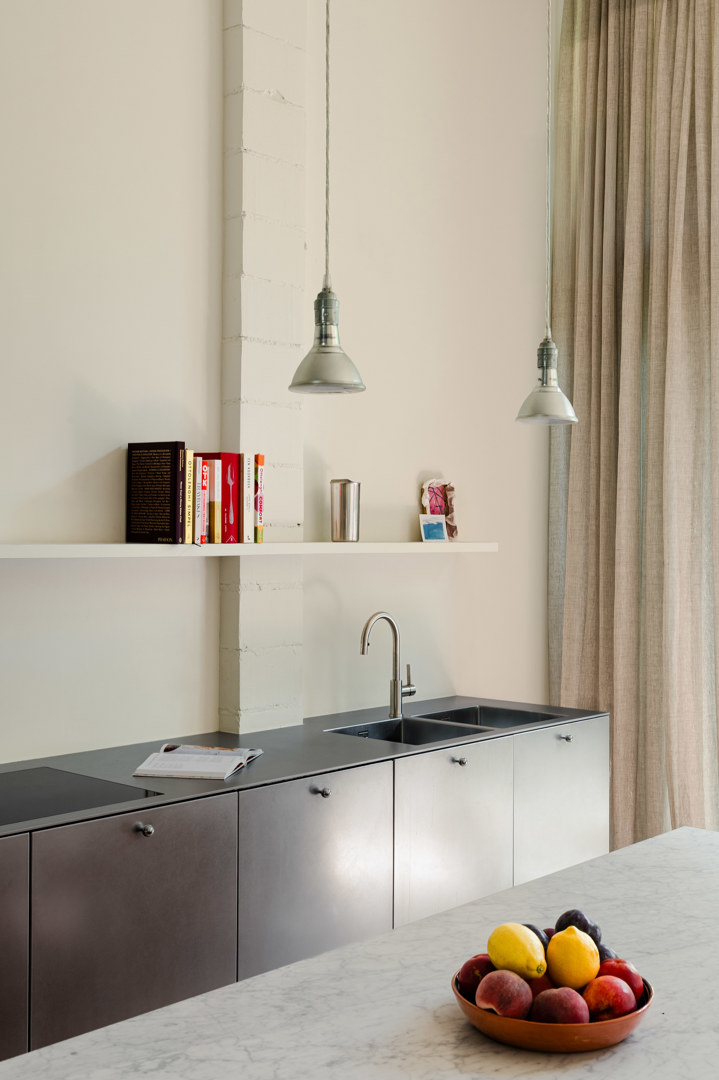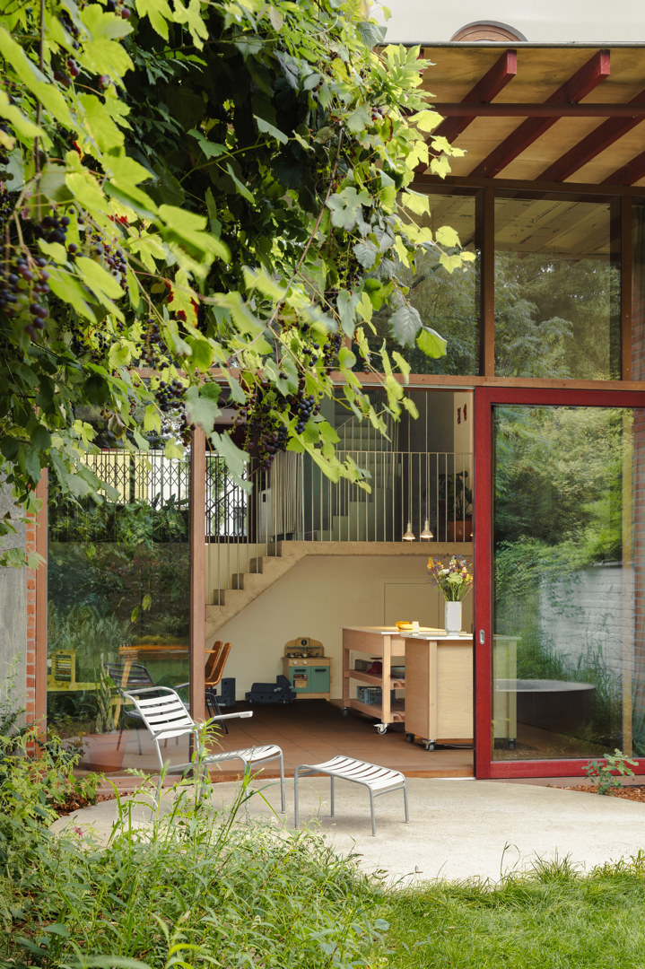 Project NECTAR vertrekt vanuit de transformatie van de voormalige kruidenierszaak ‘De Nectar’ tot een hedendaagse eengezinswoning, zonder nieuw volume toe te voegen. De opdracht bestond erin de ziel en het karakter van het handelspand te behouden, terwijl het gebouw werd aangepast aan een comfortabel gezinsleven. De open plint en de relatie met de straat bleven uitgangspunt, maar kregen een nieuwe invulling als overgangsruimte tussen publiek en privé. Door reductie van de bestaande oppervlakte en het afbreken van een groot deel van de achterbouw werd de tuin verdubbeld en het licht en zicht in de leefruimtes verbeterd.