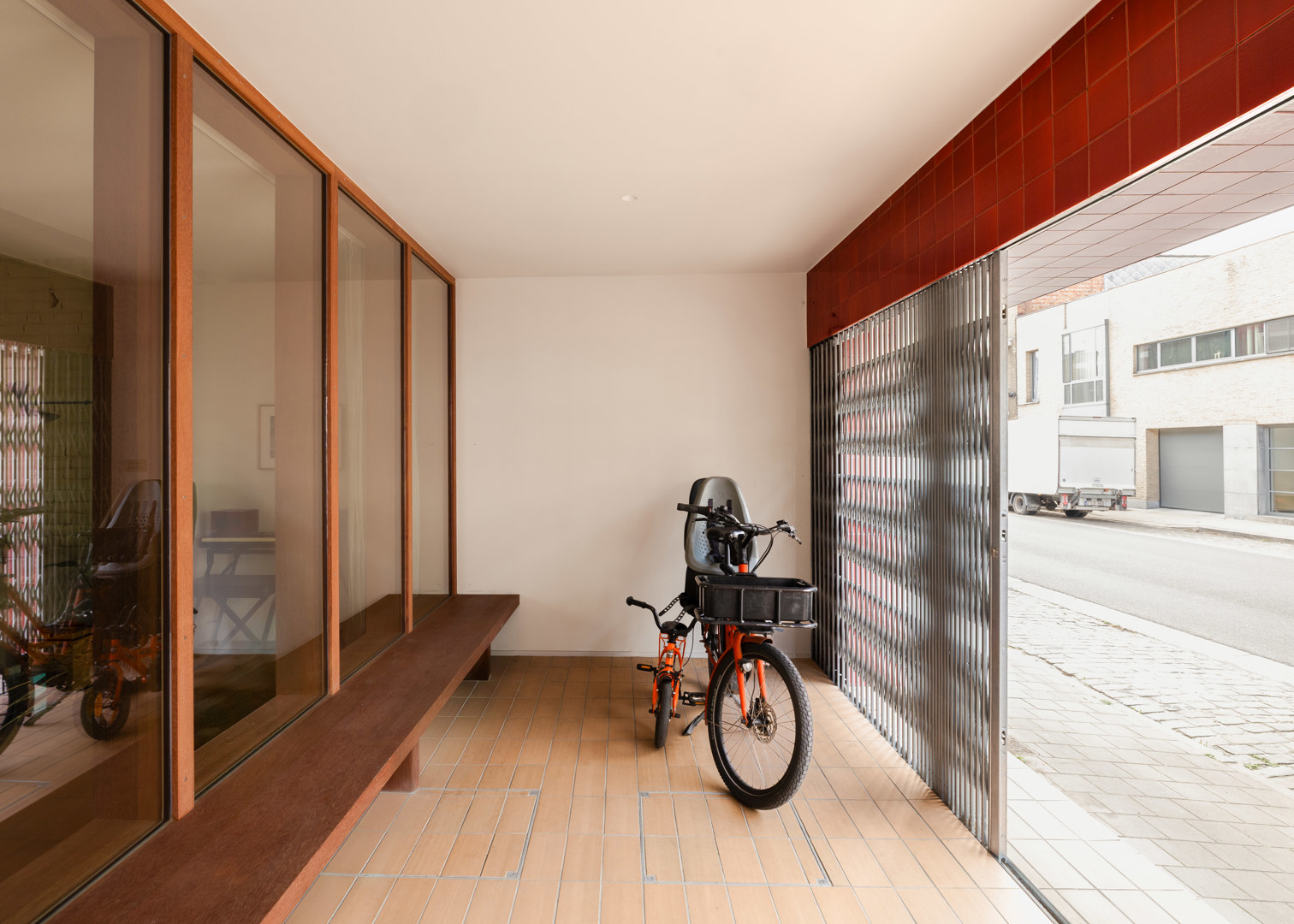 De grootste uitdaging was het combineren van het commerciële verleden met een huiselijke, functionele woning en het optimaal verdelen van de bestaande oppervlakte, zonder iets nieuws bij te bouwen. Door een groot deel van de achterbouw te slopen verdubbelde de tuin en werd daglicht diep in de woning getrokken via een grote glaspartij en een dubbelhoge ruimte boven de keuken. Aan de straatzijde werd de voormalige winkelruimte een beschutte overgangszone voor fietsen en ontmoeting. Een multifunctioneel meubel en maatwerk schrijnwerk op het gelijkvloers organiseren de circulatie en functies, brengen rust en samenhang en versterken de flexibiliteit in het gebruik van de woning.