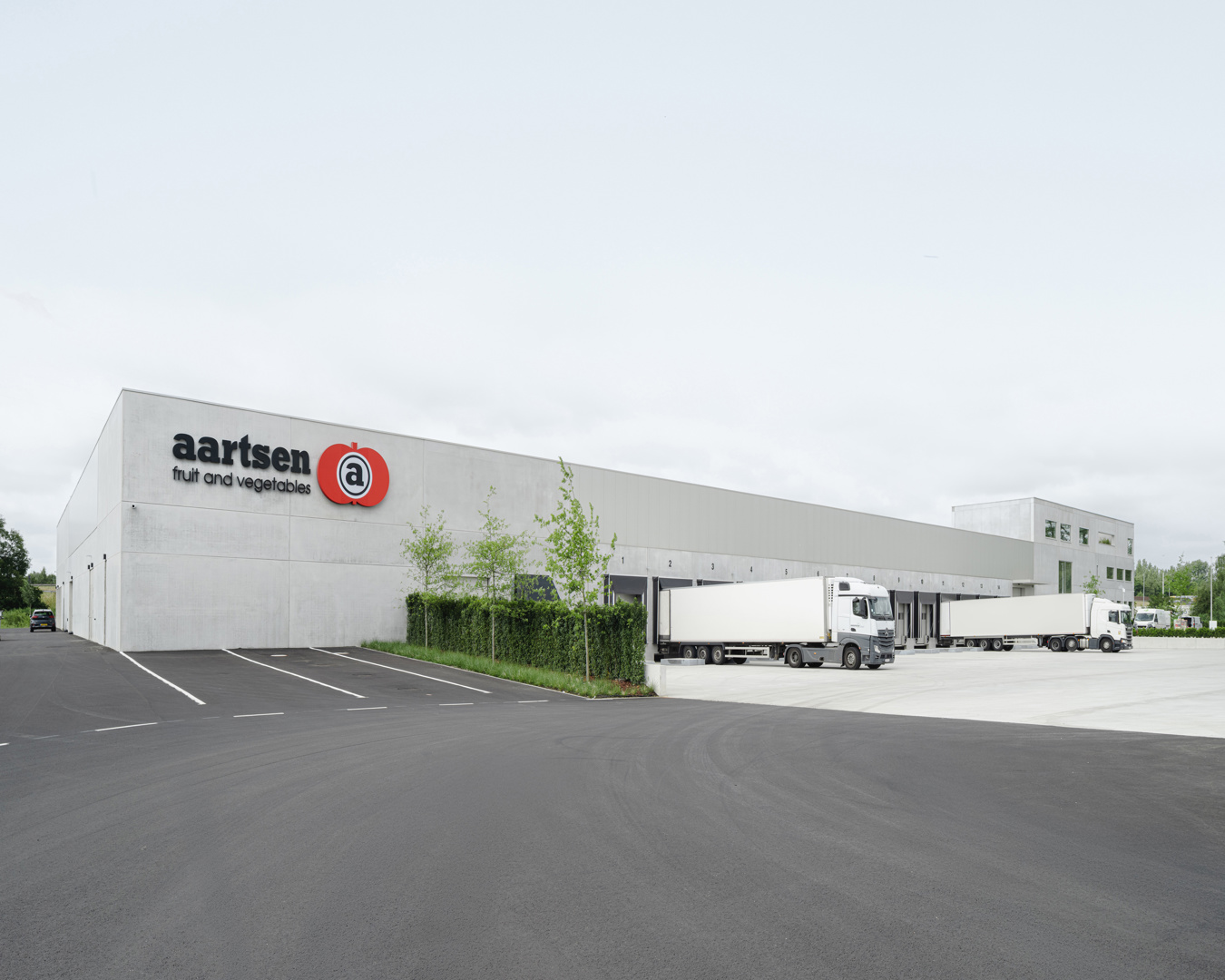 Mag een industrieel gebouw er ook echt industrieel uitzien? En waarom hebben kantoren in deze gebouwen vaak de uitstraling van een standaard kantoor? Met deze vragen als vertrekpunt gingen opdrachtgever Aartsen, Grosfeld Bekkers van der Velde architecten en PUUR interieurarchitecten aan de slag. Door de groei van het Belgische filiaal van Aartsen Fruit & Vegetables ontstond een urgente behoefte aan passende huisvesting. De opgave omvatte een distributieloods, een verkoopomgeving (cash&carry) en ondersteunende kantoren met personeelsvoorzieningen. Vanuit de gezamenlijke reflectie ontstond een heldere ambitie: een economisch en tegelijkertijd onderscheidend gebouw, gebaseerd op eerlijke industriële materialen en principes, waarbij het functionele karakter wordt omarmd.