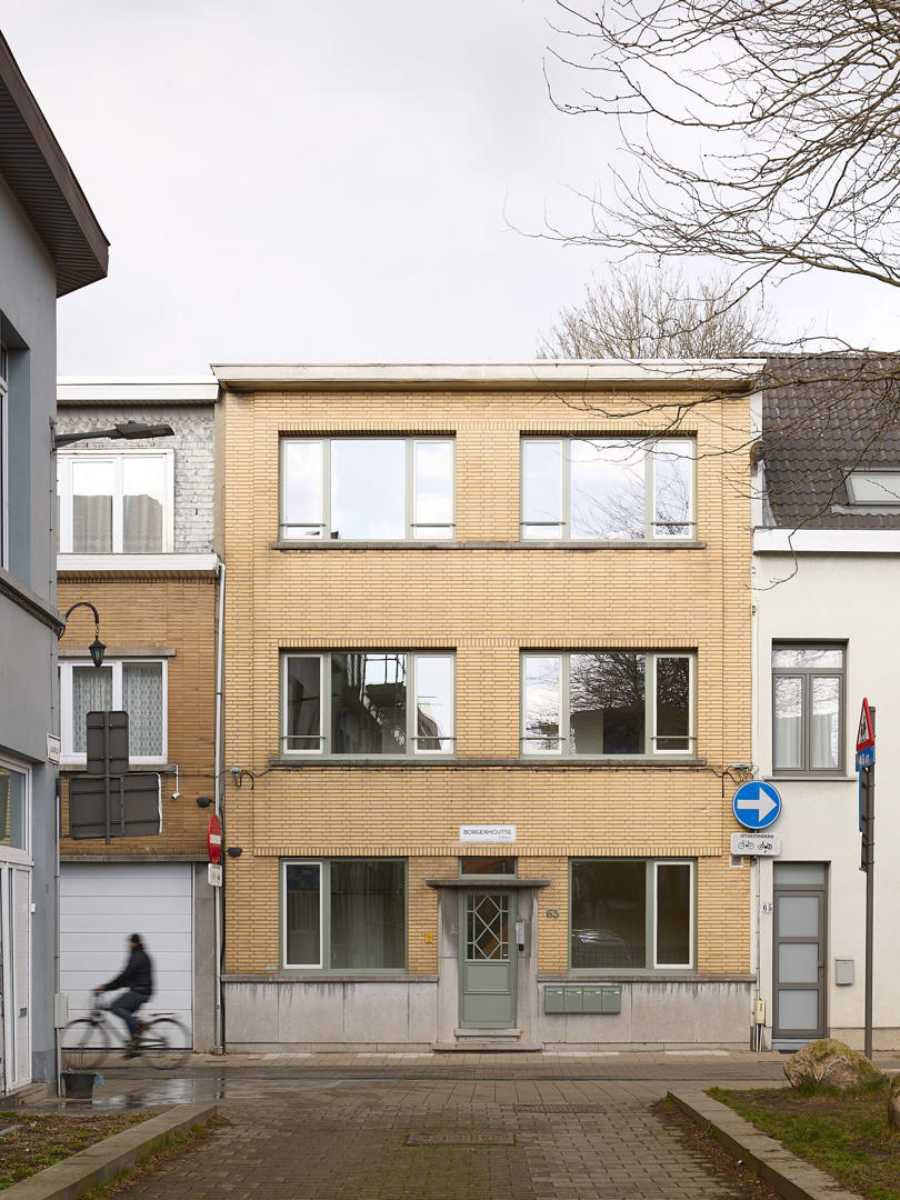 Het project betreft de herbestemming van een woongebouw uit 1950 in Borgerhout tot een flexibel noodwoningenproject. De renovatie kadert binnen een oproep van de Vlaamse overheid om snel kwalitatieve tijdelijke huisvesting te realiseren voor mensen die onverwacht hun woning moeten verlaten. De bestaande indeling met zes kleine studio’s voldeed niet langer aan de huidige vraag, waarin vaak grotere gezinnen op zoek zijn naar huisvesting. Binnen de bestaande gebouwschil werd daarom een nieuwe woonconfiguratie ontwikkeld met twee appartementen en twee studio’s. Dankzij twee nieuwe interne trappen kunnen de woonunits tijdelijk gekoppeld worden tot grotere duplexwoningen, waardoor verschillende gezinssamenstellingen kunnen worden opgevangen.