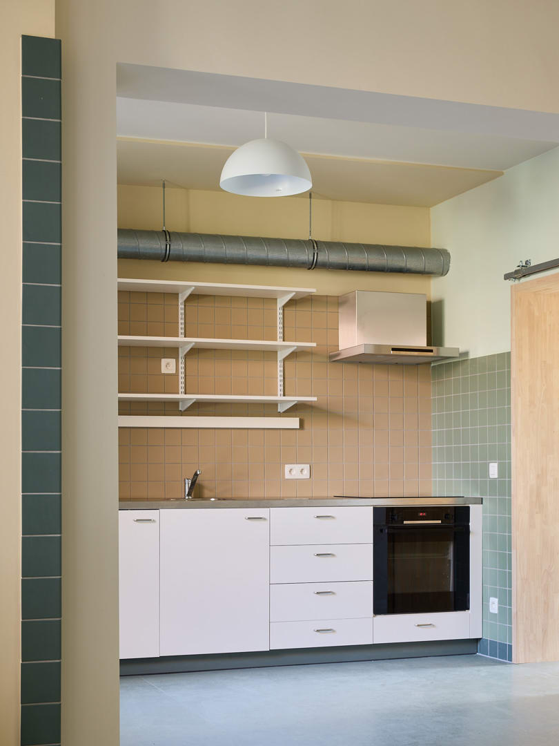 Hoewel het om tijdelijke huisvesting gaat, staat woonkwaliteit centraal. De nieuwe configuratie biedt grotere en beter bruikbare woonruimtes voor gezinnen, met voldoende slaapkamers en een gedeelde leefruimte. De flexibele koppelmogelijkheden maken het mogelijk om woningen af te stemmen op de gezinssituatie. De wooneenheden combineren een robuuste afwerking met een specifiek kleurenschema. De kleuren verwijzen naar de verschillende bouwkundige ingrepen, maar zorgen tegelijk voor herkenbaarheid en oriƫntatie. In een woning die bewoners meestal niet zelf kunnen personaliseren, vormt dit een eenvoudige vorm van expressie en ruimtelijke identiteit.