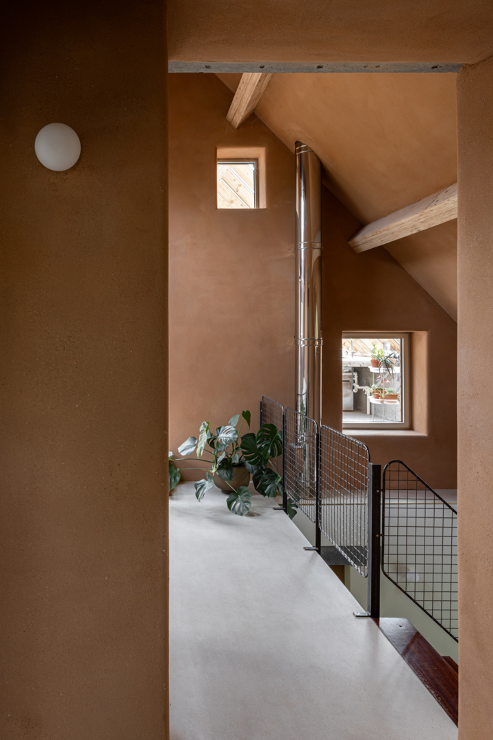 Door de bestaande toestand kritisch te analyseren wordt er op een duurzame manier nagedacht over de bestaande beschikbare ruimtes. Dankzij een doordachte reorganisatie kan het verwarmd volume kleiner worden gemaakt en kan er worden ingebreid in plaats van uit te breiden. Er wordt plaats gemaakt voor een wintertuin in het dakvolume. De massieve stamplemen muur, die grenst aan de wintertuin zorgt voor inertie en een warmtebuffer. Daarnaast komt er ook een leemkachel als centrale verwarming ter vervanging van de oude mazoutketel. De mogelijkheid tot levenlangswonen draagt ook bij tot de flexibiliteit en duurzaamheid van de woning.