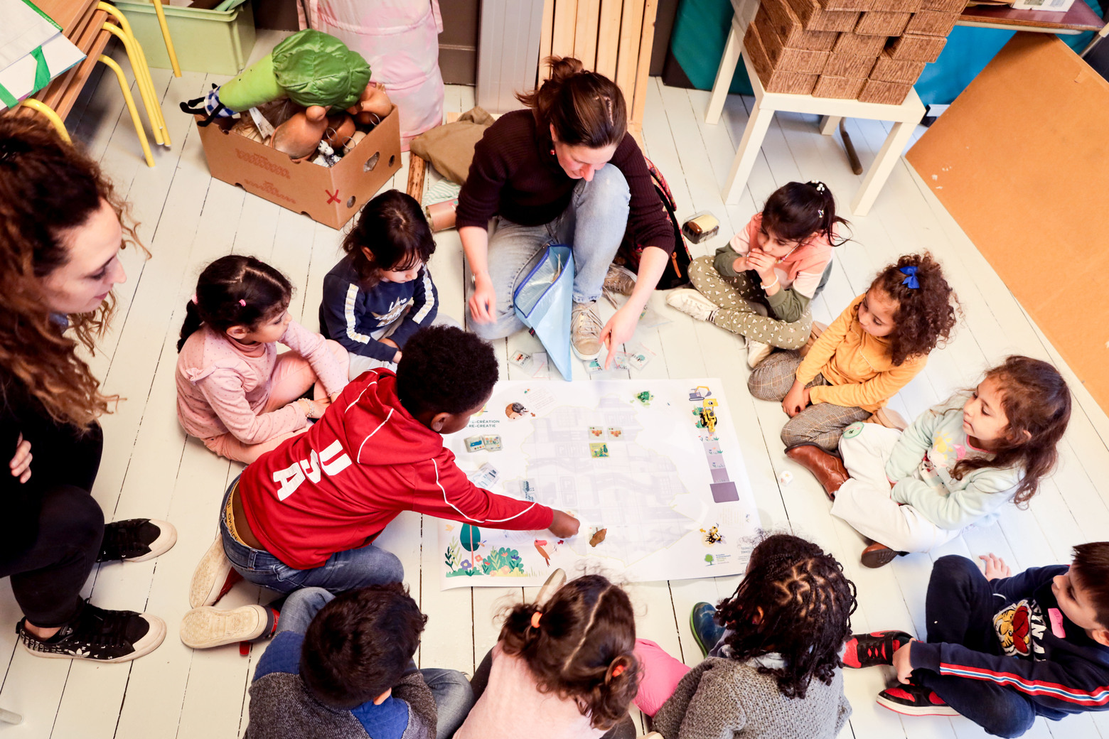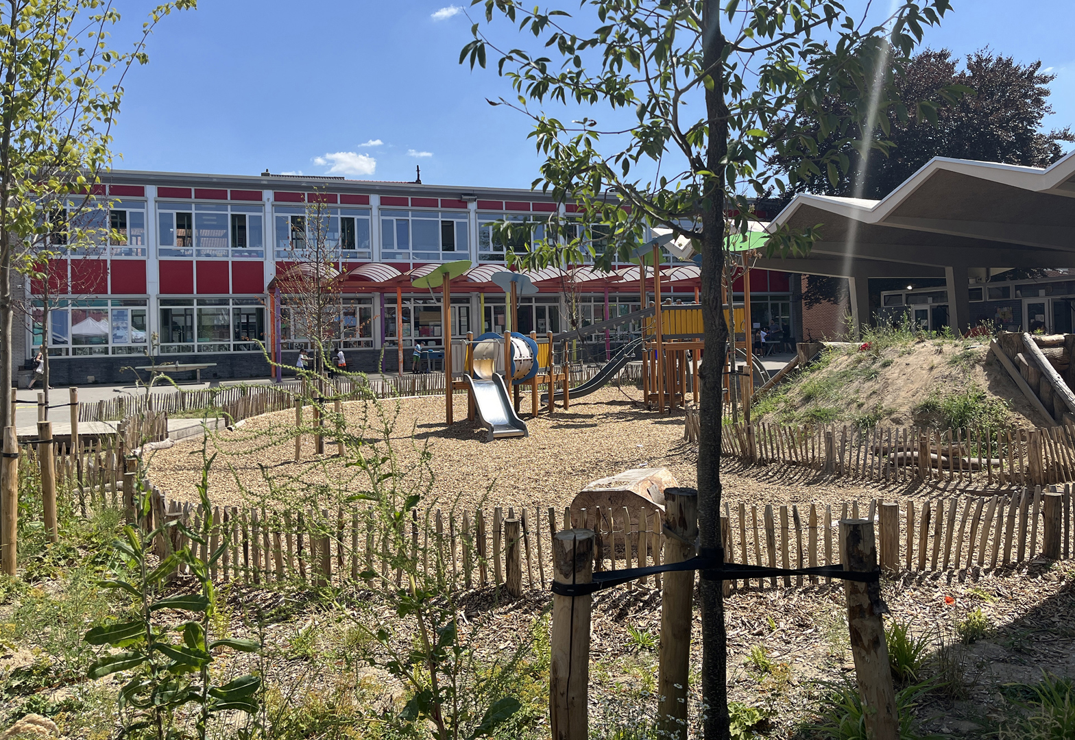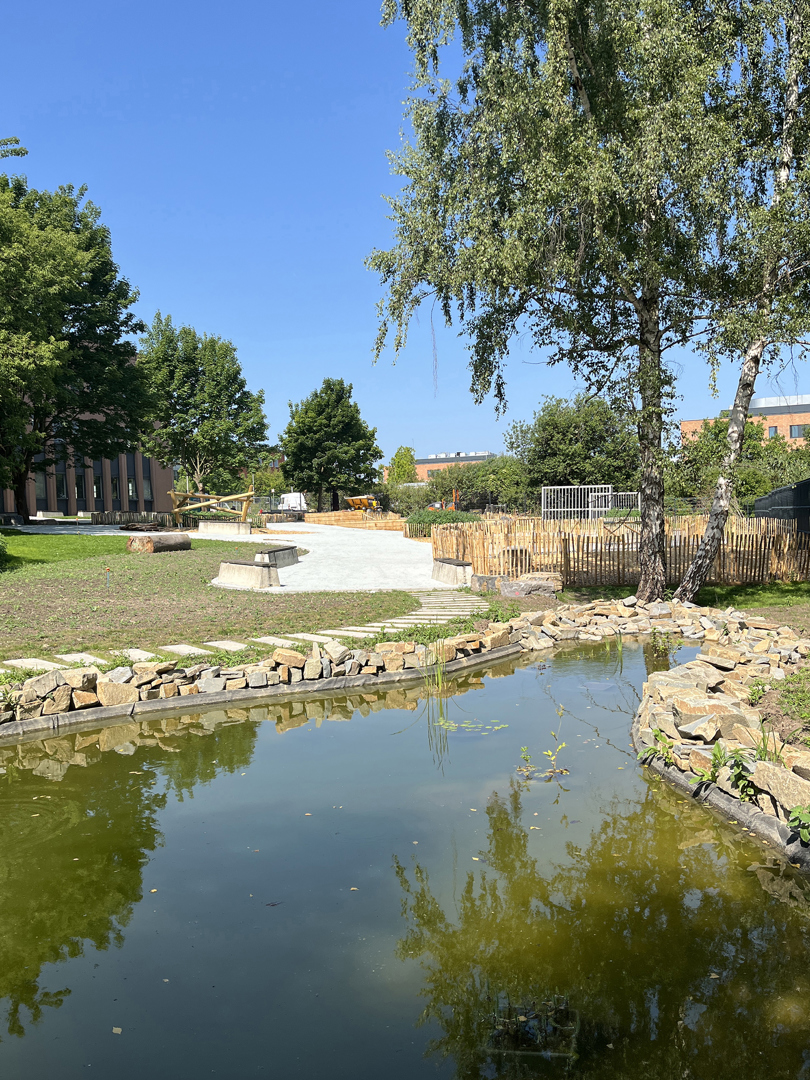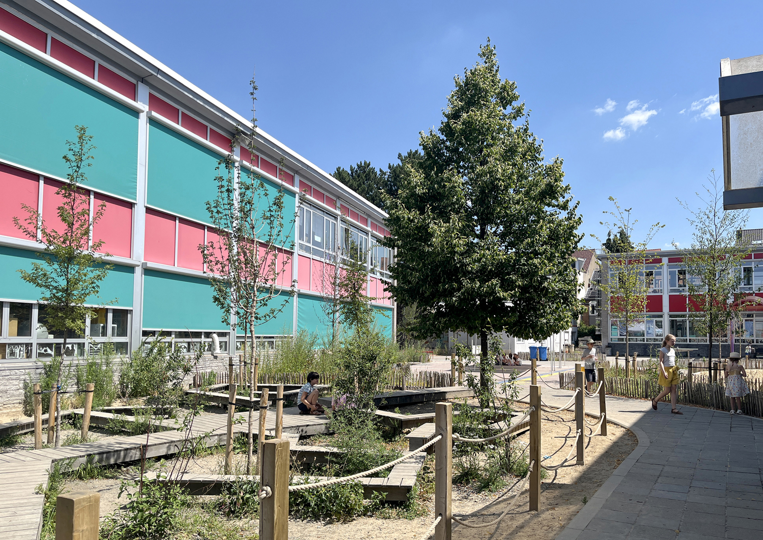 [Aangestuurd door Brussel-Leefmilieu, heeft de Operatie Ré-création als doel de ambitieuze transformatie van 19 Brusselse schoolpleinen door middel van hun beplanting en voorbeeldige ontharding, om zo nieuwe pedagogische praktijken in relatie met de natuur te laten ontstaan, bij te dragen aan de ontwikkeling van het kind en de klimaatweerbaarheid van de pleinen te versterken. Naar aanleiding van de projectoproep aan scholen in 2021 hebben de landschapsarchitecten van ÁRTER de helft van deze schoolpleinen ontworpen, van schets tot werfopvolging en opleveringen, door middel van talrijke participatieve co-ontwerpateliers en co-bouwplaatsen met de leerlingen, de pedagogische teams en het administratieve/technische personeel.]