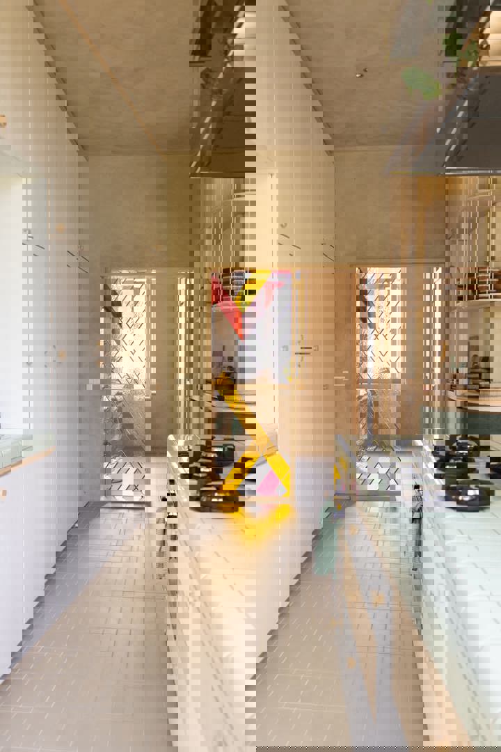In dit project renoveert Karibu het interieur van de gelijkvloers van een ééngezinswoning. Het ontwerp focust op efficiënt ruimtegebruik, natuurlijke materialen en lichtinval om met beperkte inspanningen een zo groot mogelijke impact te hebben op de woonkwaliteit in de woning. De architectuur benadrukt de bestaande kwaliteit door de bewoner met de circulatie langs belangrijke elementen te geleiden en door invallend zonlicht te benadrukken met kleurrijk glas in lood.