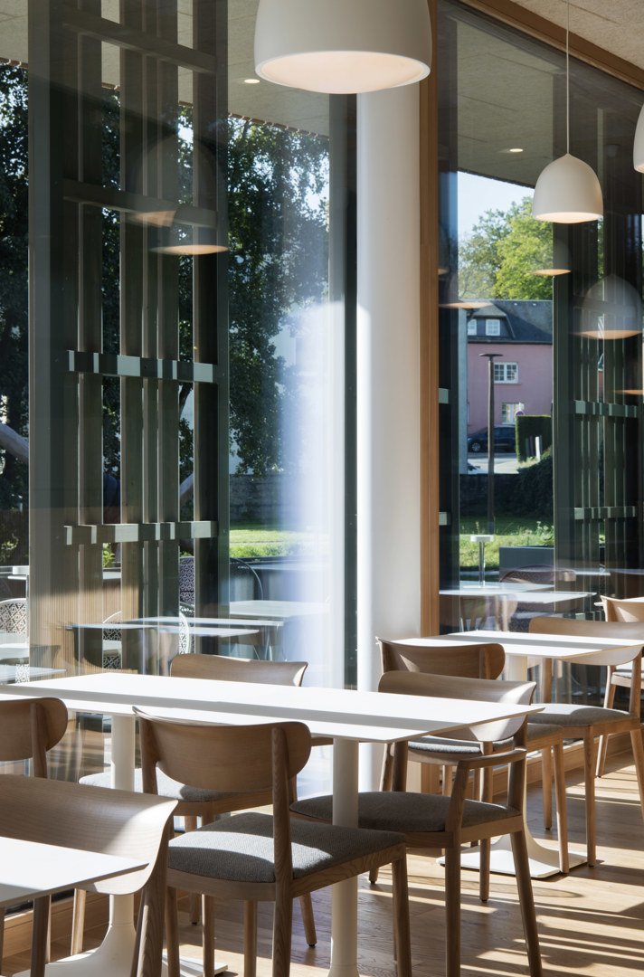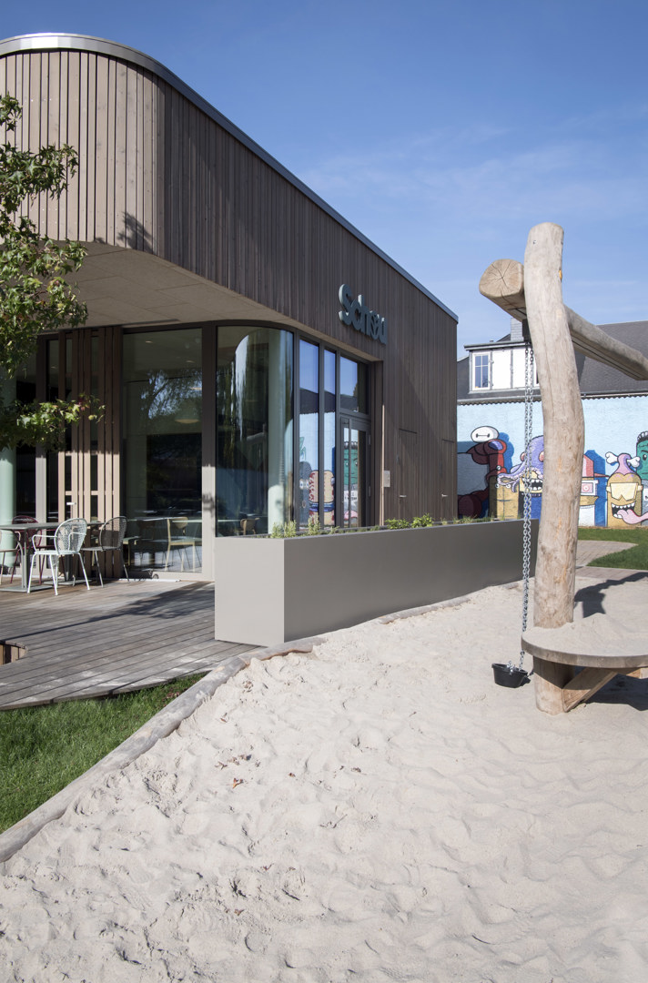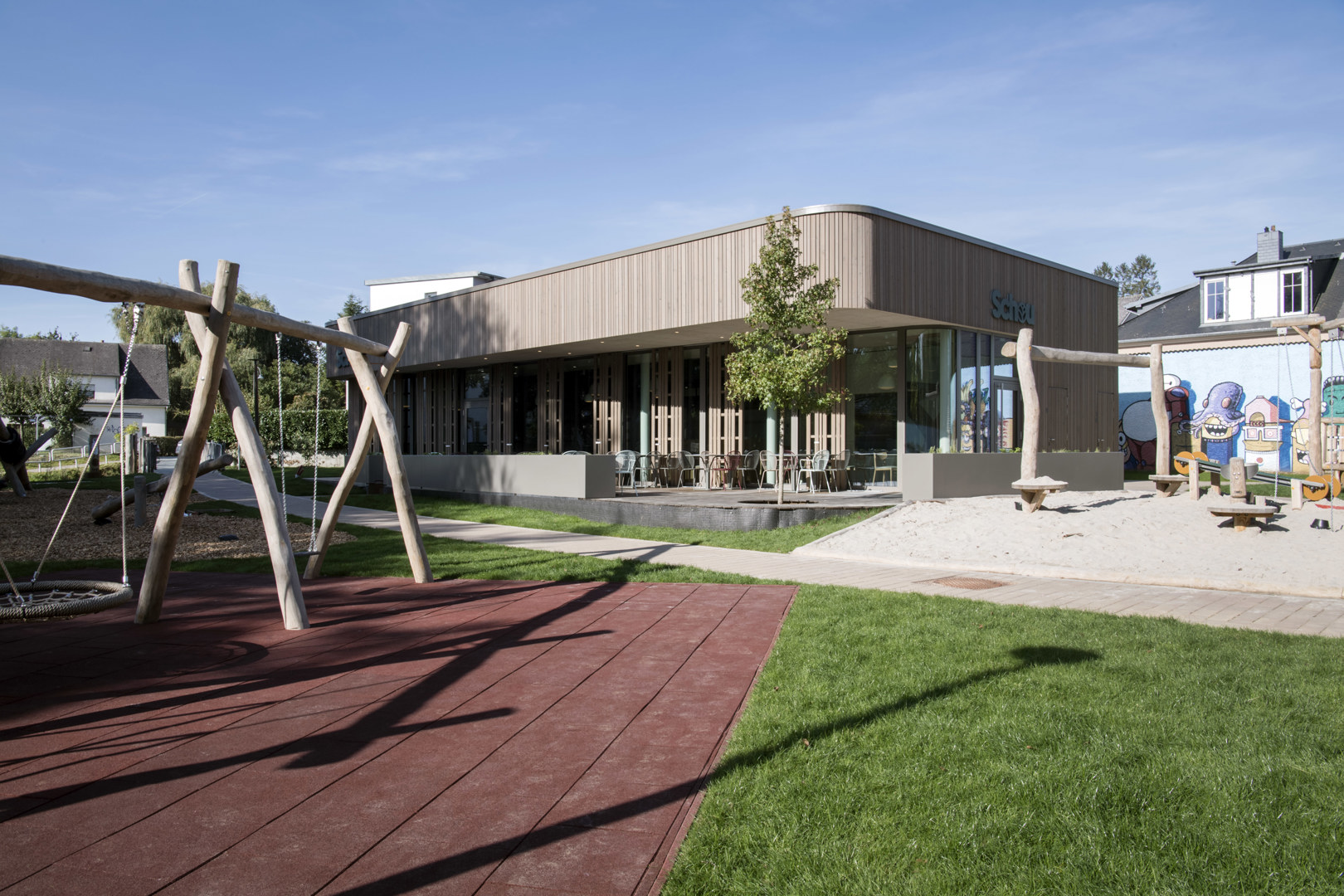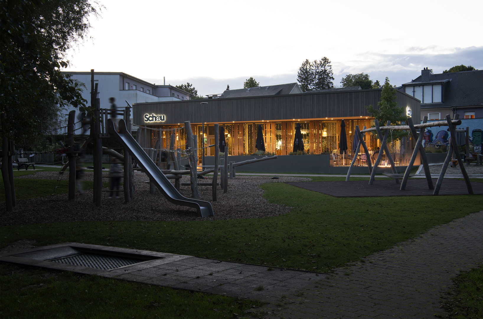 Het paviljoen-restaurant is gelegen in het hart van het gemeentelijk park van Schouweiler. Ontworpen als ontmoetingsplaats voor alle generaties, biedt het de mogelijkheid om te genieten van een moment van ontspanning, plezier en gezelligheid in een ontspannen sfeer. Tegelijkertijd versterkt het het centrum van Schouweiler als een nieuw onderdeel van de infrastructuur. Het ontwerp van het paviljoen past perfect in het concept van het park. Het maakt ten volle gebruik van de nabijheid van het nieuwe netwerk van wandelpaden en de uitgebreide speeltuin. Zo wordt het paviljoen een levend ankerpunt dat ontmoetingen bevordert en het verblijf in het park duurzaam verrijkt voor gezinnen en alle bezoekers. De architectuur dynamiseert de openbare ruimte en bevordert het sociale leven.