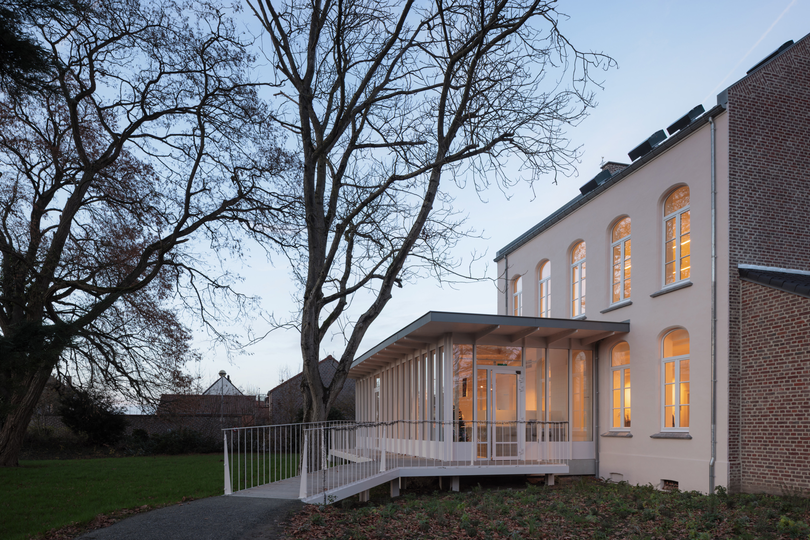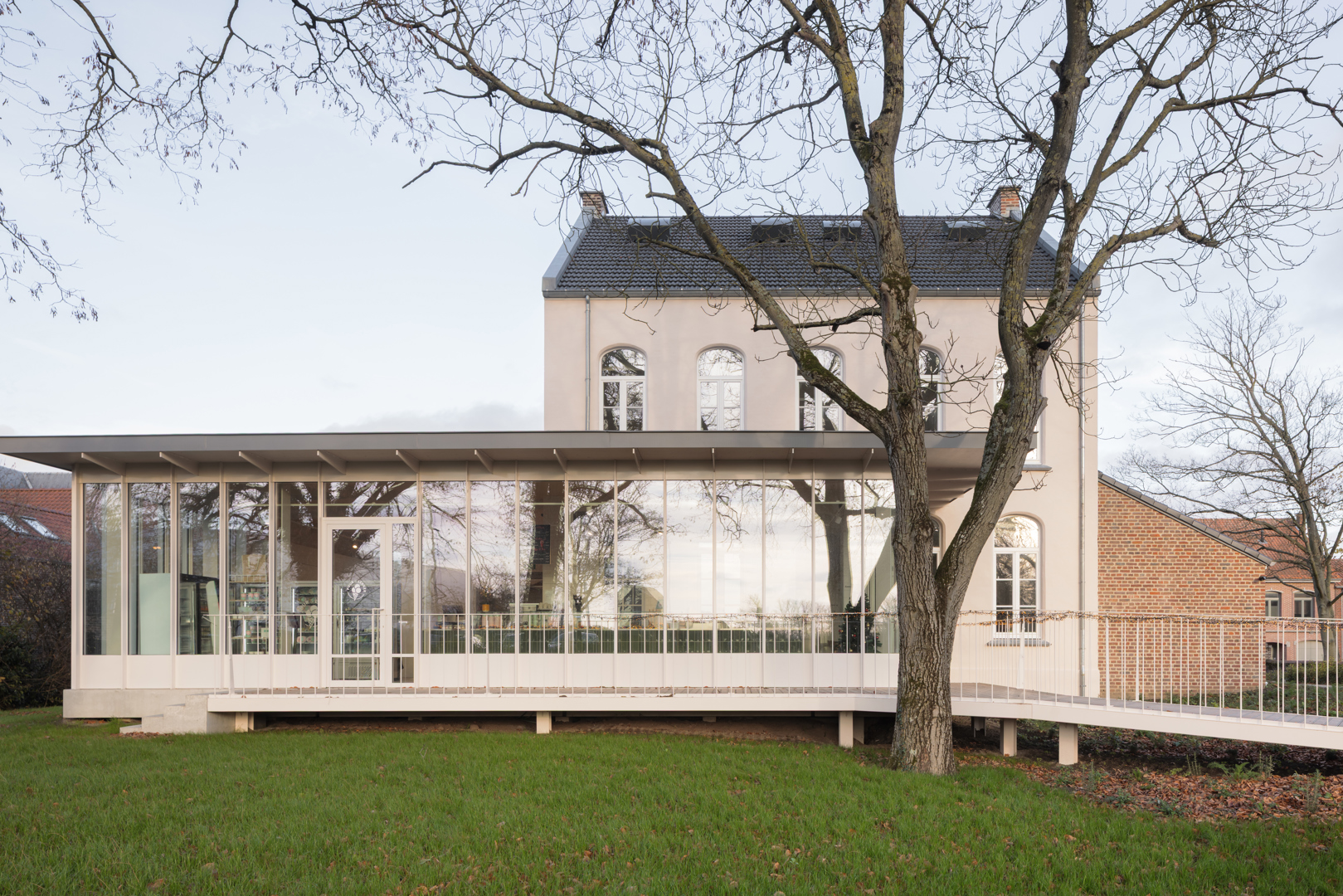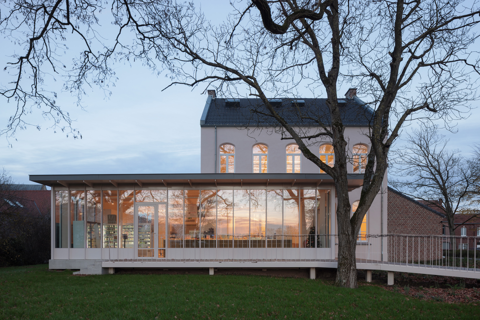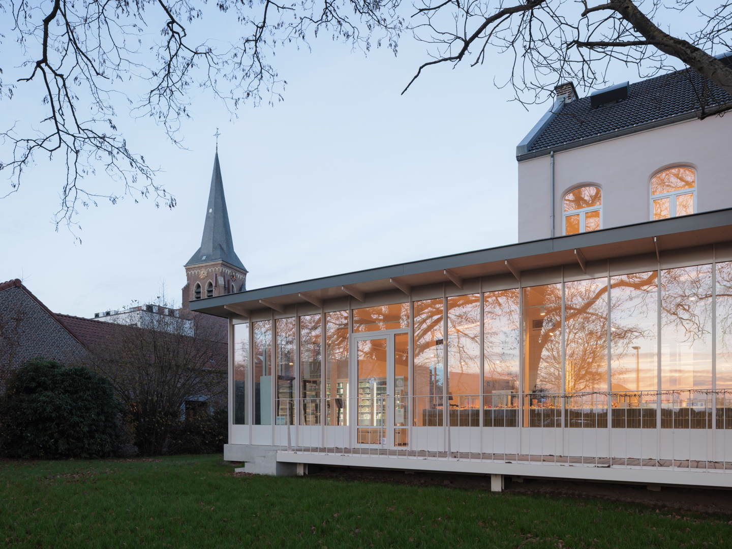 Het project is duurzaam omdat het een herbestemming van een bestaand gebouw met erfgoedwaarde mogelijk maakt. De toevoeging is een compacte combinatie van een staalstructuur, een houten dak en een glazen gevel die het hele gebouw revitaliseert. Daarenboven heeft het een relevante sociaal-maatschappelijke bestemming gekregen die levendigheid in een kleine dorpskern brengt. Bovendien wordt de tuin geconsolideerd en gevaloriseerd als toegankelijk groengebied in de context van de semi-openbare bestemming.