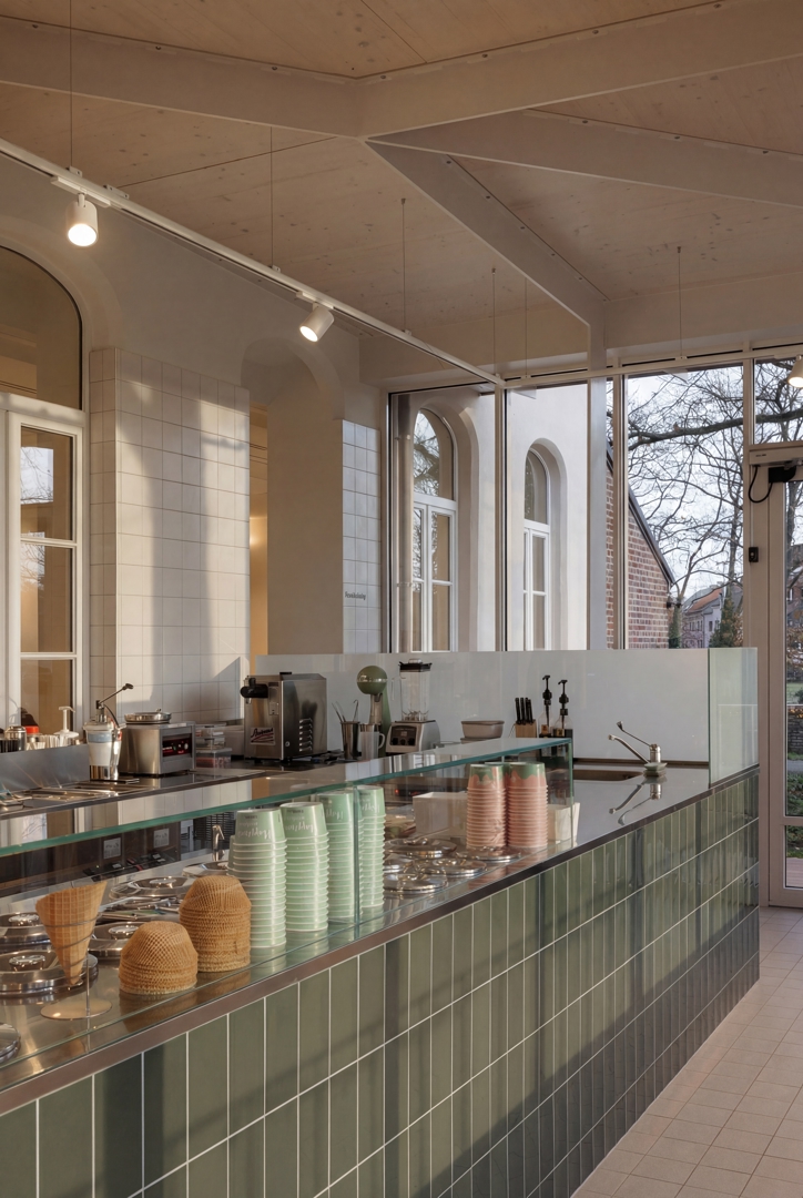 De ontwerpopdracht betrof de herbestemming van de voormalige pastorij van Beverst (Bilzen-Hoeselt). De pastorij dateert van 1862 en was al jaren in onbruik. Het nieuwe programma dat werd ingepast is een maatschappelijk programma van gemeenschapsruimtes en een ijssalon. De tuin werd omgevormd tot een toegankelijk park. De ijssalon wordt uitgebaat door Heide Atelier, een non-profit organisatie die mensen met verworven hersenletsel en autisme ondersteunt. Deze ijssalon is hun opleidingscentrum.