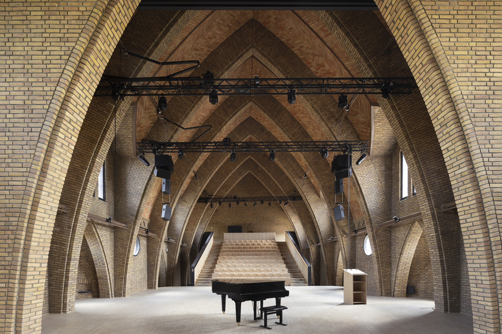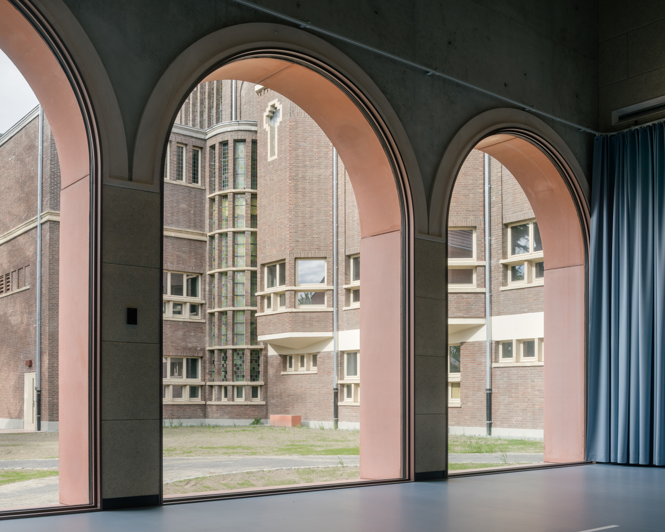 In verschillende ontwerpsessies met de veelheid aan gebruikers zochten we naar de gemene delers in het ontwerp. Door de ligging in een dichtbebouwde woonwijk was vooral geluidsoverlast een aandachtspunt. Dikke betonnen wanden en innovatieve verende daken zorgen voor voldoende akoestische demping. Dansers brachten het bestaande Broosgebouw in eigenfrequentie, wat specifieke oplossingen vergde in de historische kapel. De foyer werd de centrale ruimte waar alle functies hun verlengstuk in krijgen en waar ontmoetingen en kruisbestuiving plaatsvinden. Om deze plek nog meer in de verf te zetten, kruisen hier verschillende langse en dwarse zichtlijnen. Tenslotte werd de architectuur van de nieuwbouw helemaal afgestemd op de interbellumarchitectuur van Victor Broos, in een hedendaags ontwe