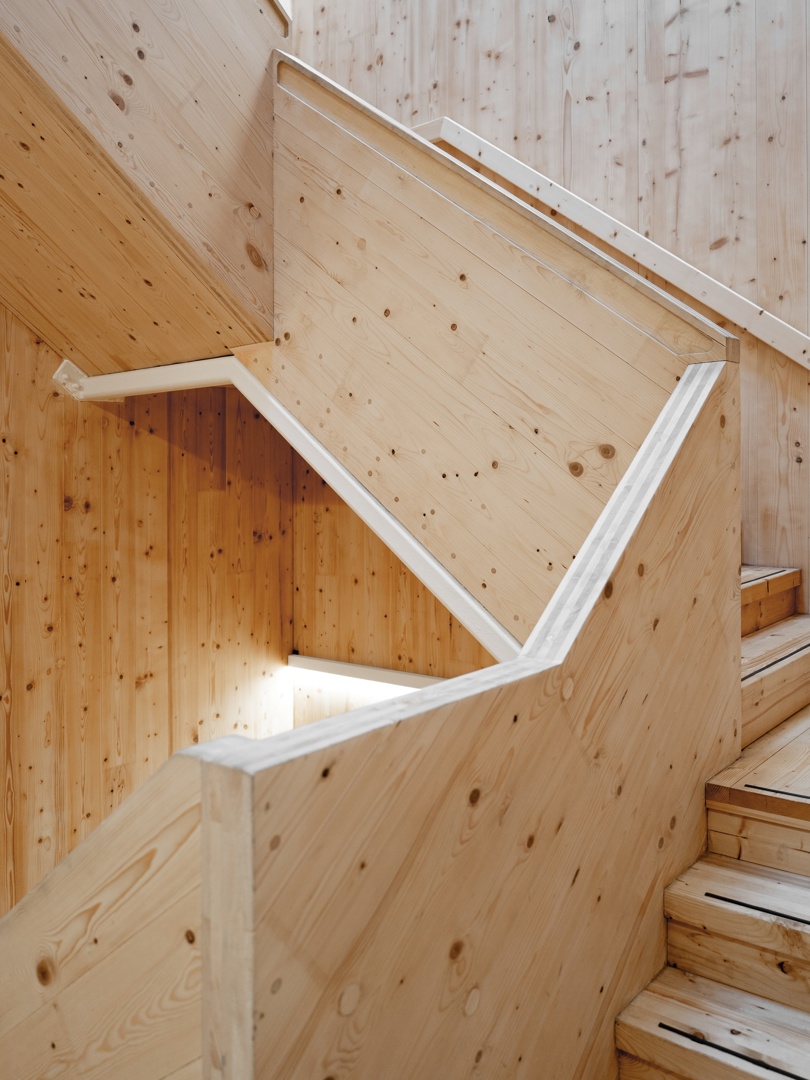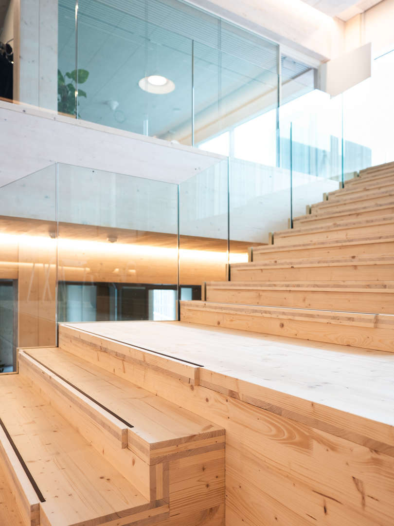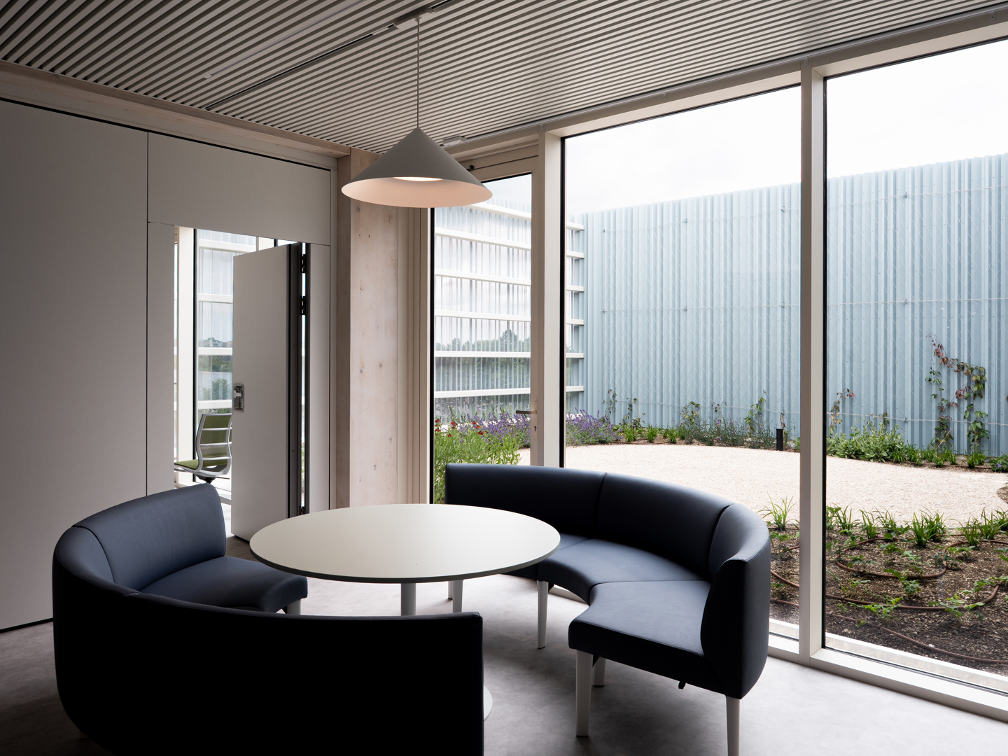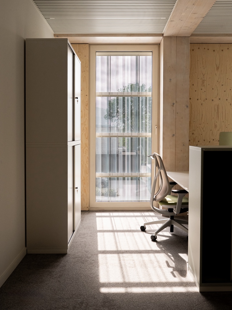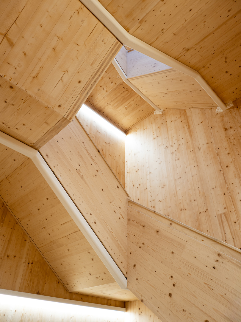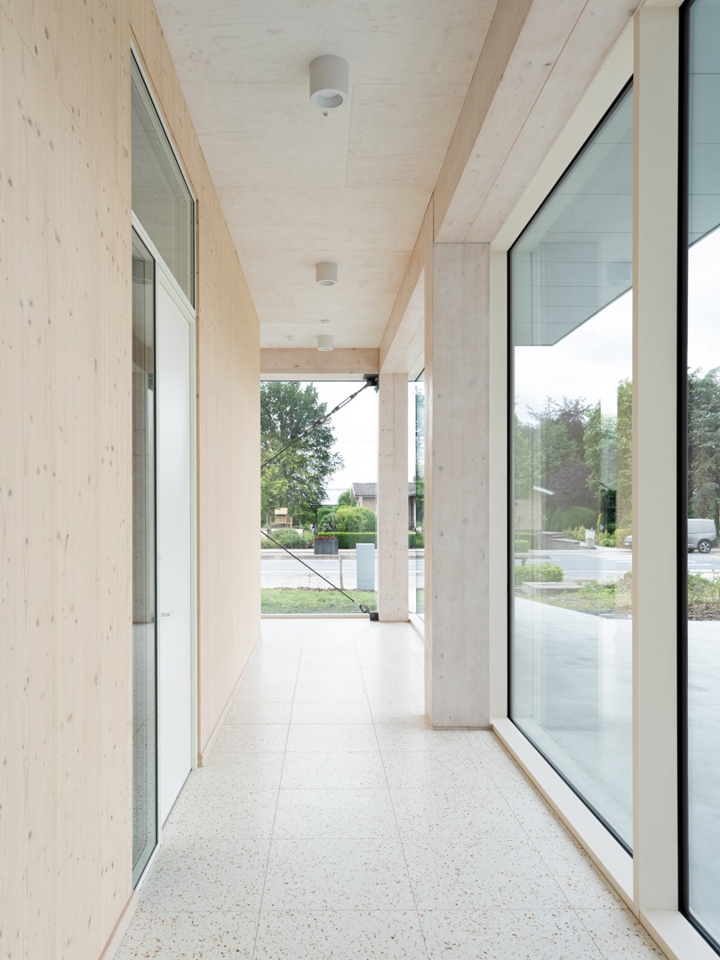 Duurzaamheid vormt de kern van het project. Waar publieke gebouwen vaak terugvallen op beton, kozen we hier resoluut voor houtmassiefbouw (CLT) als structurele én esthetische drager. Deze hernieuwbare structuur combineert lage CO₂-uitstoot met snelle prefabricatie, sterke prestaties en een warme, leesbare architectuur die rust en vertrouwen uitstraalt. De duurzaamheid ligt ook in de lange levensduur van het gebouw. Een modulair 5x5-metergrid en een aanpasbare indeling maken toekomstige herconfiguraties mogelijk zonder structurele ingrepen. Omkeerbare verbindingen en een demonteerbare opbouw bevorderen hergebruik van materialen. Zo ontstaat geen statisch gebouw, maar een flexibele en circulaire structuur die kan meebewegen met veranderende noden en generaties lang relevant blijft.