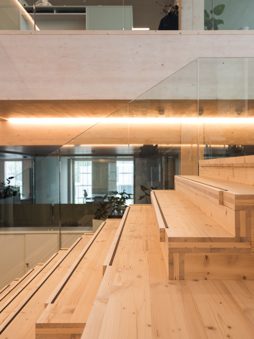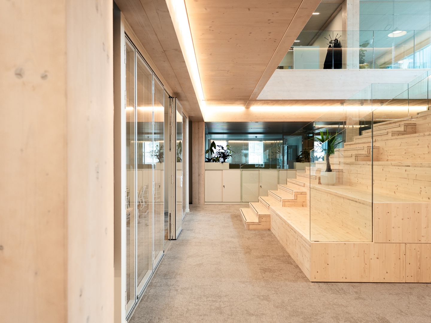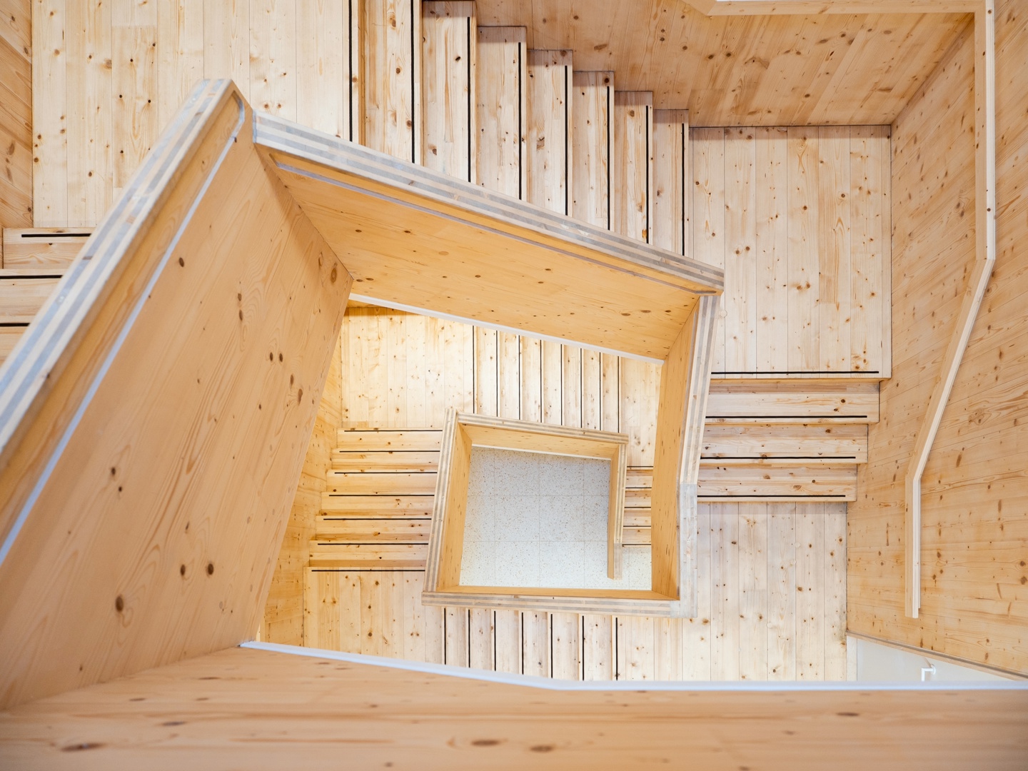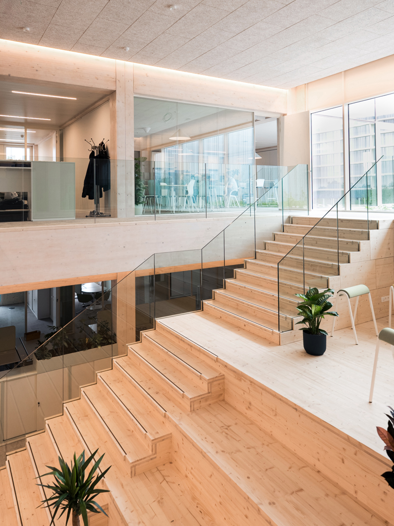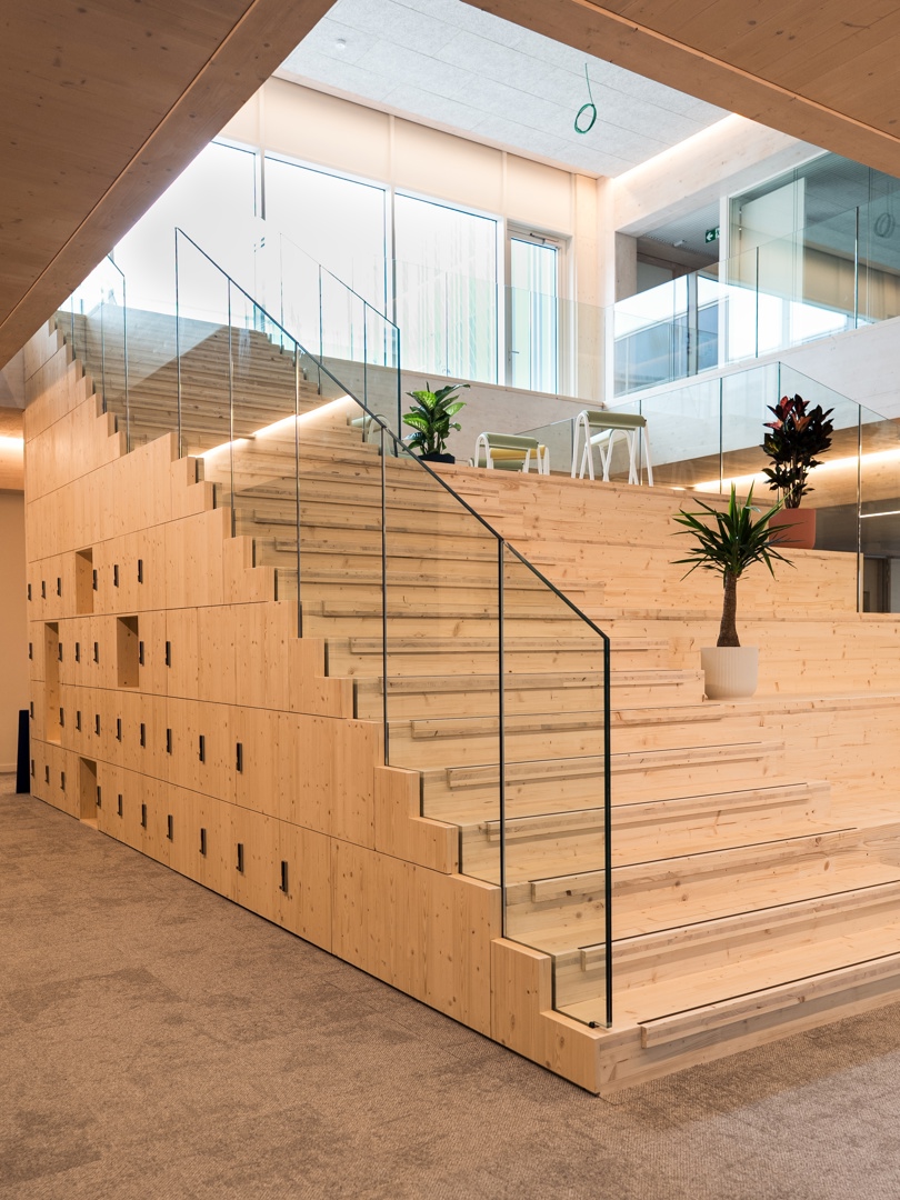 Duurzaamheid vormt de kern van het project. Waar publieke gebouwen vaak terugvallen op beton, kozen we hier resoluut voor houtmassiefbouw (CLT) als structurele én esthetische drager. Deze hernieuwbare structuur combineert lage CO₂-uitstoot met snelle prefabricatie, sterke prestaties en een warme, leesbare architectuur die rust en vertrouwen uitstraalt. De duurzaamheid ligt ook in de lange levensduur van het gebouw. Een modulair 5x5-metergrid en een aanpasbare indeling maken toekomstige herconfiguraties mogelijk zonder structurele ingrepen. Omkeerbare verbindingen en een demonteerbare opbouw bevorderen hergebruik van materialen. Zo ontstaat geen statisch gebouw, maar een flexibele en circulaire structuur die kan meebewegen met veranderende noden en generaties lang relevant blijft.