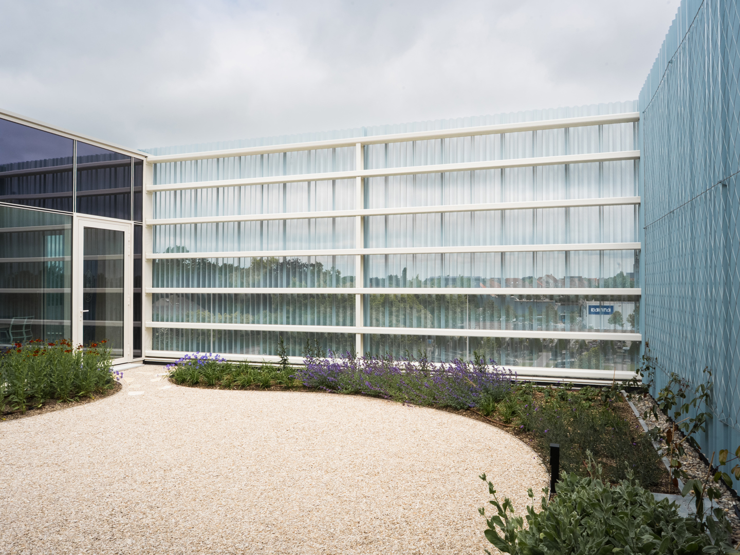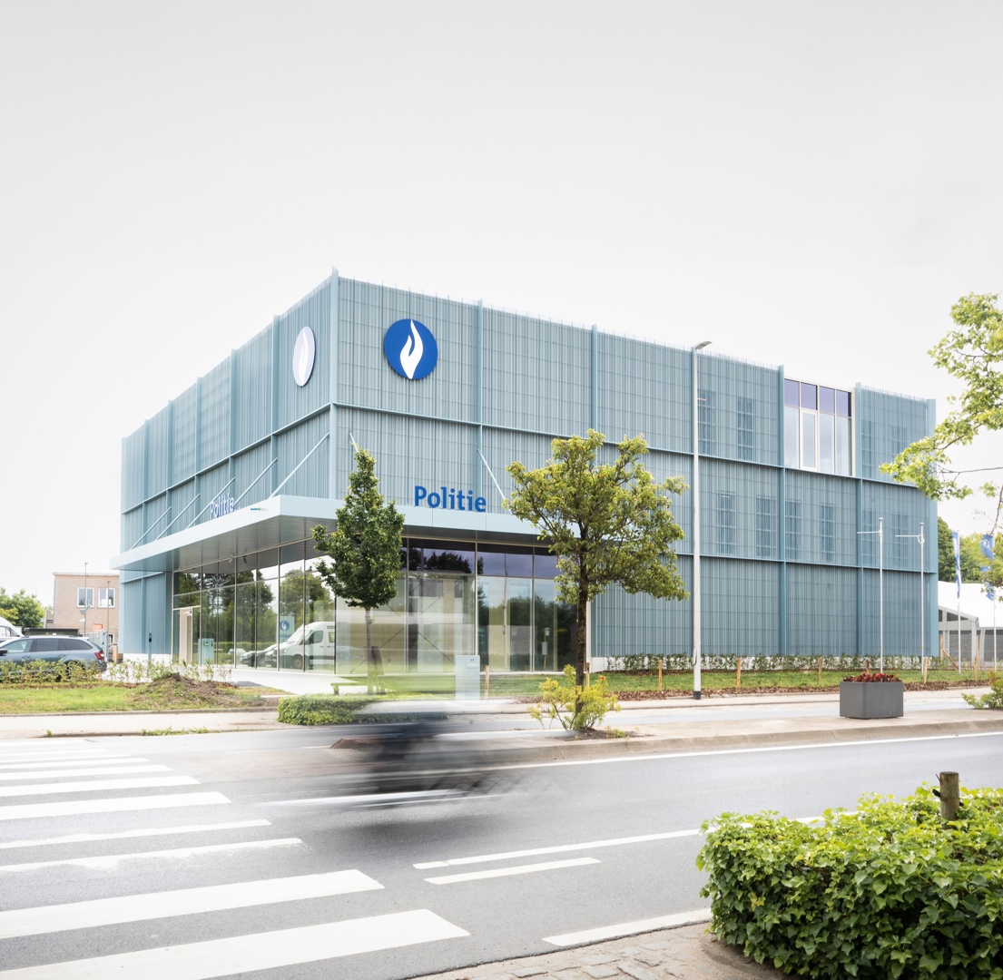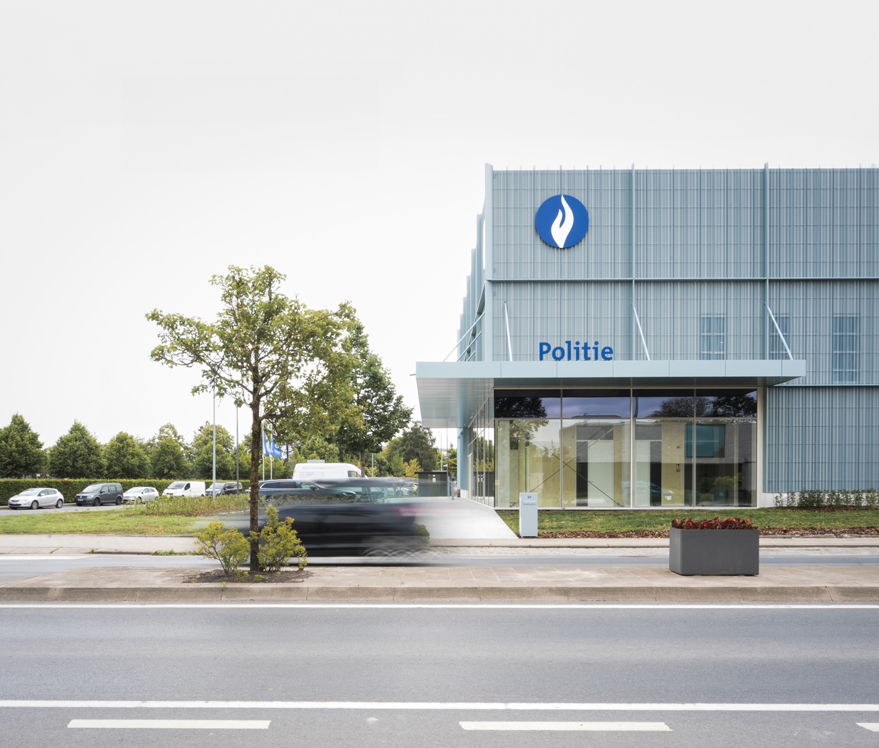 De grootste uitdaging lag in het verzoenen van veiligheid, flexibiliteit en publieke toegankelijkheid. Als publiek gebouw moet het commissariaat zowel bescherming bieden als open dienstverlening uitstralen. Het ontwerp vertrekt daarom van een helder constructief raster dat toekomstige herindelingen mogelijk maakt zonder zware structurele ingrepen, terwijl compartimentering en brandveiligheid van bij de start geïntegreerd werden. Tegelijk werd gezocht naar een evenwicht tussen openheid en discretie. In plaats van een gesloten gebouw of volledige transparantie, werd gekozen voor een gefilterde gevel in geperforeerde aluminiumplaten die beweging subtiel zichtbaar maakt en tegelijk privacy garandeert.