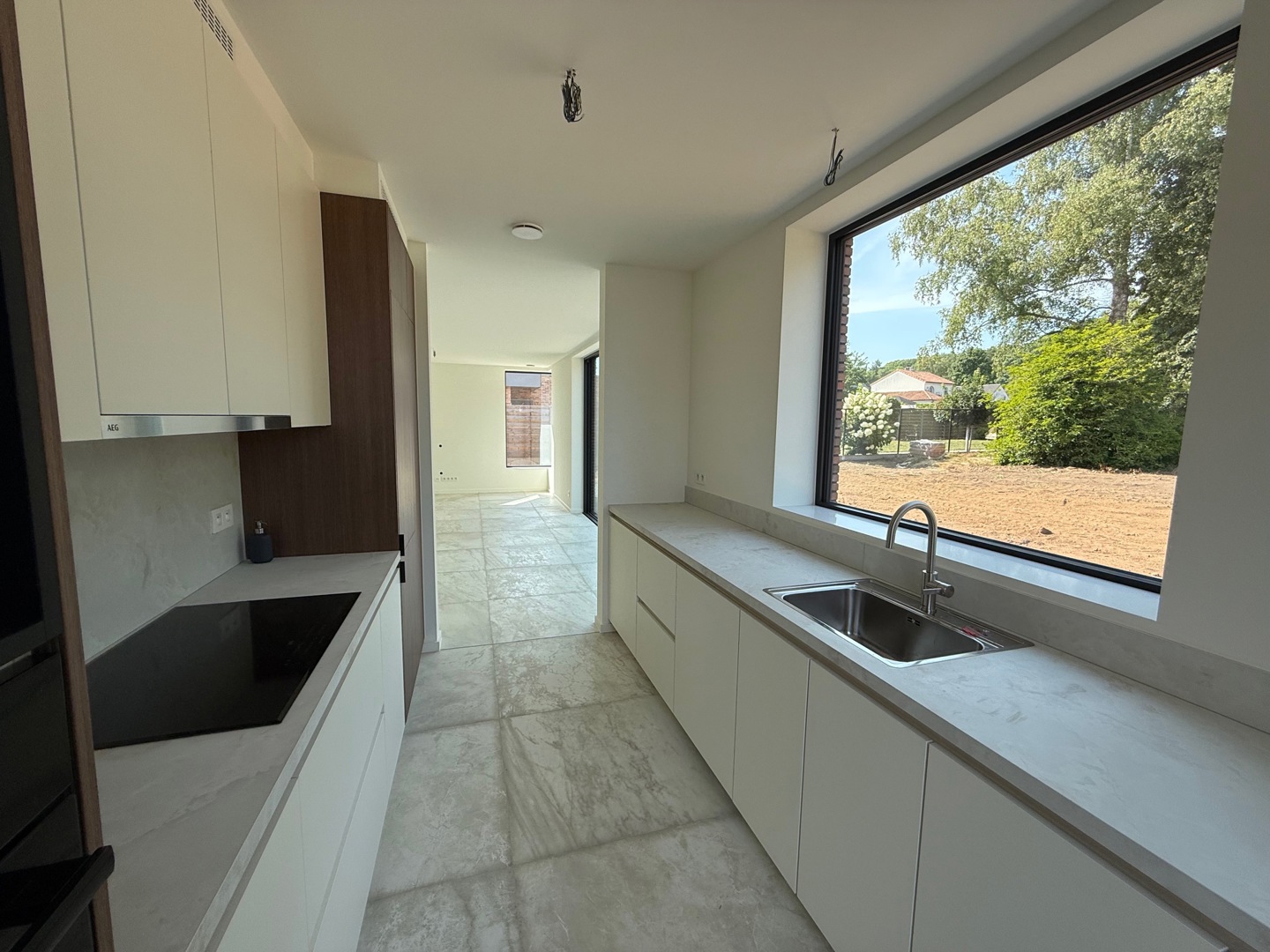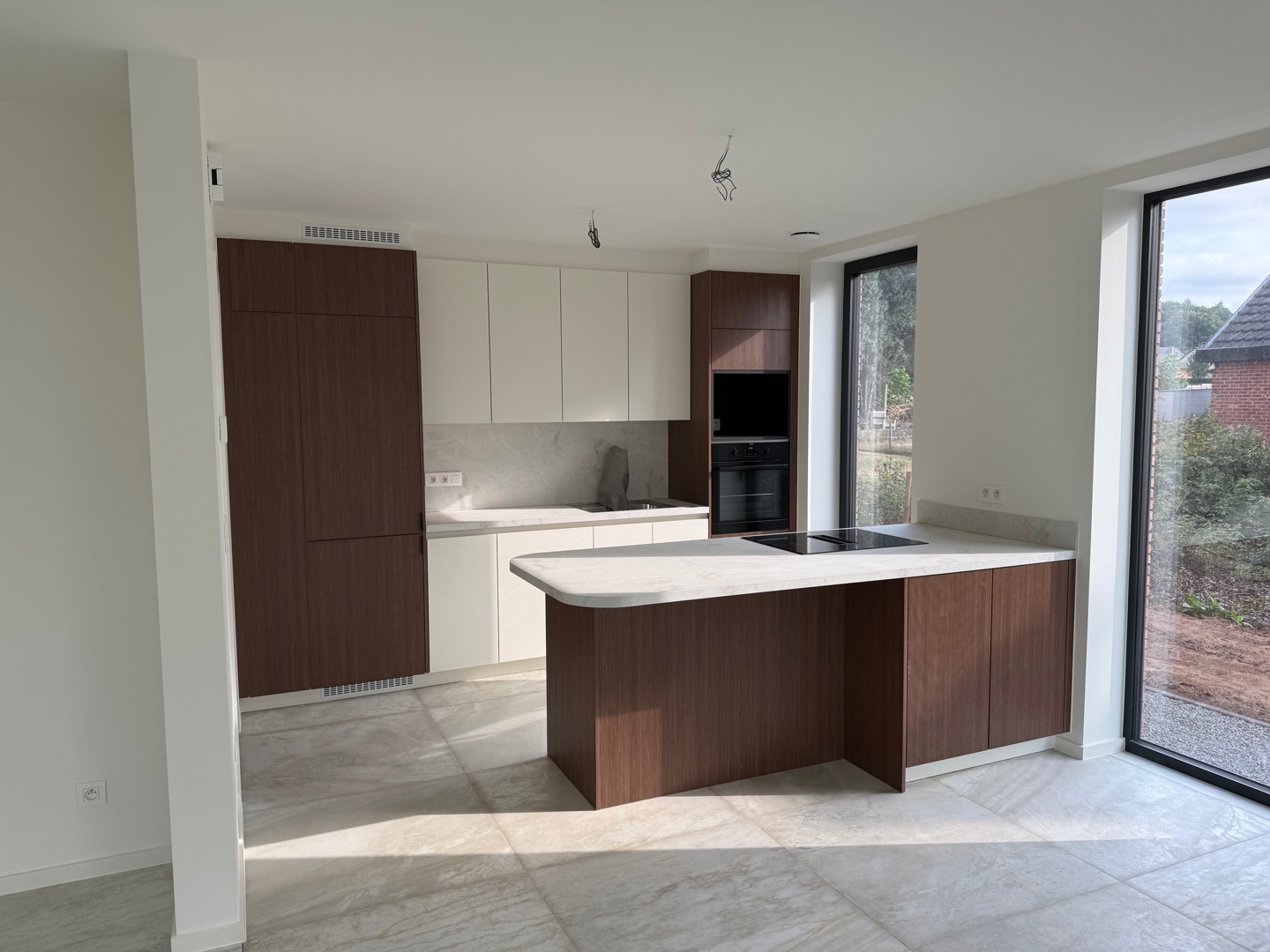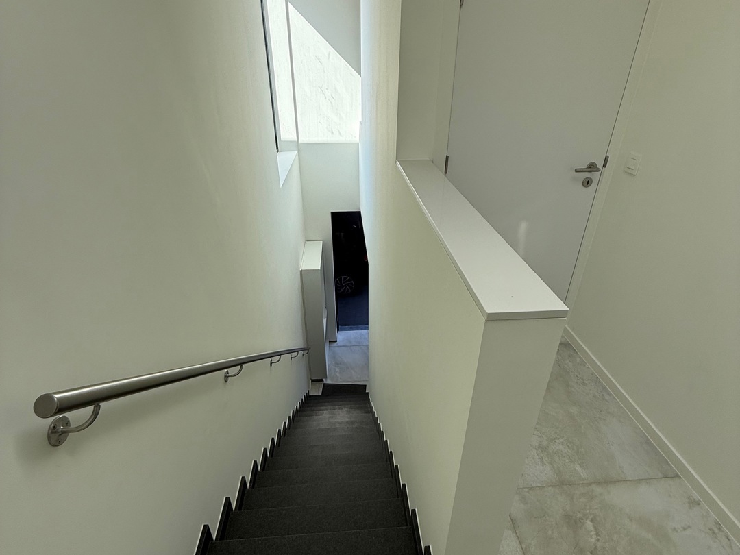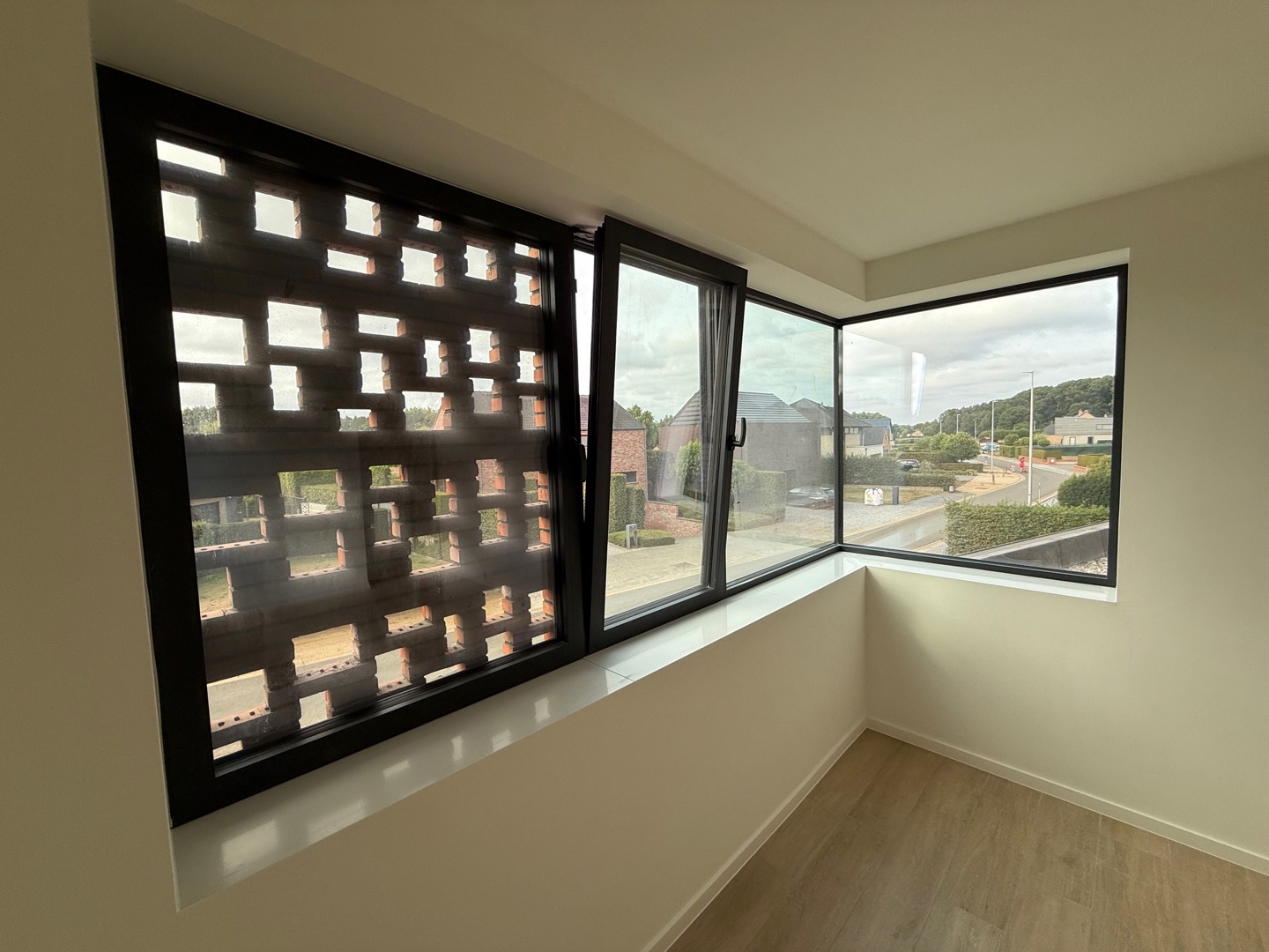 De grootste uitdaging was de beperkte perceelbreedte, die een traditionele dubbelwoonst onmogelijk maakt. De gekozen 'back-to-back' schakeling lost dit op, maar vraagt om een creatieve regie van licht en privacy: - Lichtinval in de diepte: De noordgerichte achterste woning baadt toch in het zonlicht dankzij een royale vide met een zuidgericht bovenraam. Hierdoor dringt direct daglicht diep door tot in de leefruimte. - Gewaarborgde privacy: Voor de voorste woning wordt de intimiteit gewaarborgd door een doordachte voortuin met hagen, een strategisch geplaatst tuinmuurtje en 2 platanen. - Ruimtelijke winst: Het perceel werd getransformeerd tot een kwalitatieve woonomgeving met een onversnipperde, grote achtertuin. Hoekramen met glashoeken vervagen de grens tussen binnen en buiten.