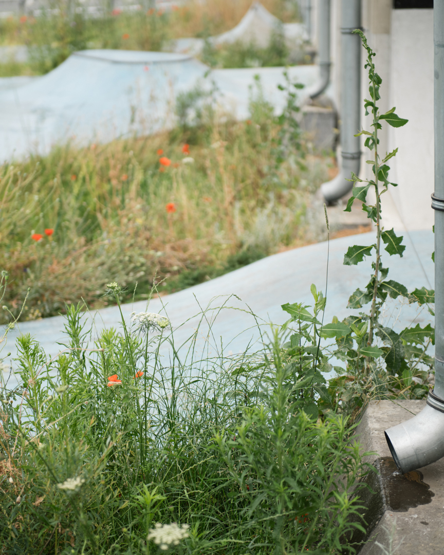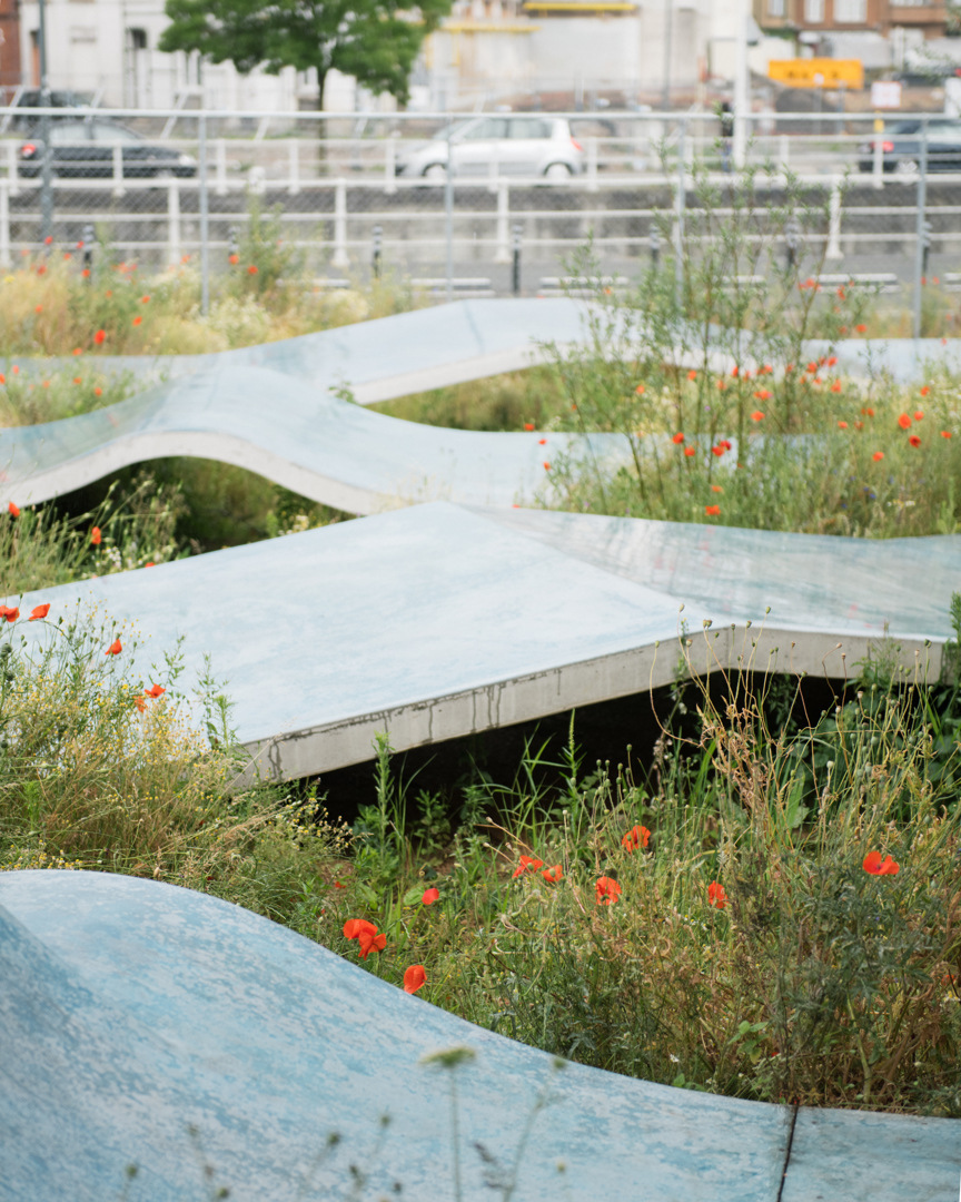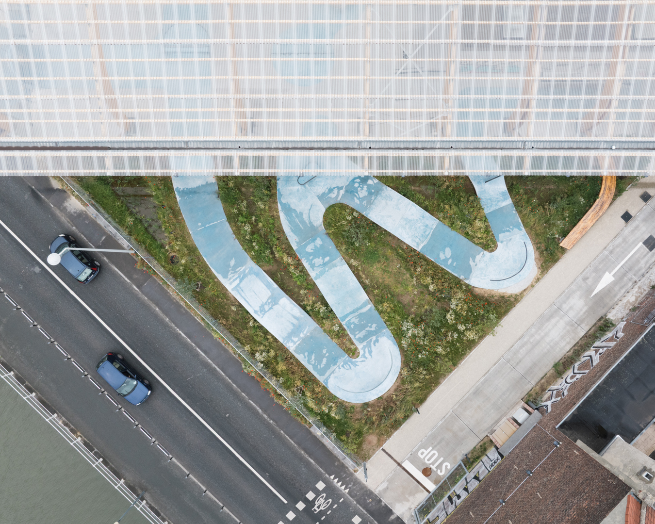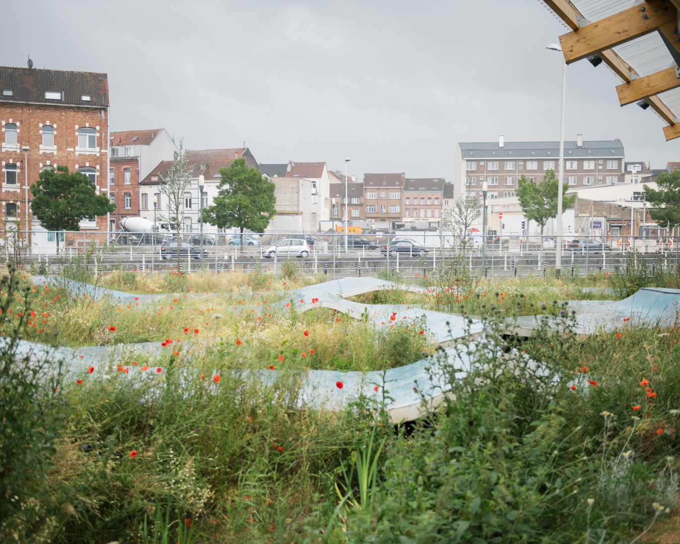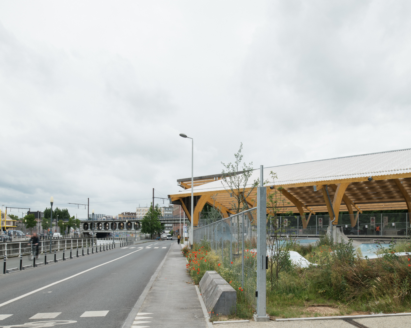 Het ontwerpproject van deze nieuwe openbare ruimte draagt bij aan de hydrologische functie met als doel de ontkoppeling van het afstromende water van het zuidelijke dak van de hal om dit te temporiseren, te infiltreren en te evapotranspireren. Naast de gunstige hydrologische impact op de overbelasting van de gecombineerde riolering, zal deze inrichting een zeer interessante landschappelijke en milieukwaliteit aan de wijk toevoegen. De inrichting van deze toekomstige openbare ruimte biedt de kans om niet alleen een voorziening te creƫren die past binnen de skatesport op regionale schaal, maar ook binnen de complementariteit van natuurlijke locaties en die een echt koeleiland vormt voor de wijk.