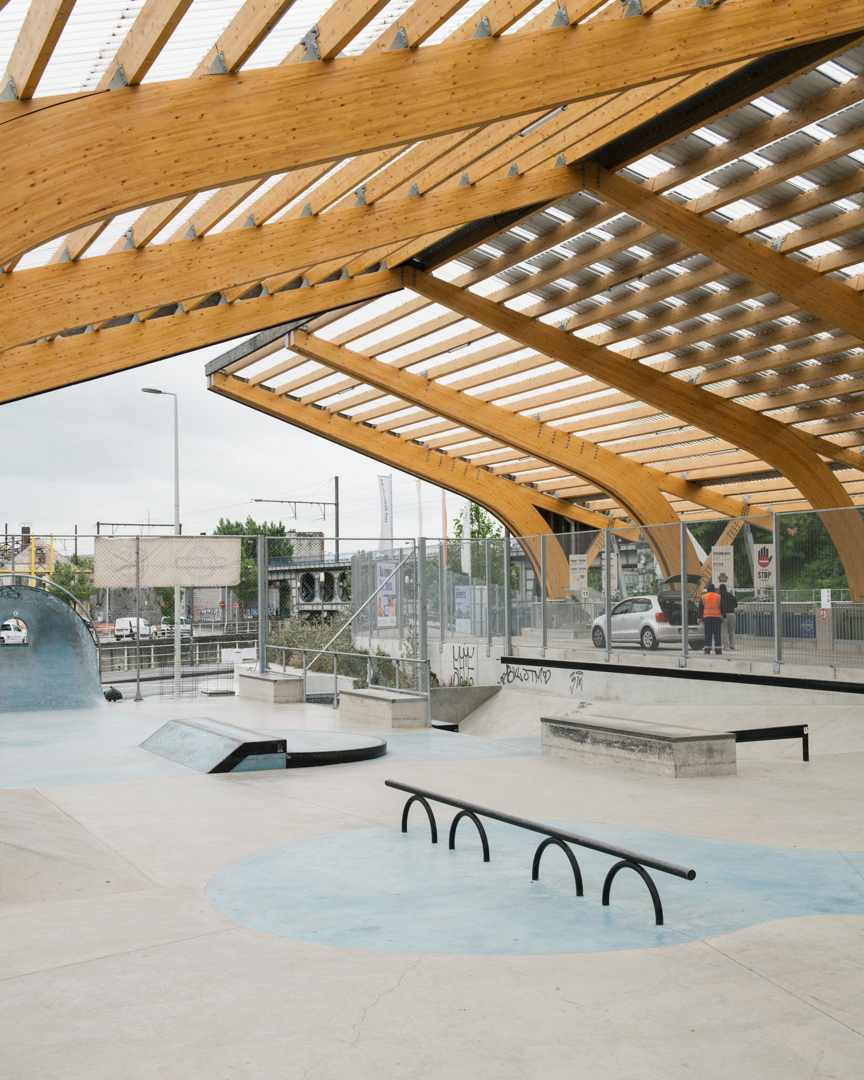 Drie grote thema’s lopen als een rode draad door het geselecteerde project: water, herbestemming en hergebruik, en de openbare ruimte. Het winnende team heeft zijn skateparkconcept ontwikkeld aan de hand van deze drie markers. Er is gekozen om de groene ruimte en het skatepark in elkaar te laten overvloeien. Zo wordt de groene ruimte niet op afstand geplaatst en worden gebruikers niet van elkaar gescheiden. Het winnende team kiest voor een samenhangend geheel in plaats van twee aparte zones, waarmee het de ontmoeting van alle doelgroepen bevordert en iedereen de kans biedt om zich de ruimte toe te eigenen. Water is overal op de site aanwezig. Omdat het perceel hellend is, wordt de waterloop van het hoogste punt naar het kanaal uitgewerkt. Het zo gecreëerde waterpad roept de loop van regenwater op.