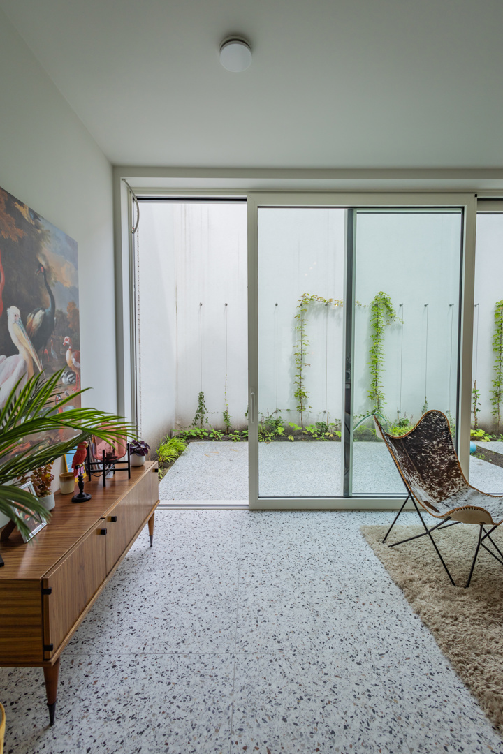 REGENCY GARDENS transformeert een historisch bouwblok aan de Keizerstraat in het centrum van Antwerpen tot een ensemble van 23 appartementen en drie grondgebonden woningen. Het project vertrekt vanuit de herwaardering van het beschermde herenhuis ‘Den Joseph naer Egypten’ en herinterpreteert het historische principe van ‘cour et jardin’ als hedendaagse woonstrategie. De site omvat een voormalig hotelcomplex van drie naast elkaar gelegen panden en de Mazengang. De ontwerpaanpak is radicaal in haar eenvoud: ontpitten om kwaliteit te creëren. Niet-herbruikbare aanbouwsels worden verwijderd, het monument wordt hersteld in zijn oorspronkelijke vorm en de voormalige parking maakt plaats voor drie woningen met private tuin. Door deze ingreep ontstaat opnieuw ademruimte in het bouwblok.