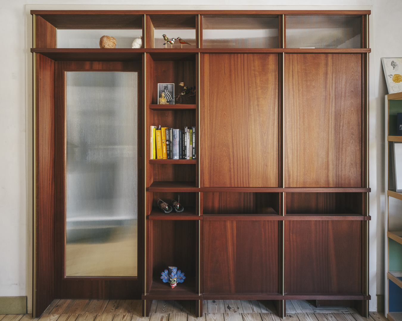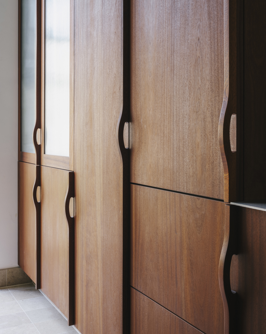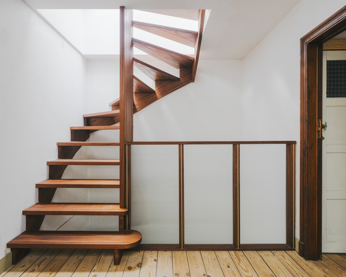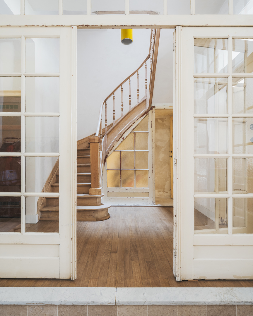 De grootste uitdaging lag in het verzoenen van ruimtelijke openheid met het behoud van een historisch dragend systeem. De bestaande Perfora-structuur, houten vloeren, moulures en binnenschrijnwerk vereisten nauwkeurige stabiliteitsingrepen zonder verlies aan materiële authenticiteit. Door vides selectief te positioneren bleef de structurele logica leesbaar en werd tegelijk een nieuwe ruimtelijke continuïteit geïntroduceerd. De achtergevel werd opnieuw ontworpen als hedendaagse interpretatie van de voorgevel, met herneming van baksteenverbanden, plinten en geveldetaillering. Oude en nieuwe elementen zijn niet vermengd, maar bewust gedifferentieerd. Deze precisie vermijdt nostalgie en maakt de transformatie expliciet leesbaar.
