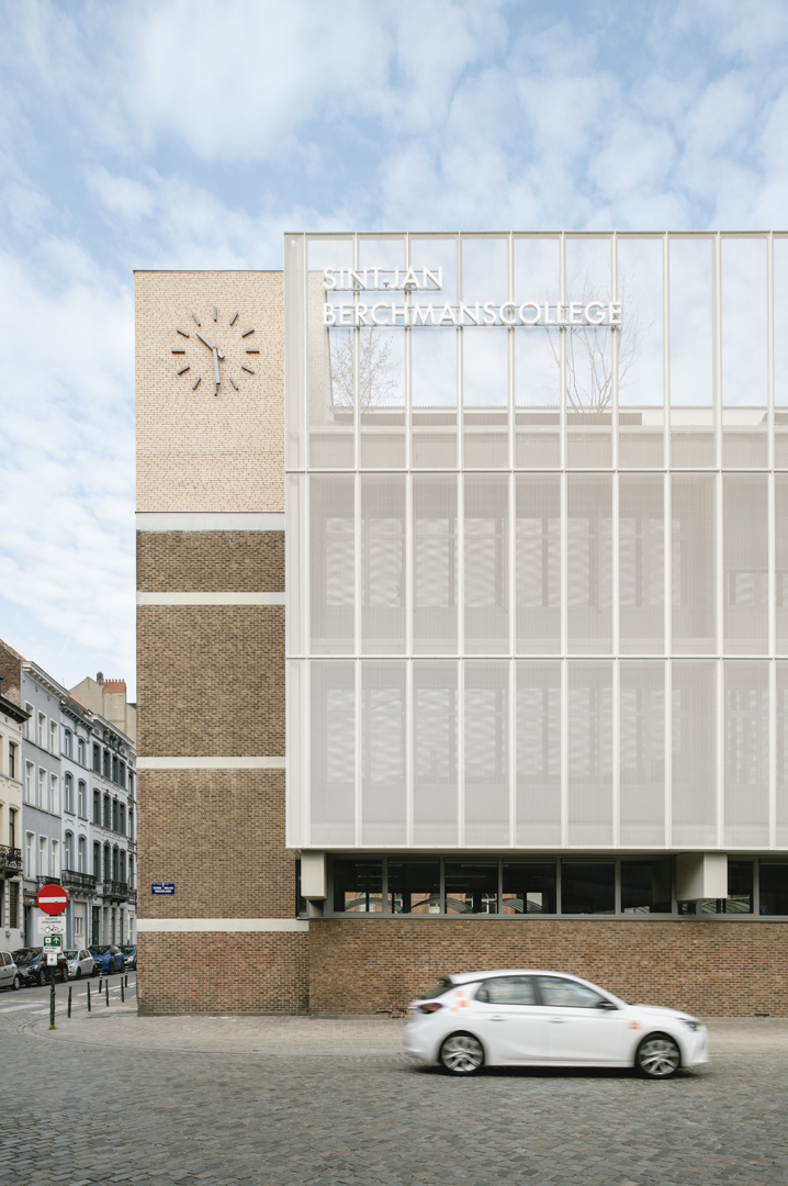 De initiële ontwerpopdracht was een capaciteitsuitbreiding van het Sint-Jan Berchmanscollege te realiseren met hierbij de creatie van een refter en grootkeuken. Het bestaande erfgoedgebouw, opgenomen in de inventaris van het Brussels Gewest, werd volledig gerenoveerd en voorzien van hedendaagse technieken en zonnewering aan de voorgevel. In de sterk verharde stedelijke context werd een groene pedagogische daktuin geïntroduceerd als rustplek en versterking voor de lokale biodiversiteit. Het project integreert verder nieuwe lesmethodieken via koppelbare klaslokalen en diverse soorten werkplekken. Een lift en passerelle maken de site volledig toegankelijk en de ondergrondse sportzaal werd toegankelijk gemaakt voor extern gebruik door lokale vzw’s en andere scholen.