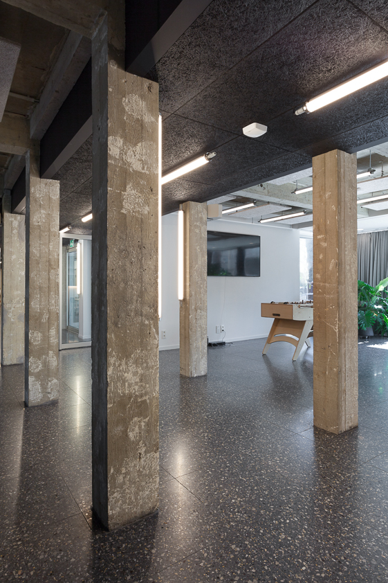 Dit project tilt het welzijn van de gebruikers naar een hoger niveau door modernistisch erfgoed te combineren met hedendaags comfort. Doordat de structuur van Brunfaut zichtbaar is gelaten, bieden de verdiepingen een totale ruimtelijke vrijheid, badend in natuurlijk licht. De integratie van huiselijke elementen zorgt voor een rustgevende en warme sfeer, ver verwijderd van de kilheid van klassieke kantoren. Flexibiliteit staat centraal: van akoestische telefooncellen tot vloeiende coworkingruimtes, aan elke behoefte wordt tegemoetgekomen. De begane grond, met zijn gezellige bar en begroeide patio, bevordert sociale contacten en ontspanning. Het is een gezonde, rustige en modulaire omgeving die het dagelijkse welzijn op het werk bevordert.